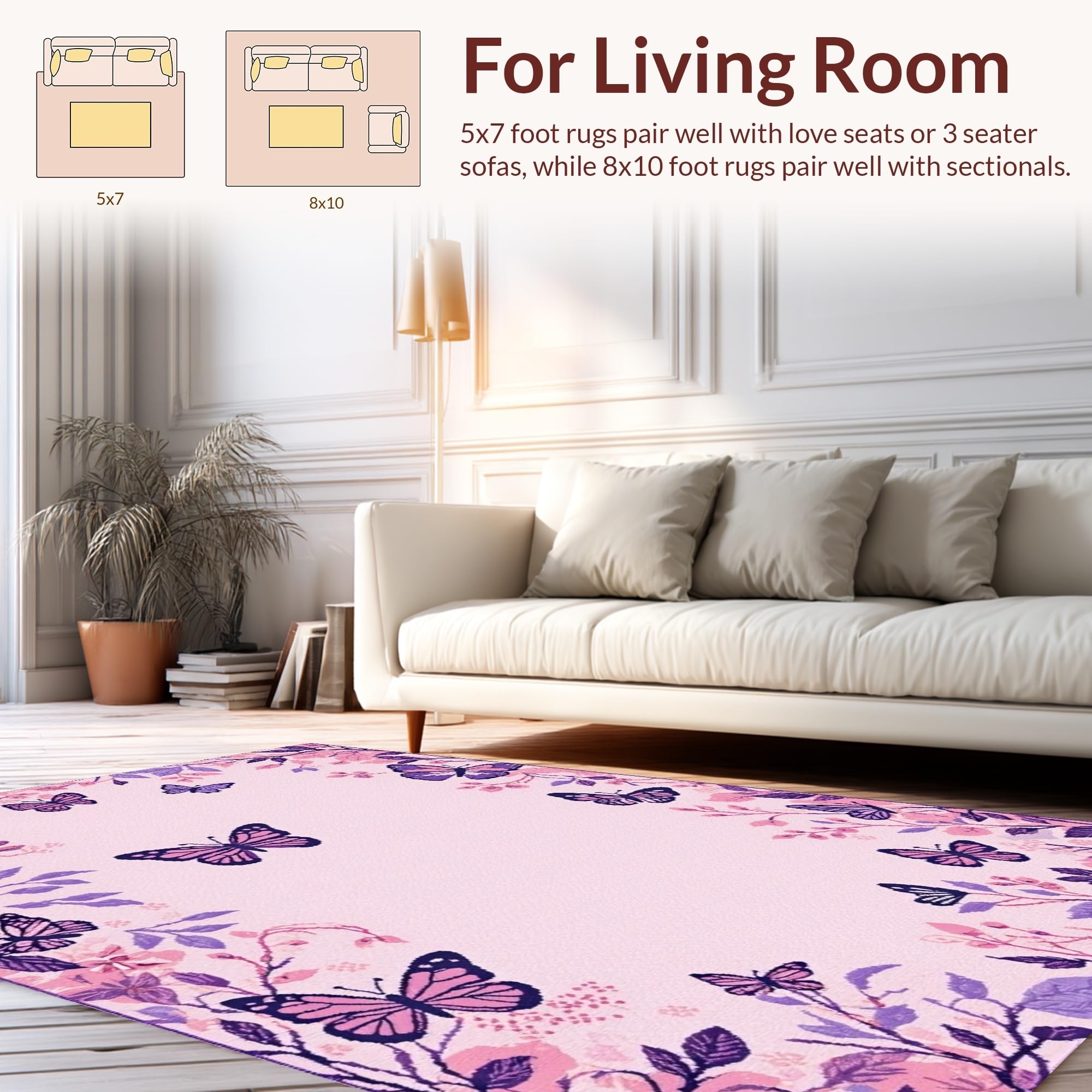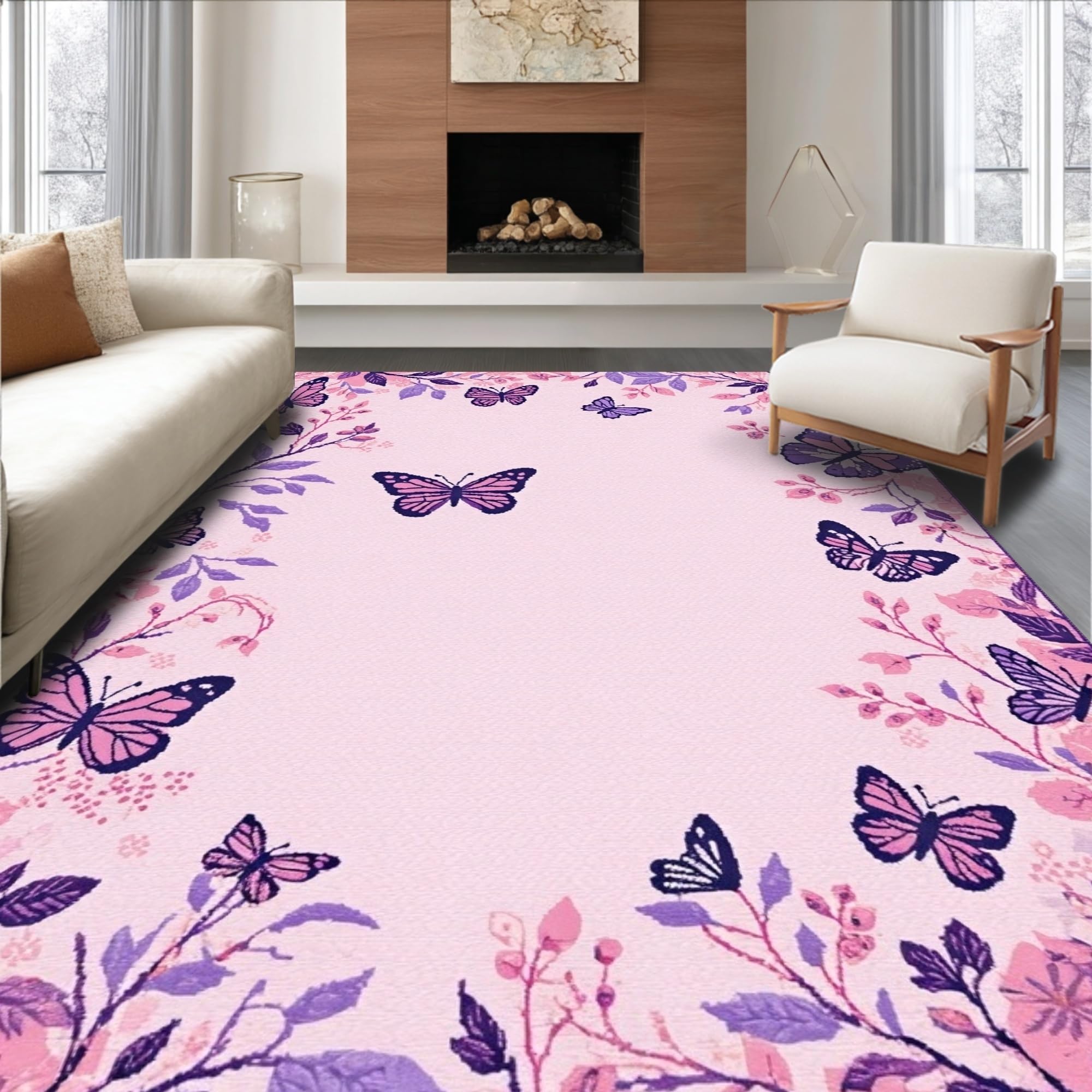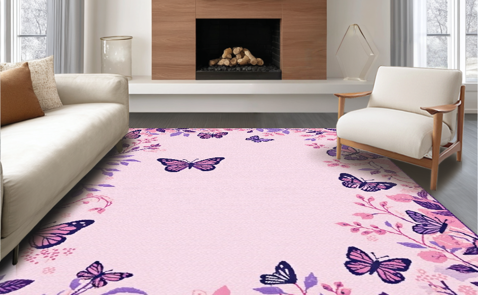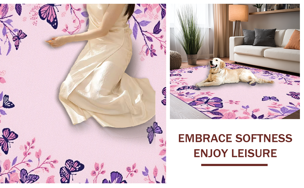 Ultra Soft Area Rug, Non Slip, Stain Resistant, Washable Area Rugs for Living Room, Bedroom, Vibrant Floral Nature Inspiration(Pink) Overview: