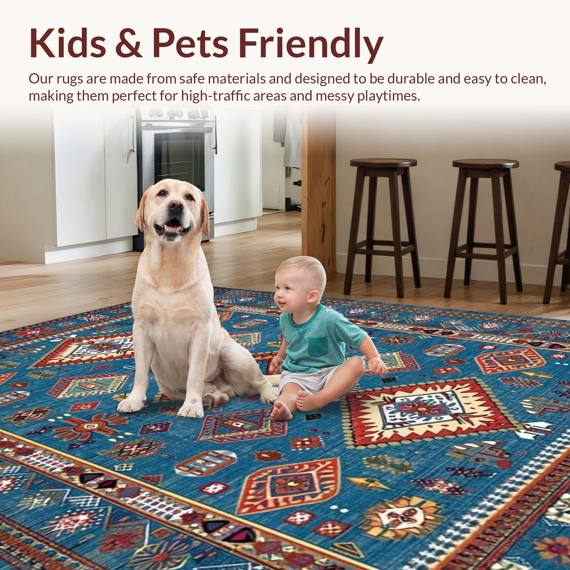 Ultra Soft Area Rug, Non Slip, Stain Resistant, Washable Area Rugs for Living Room, Bedroom, Vibrant Floral Patterned Delight(Blue) Overview: