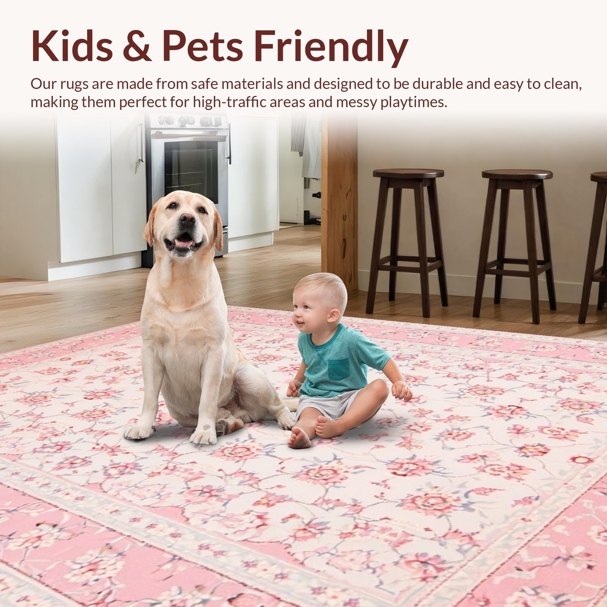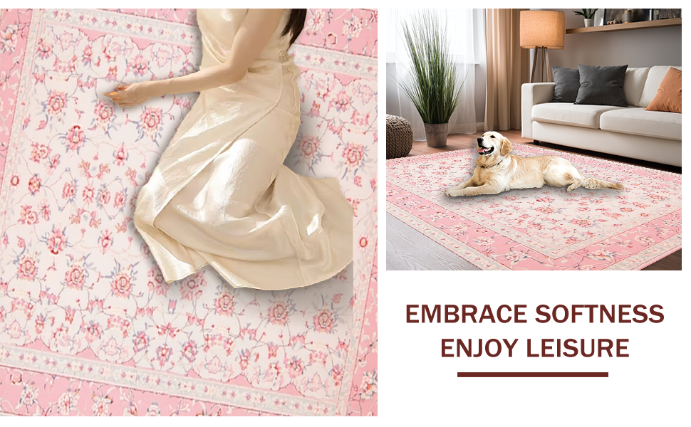 Ultra Soft Area Rug, Non Slip, Stain Resistant, Washable Area Rugs for Living Room, Bedroom, Vibrant Fluffy Abstract Art(Pink) Overview: