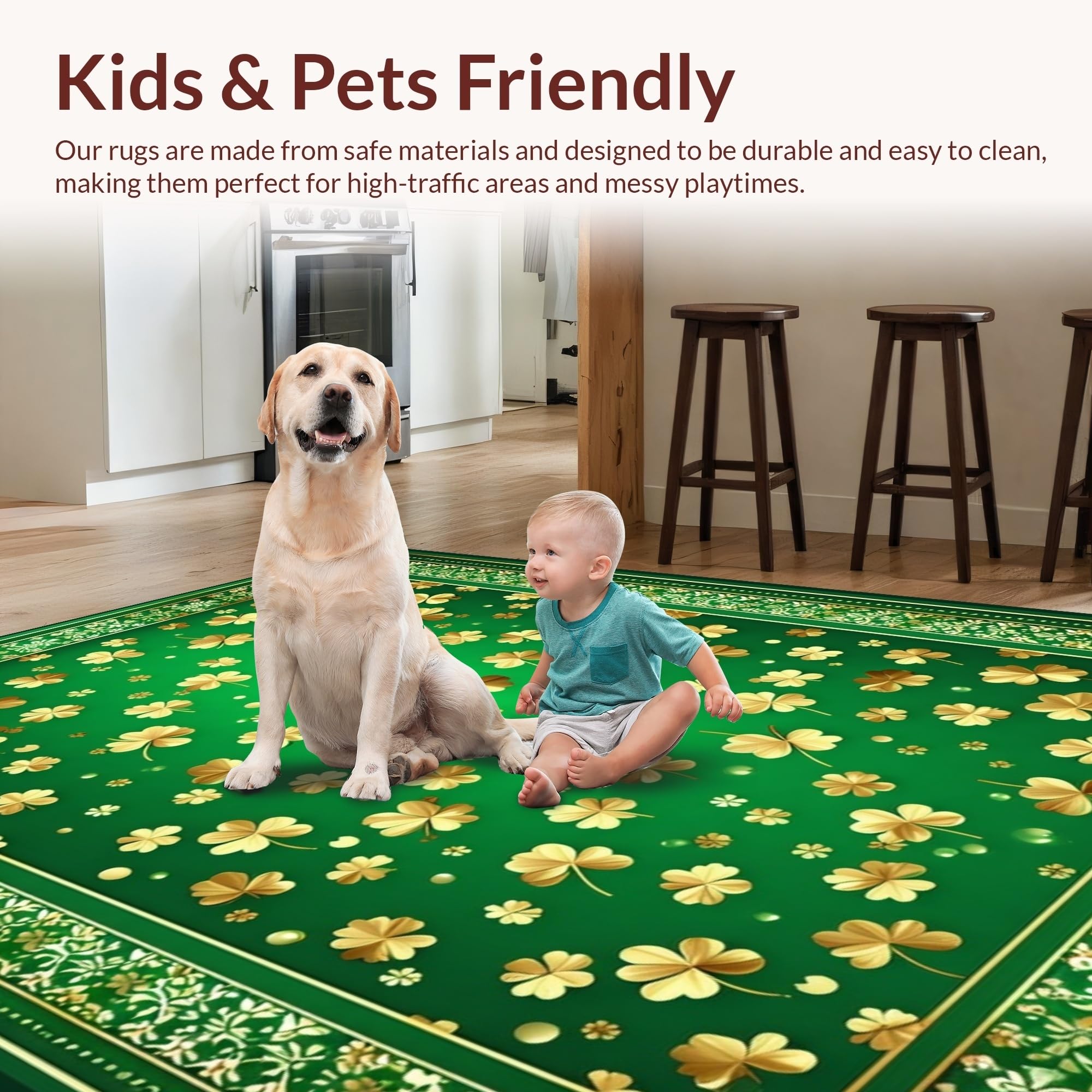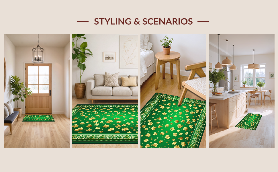 Ultra Soft Area Rug, Non Slip, Stain Resistant, Washable Area Rugs for Living Room, Bedroom, Vibrant Folk Art Kitchen Decor(Green) Overview: