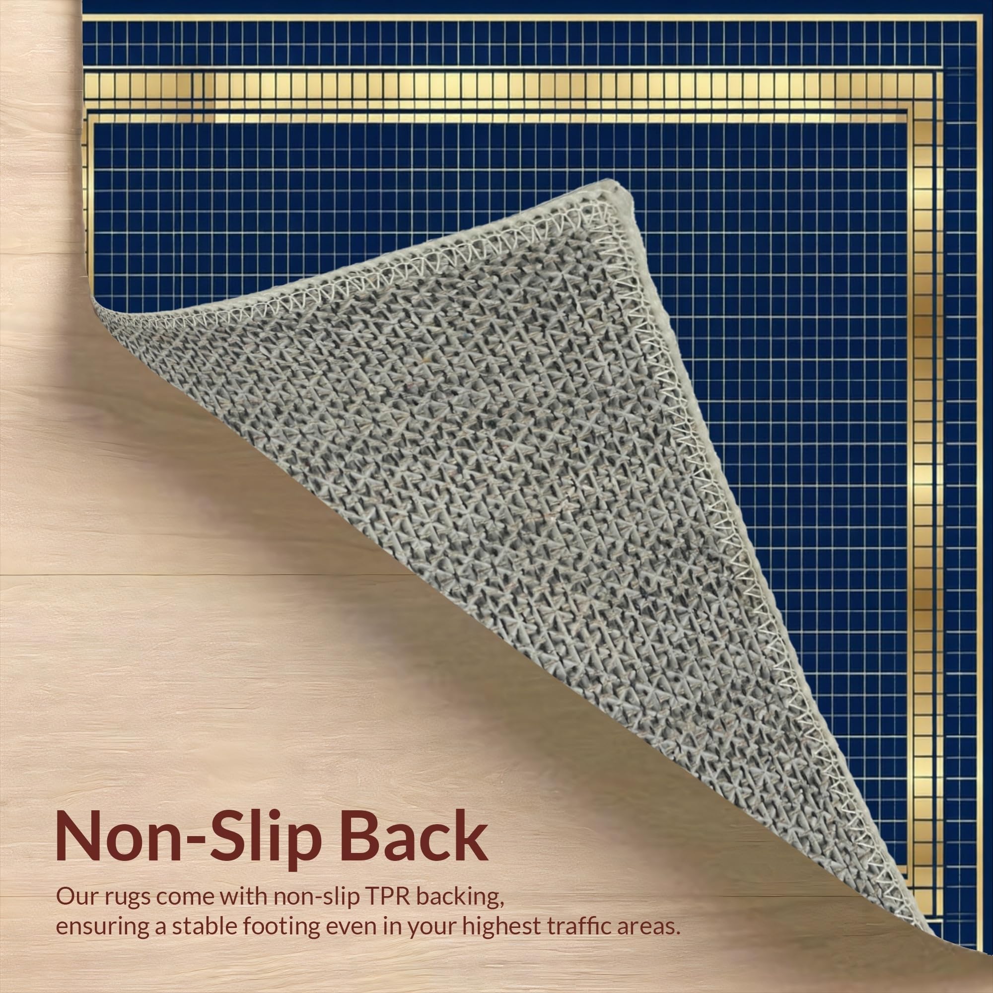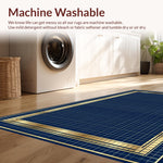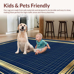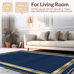 Ultra Soft Area Rug, Non Slip, Stain Resistant, Washable Area Rugs for Living Room, Bedroom, Vibrant Geometric Arrangement with Luxe Borders(Blue) Overview: