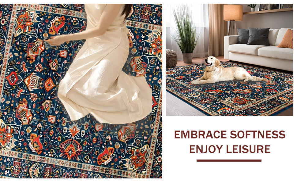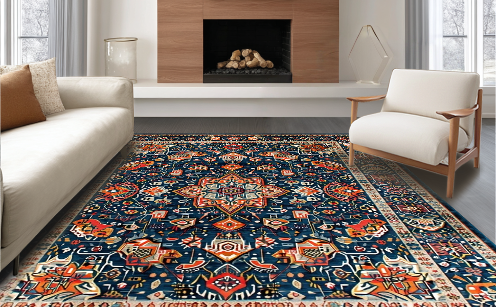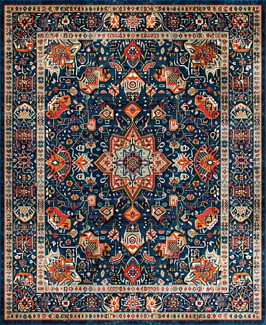 Ultra Soft Area Rug, Non Slip, Stain Resistant, Washable Area Rugs for Living Room, Bedroom, Vibrant Geometric Pattern Fusion(Blue) Overview: