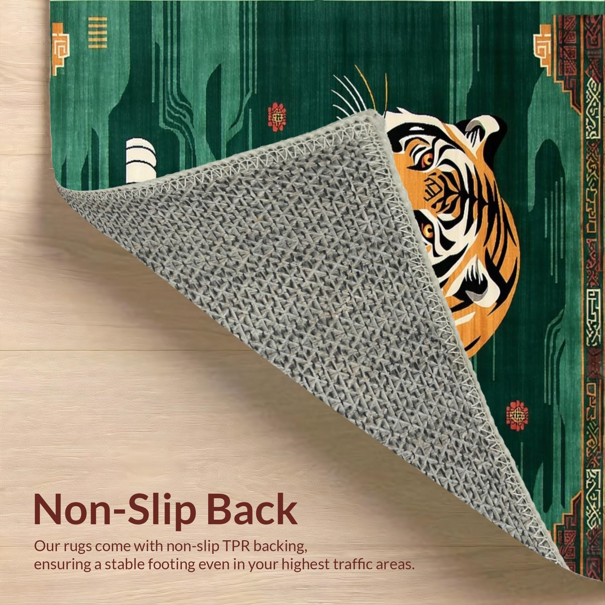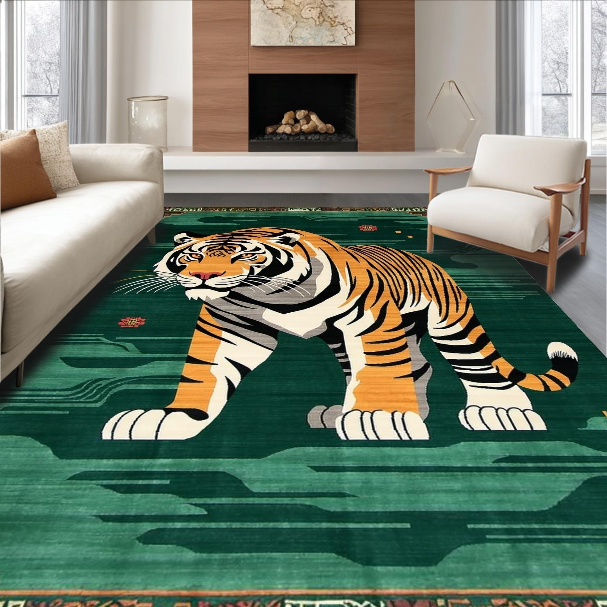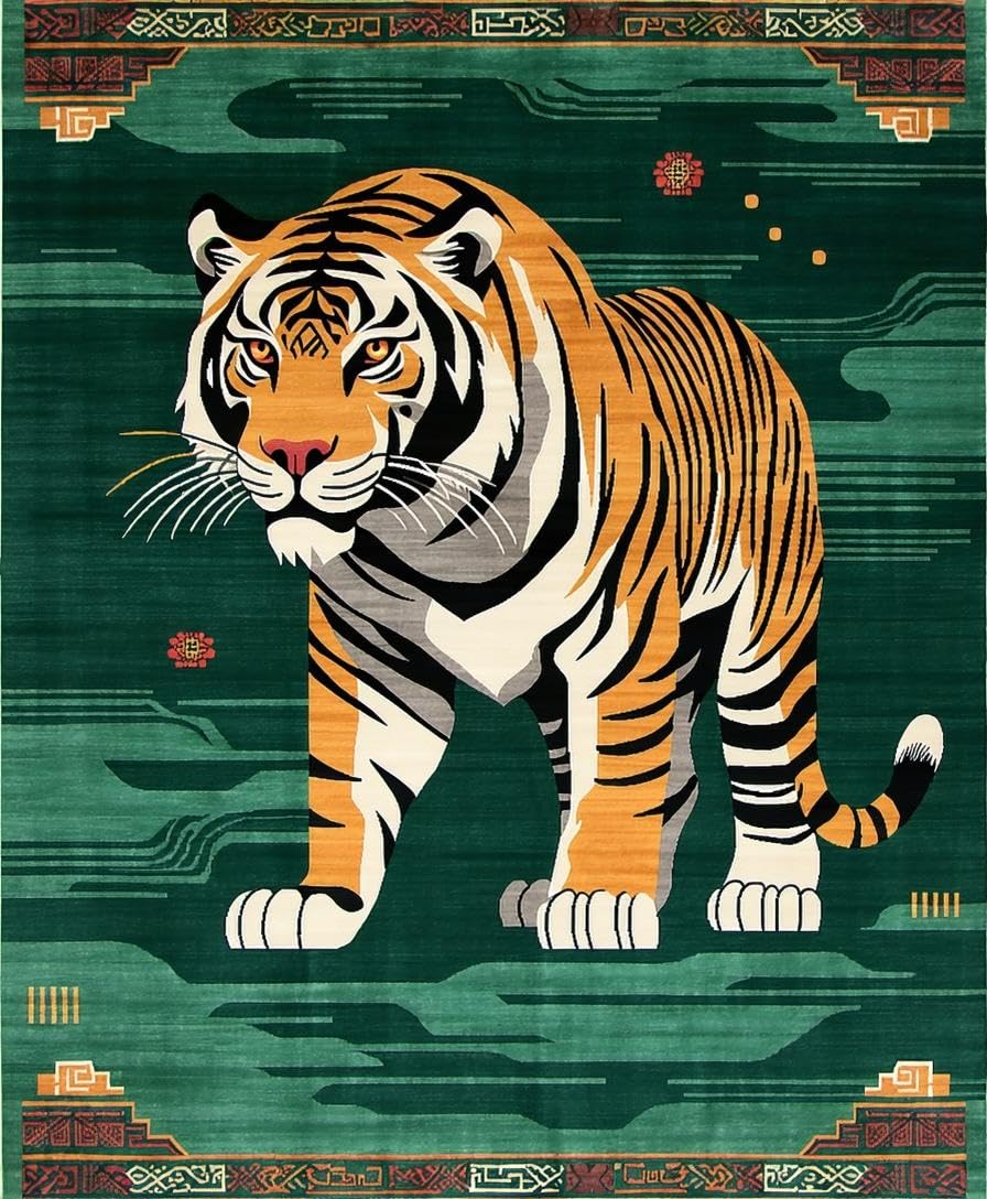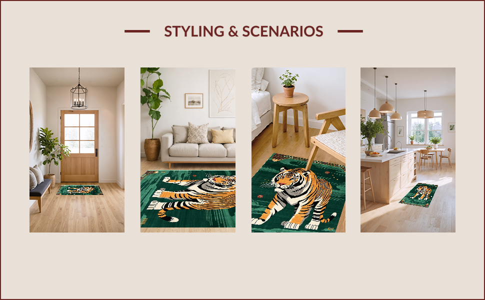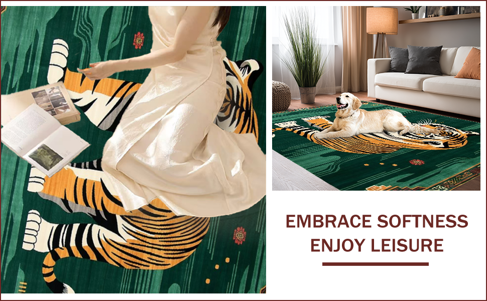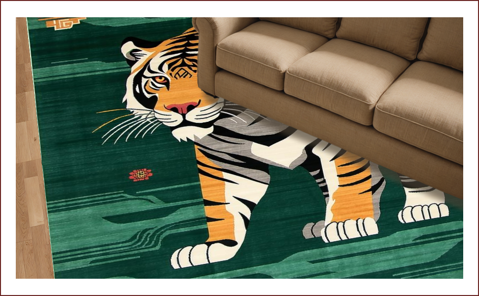Ultra Soft Area Rug, Non Slip, Stain Resistant, Washable Area Rugs for Living Room, Bedroom, Vibrant Green Animal Motif(Brown) Overview: