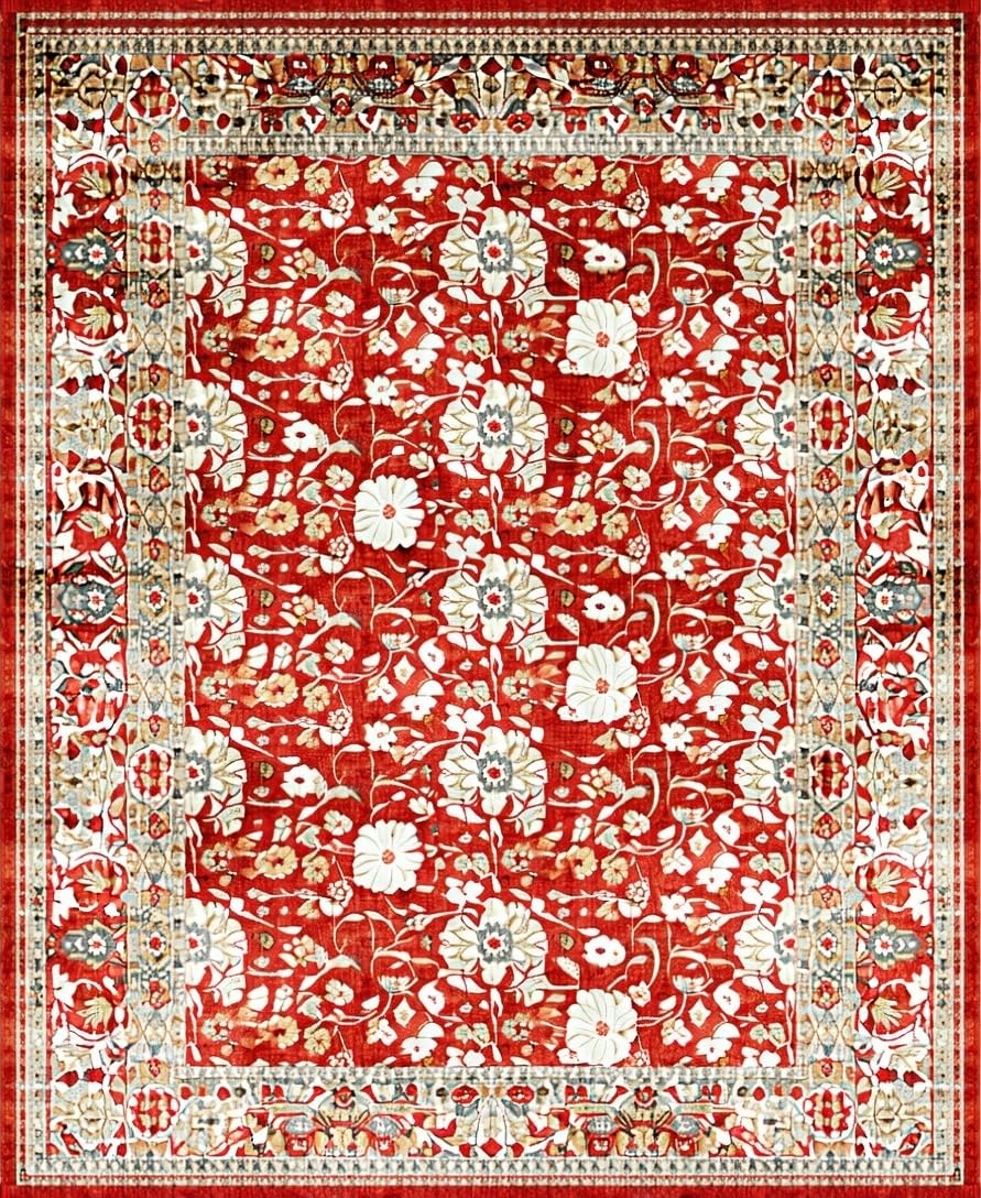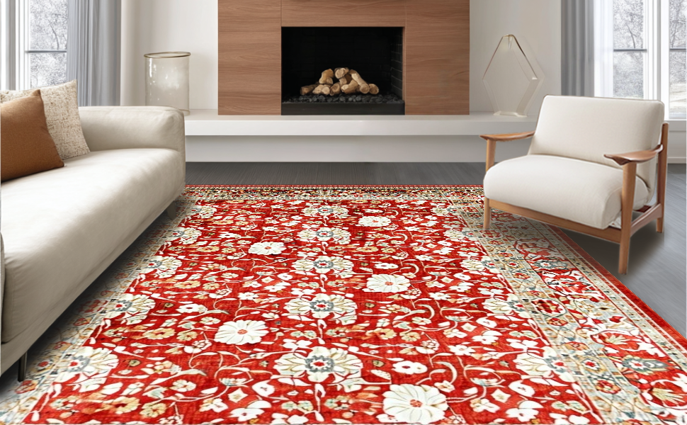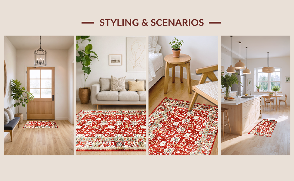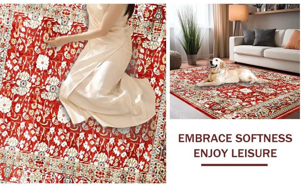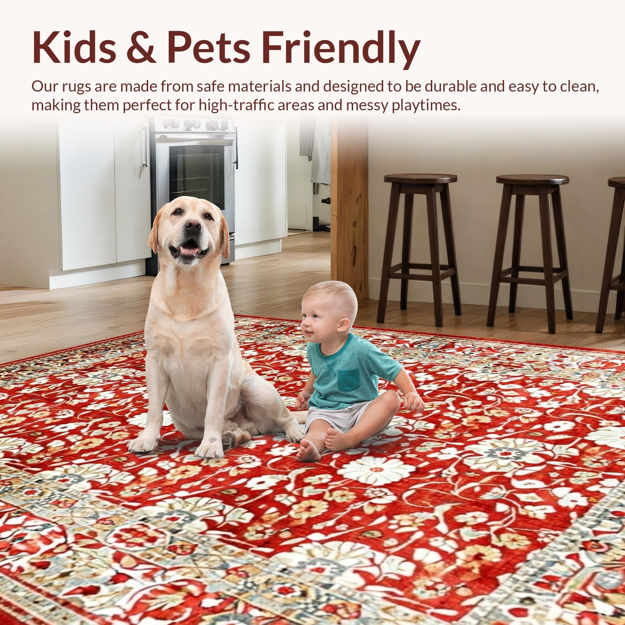 Ultra Soft Area Rug, Non Slip, Stain Resistant, Washable Area Rugs for Living Room, Bedroom, Vibrant Khaki Tiled Pattern(Red) Overview: