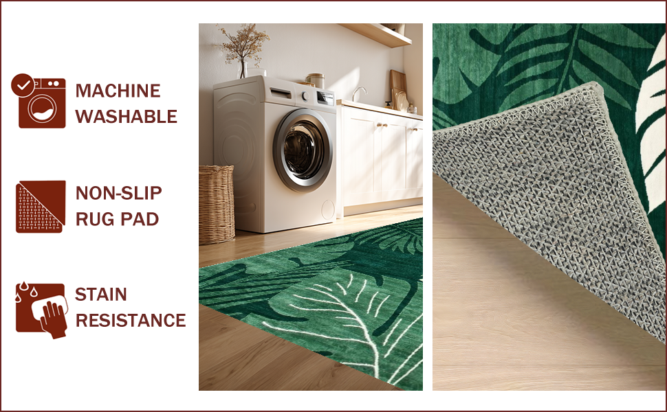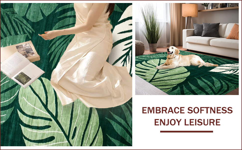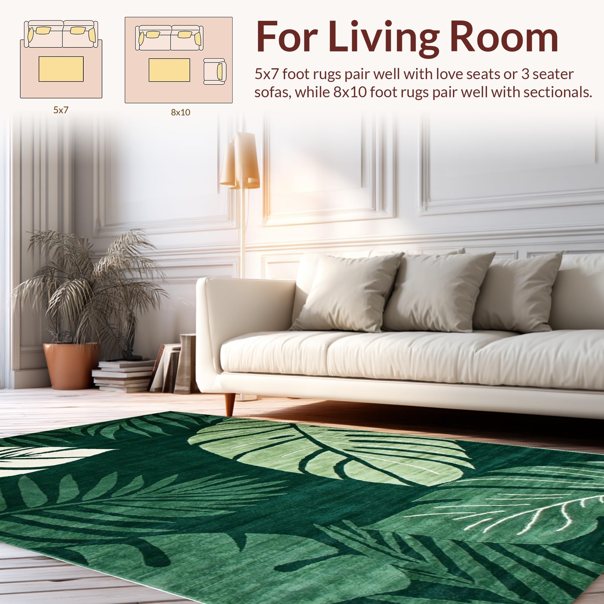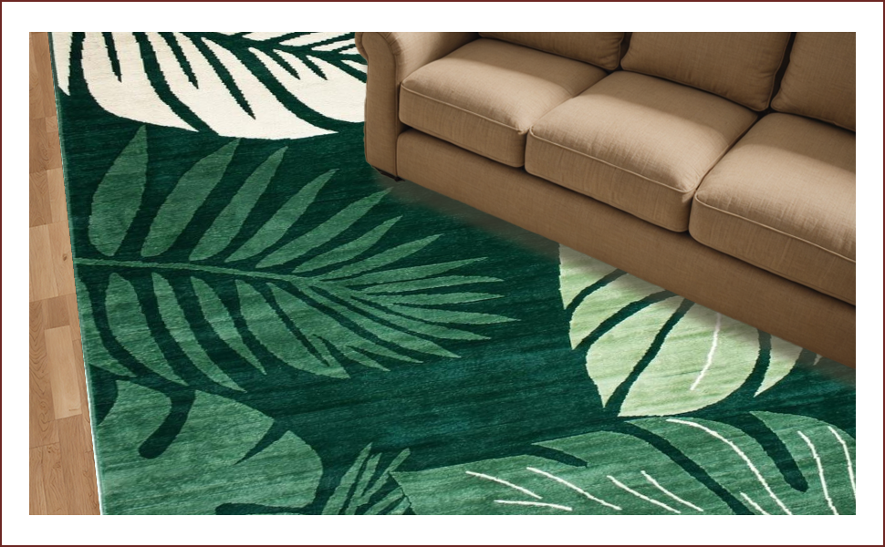 Ultra Soft Area Rug, Non Slip, Stain Resistant, Washable Area Rugs for Living Room, Bedroom, Vibrant Leafy Coastal Elegance(Green) Overview: