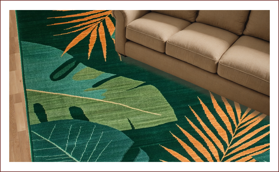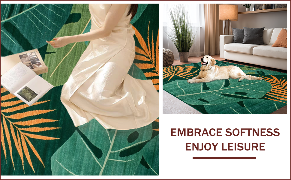Ultra Soft Area Rug, Non Slip, Stain Resistant, Washable Area Rugs for Living Room, Bedroom, Vibrant Leafy Oasis Style(Green) Overview: