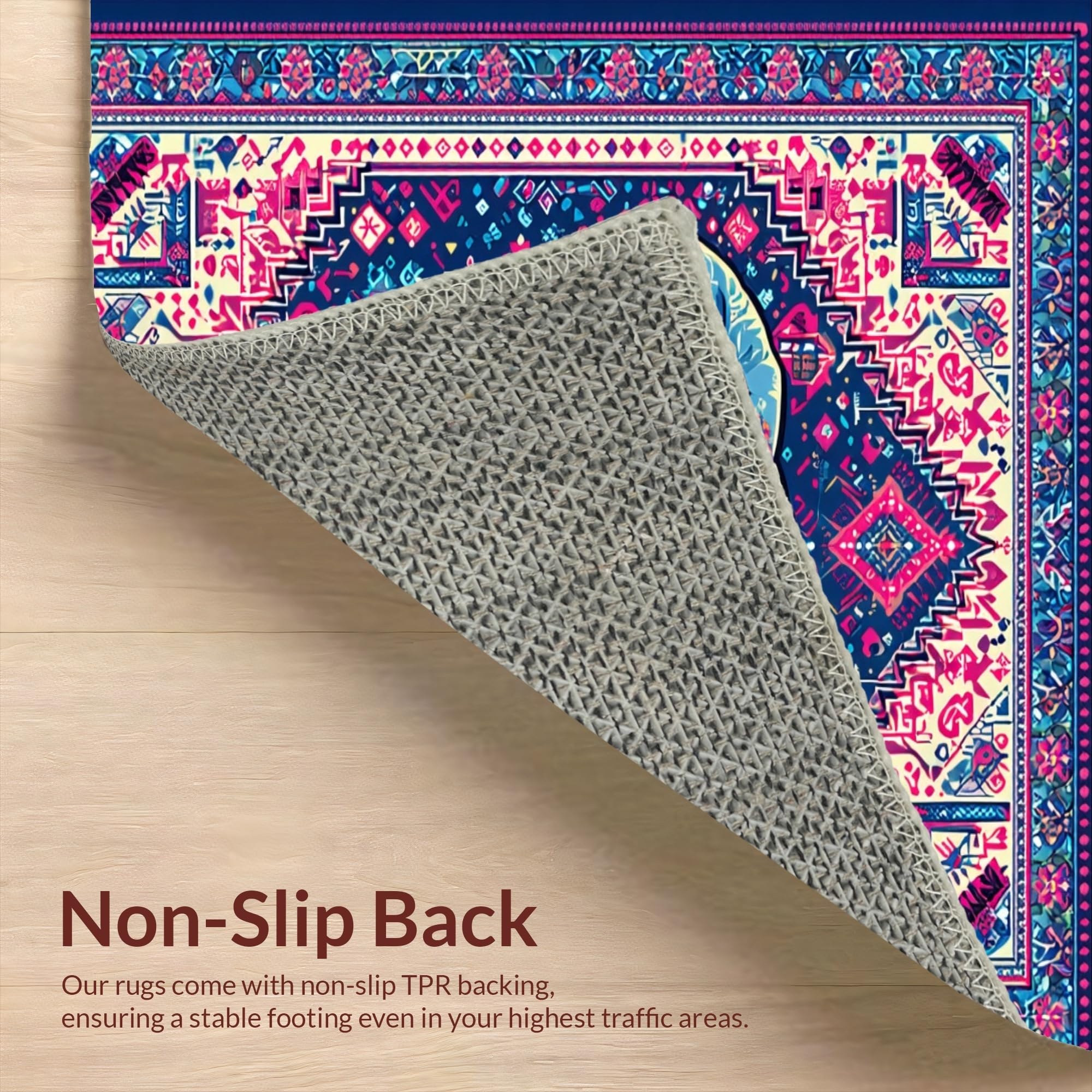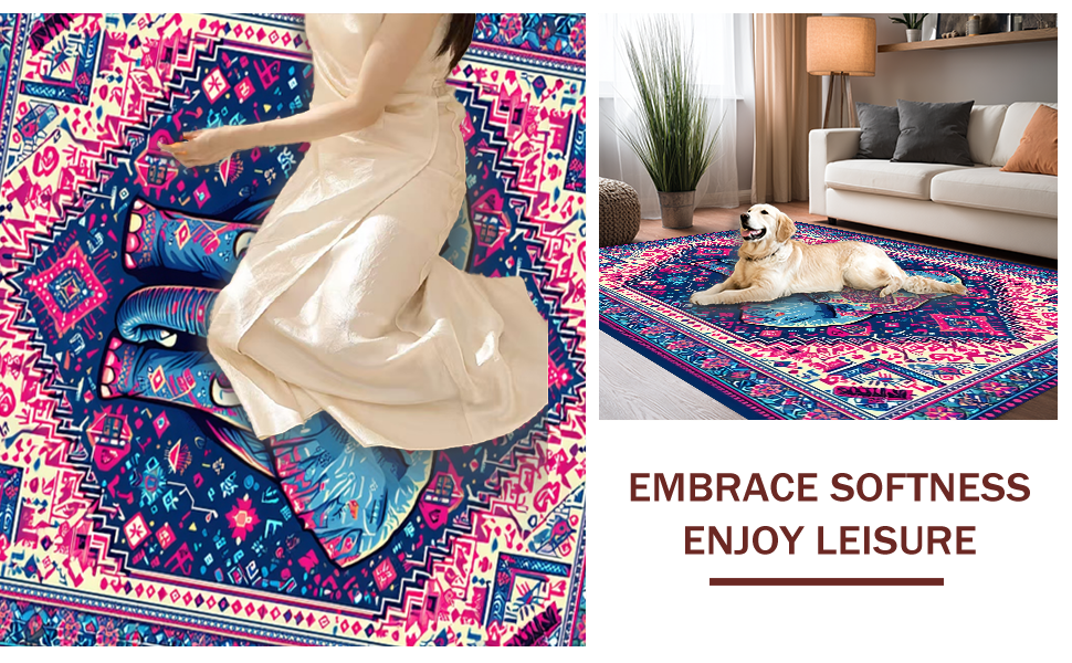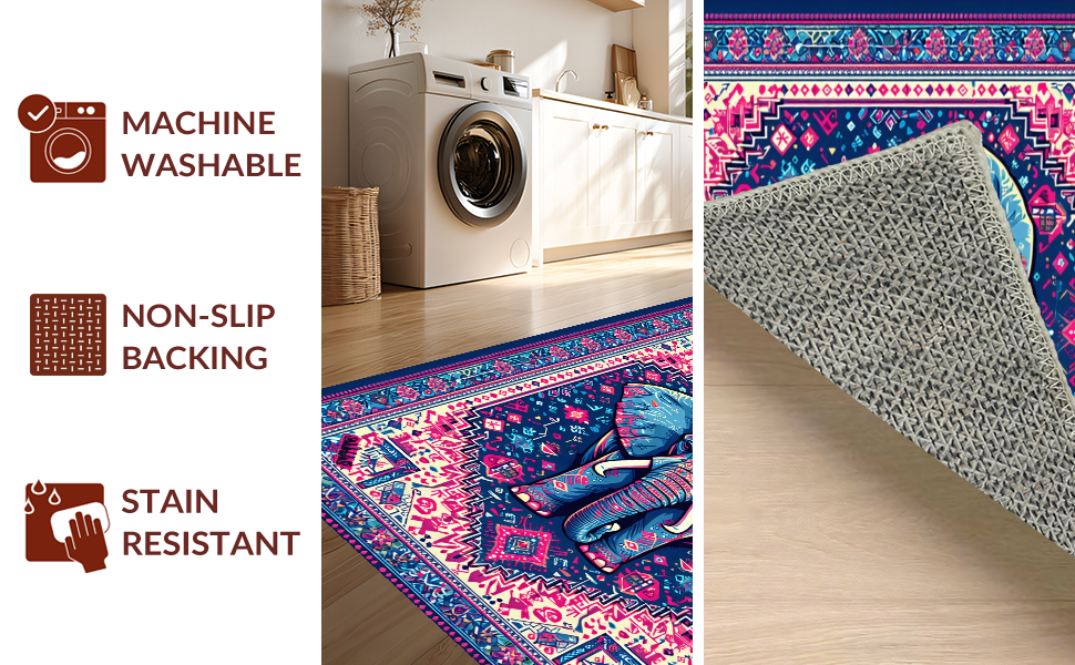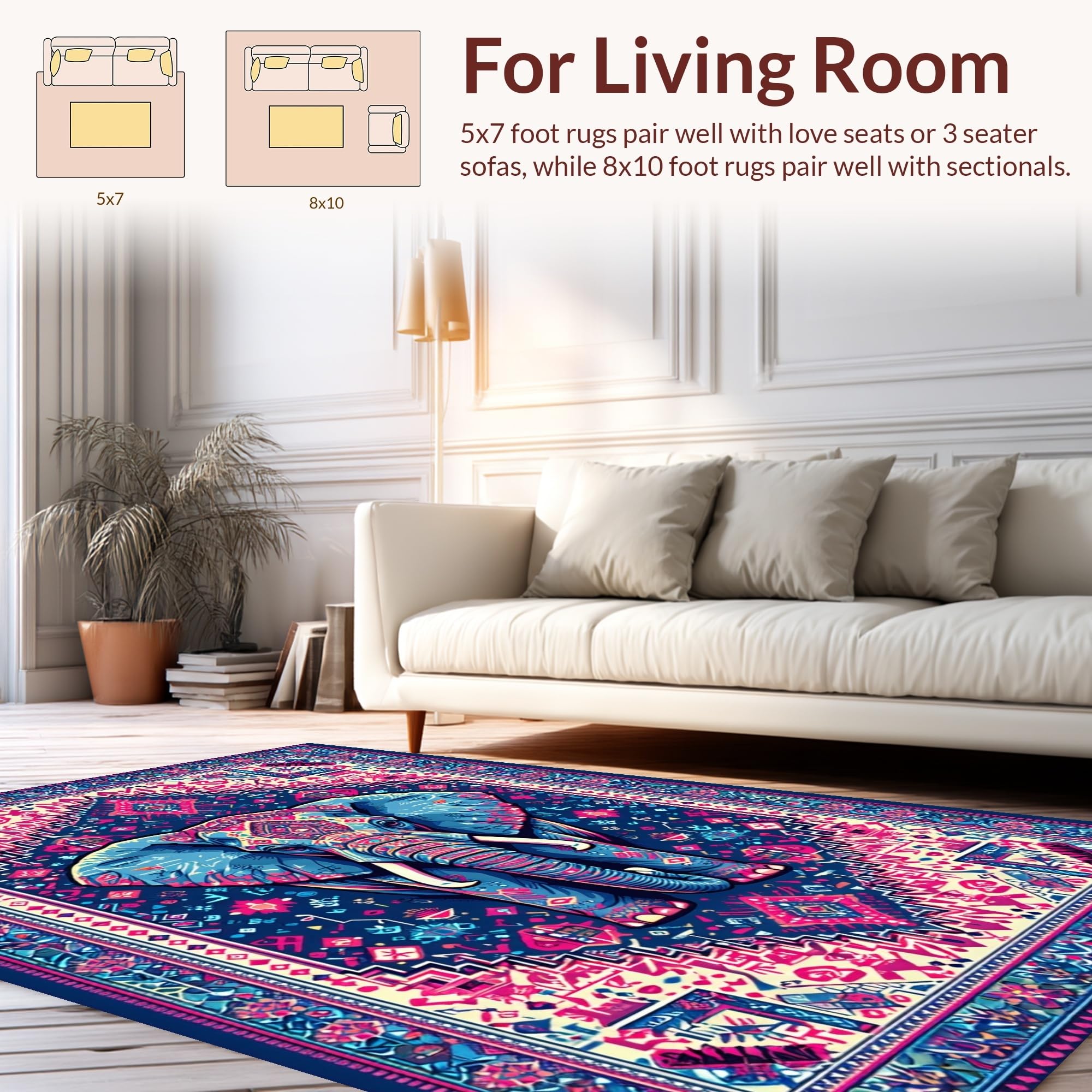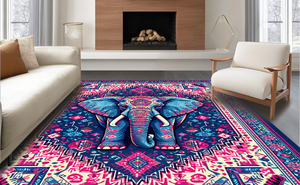 Ultra Soft Area Rug, Non Slip, Stain Resistant, Washable Area Rugs for Living Room, Bedroom, Vibrant Mandala Elephant Artistry(Blue) Overview: