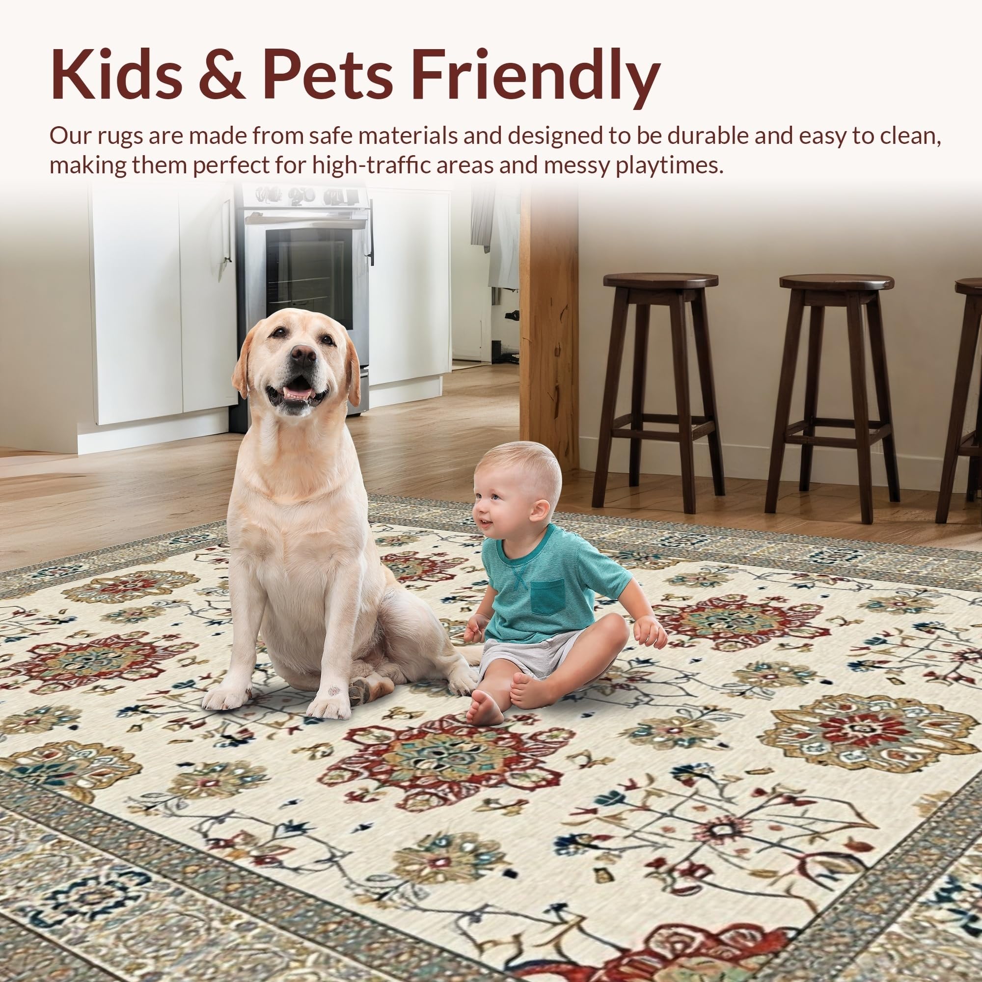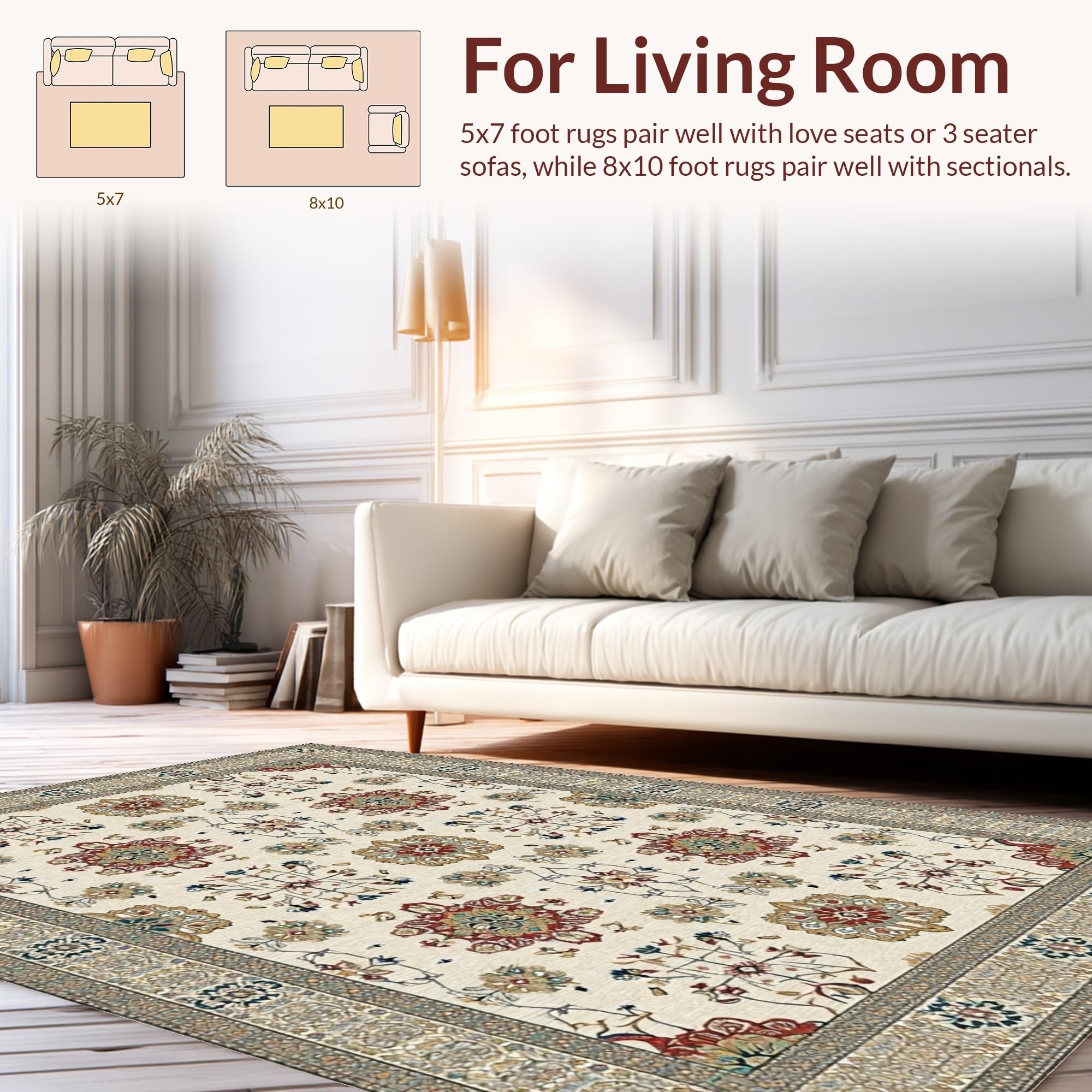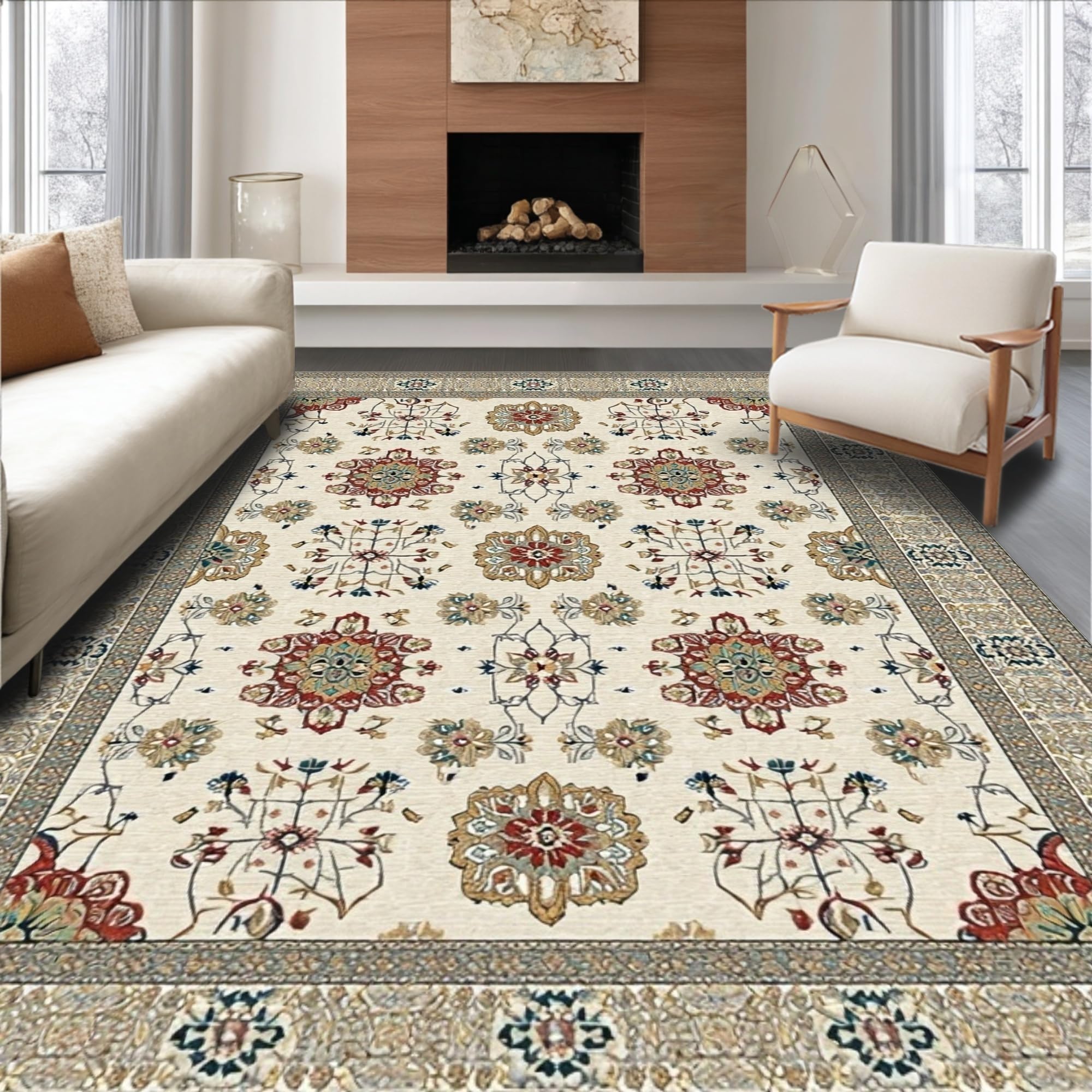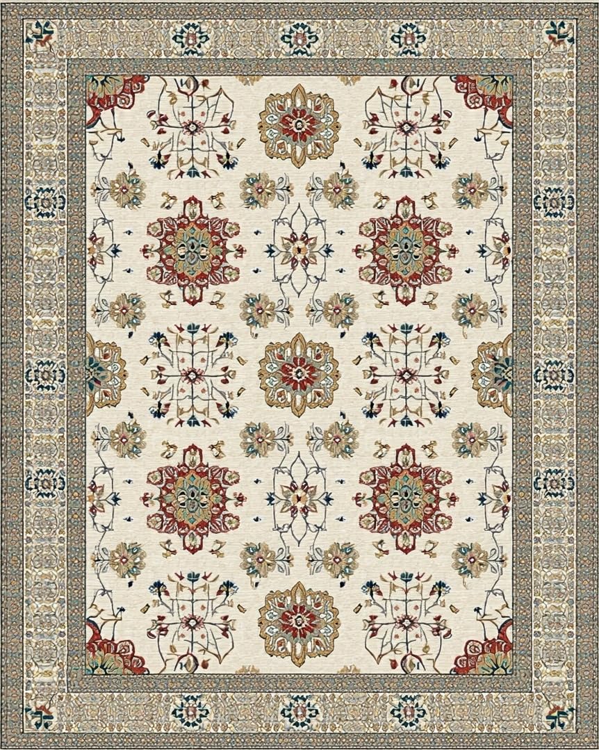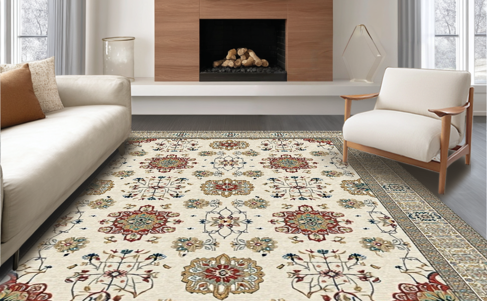Ultra Soft Area Rug, Non Slip, Stain Resistant, Washable Area Rugs for Living Room, Bedroom, Vibrant Modern Geometric Arrangement(Beige) Overview:
