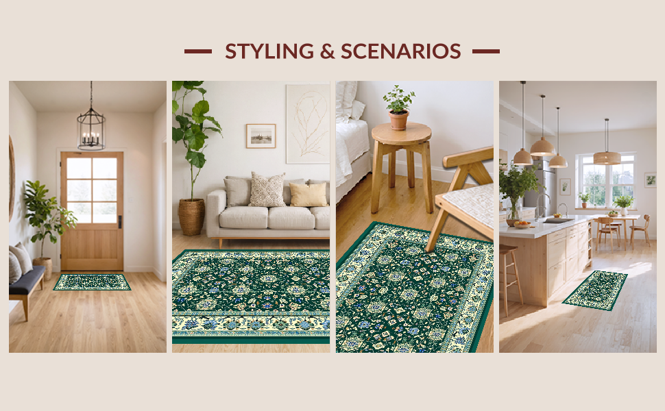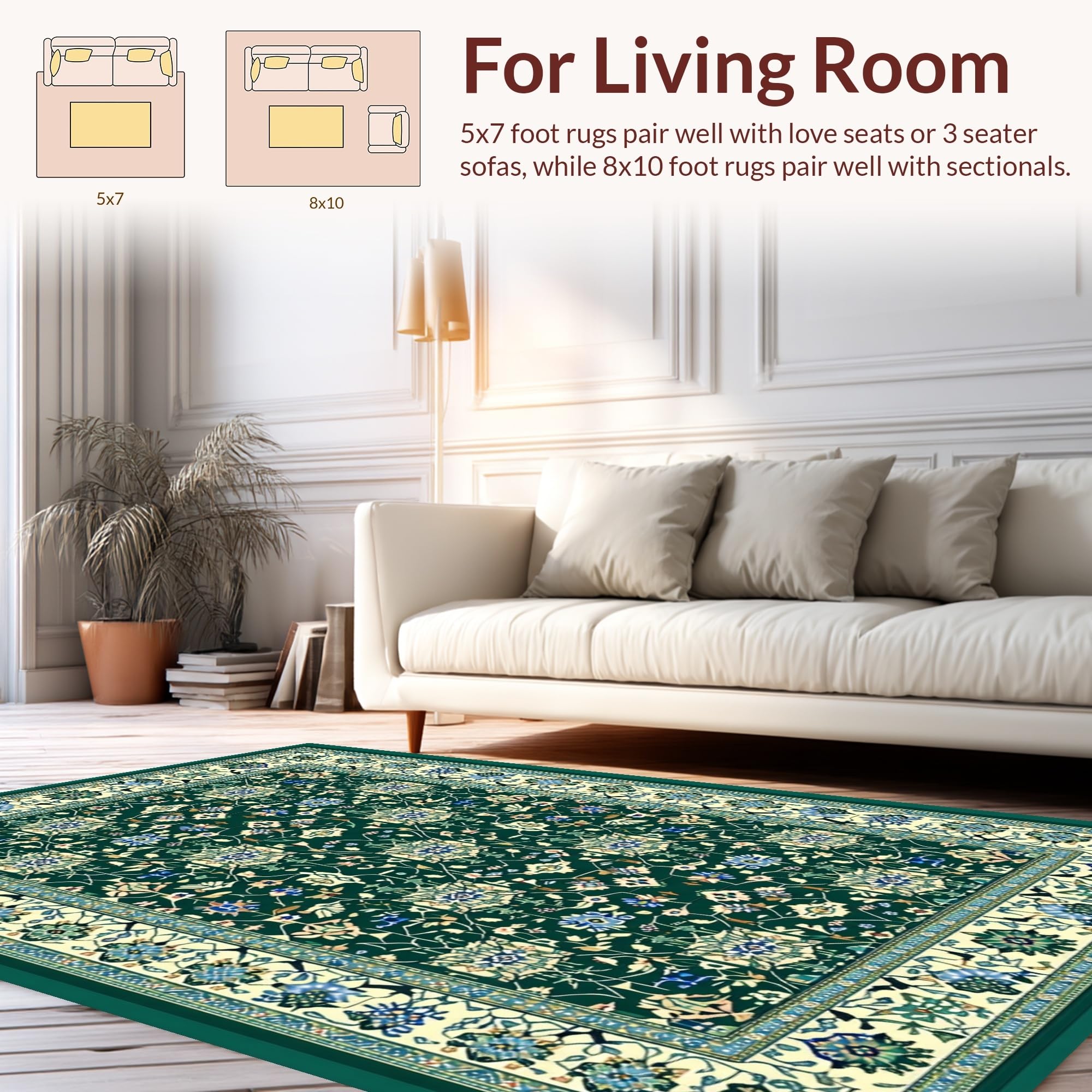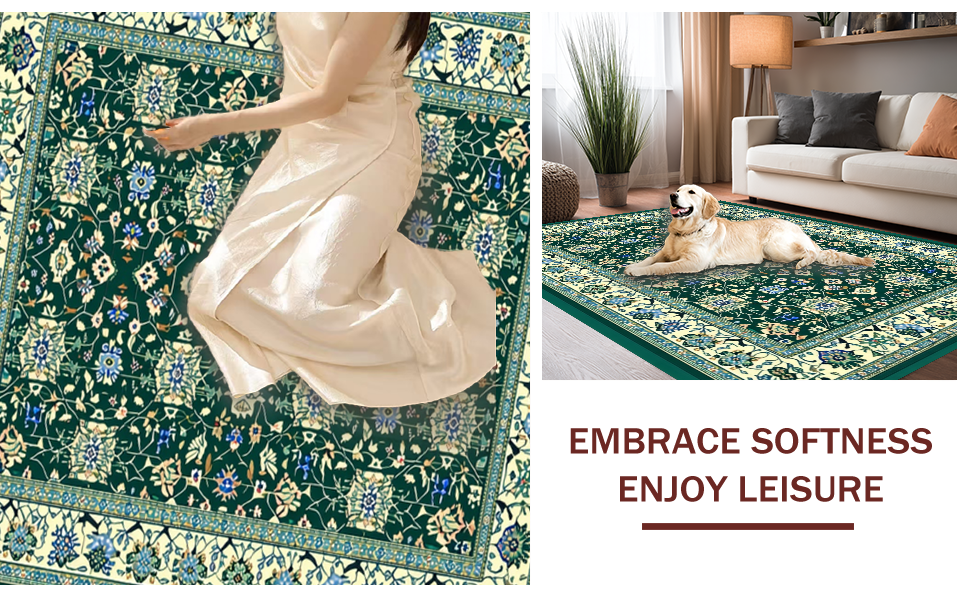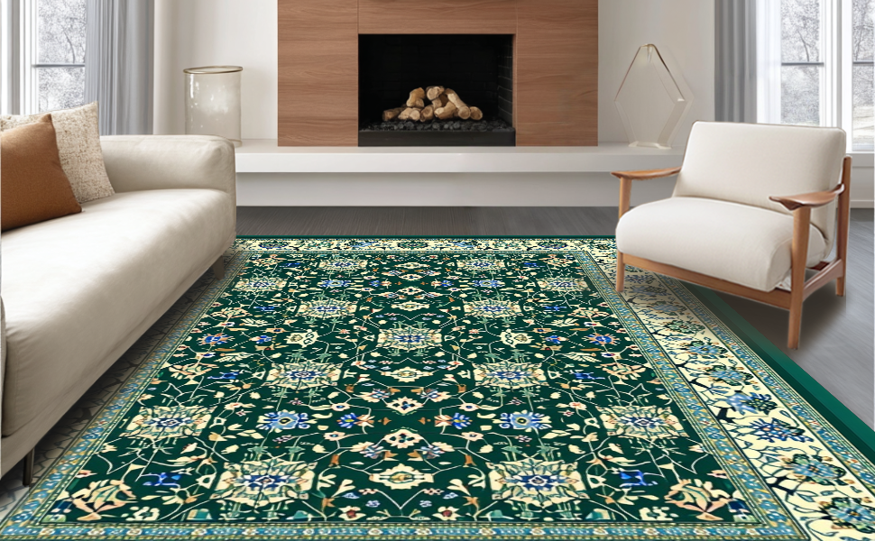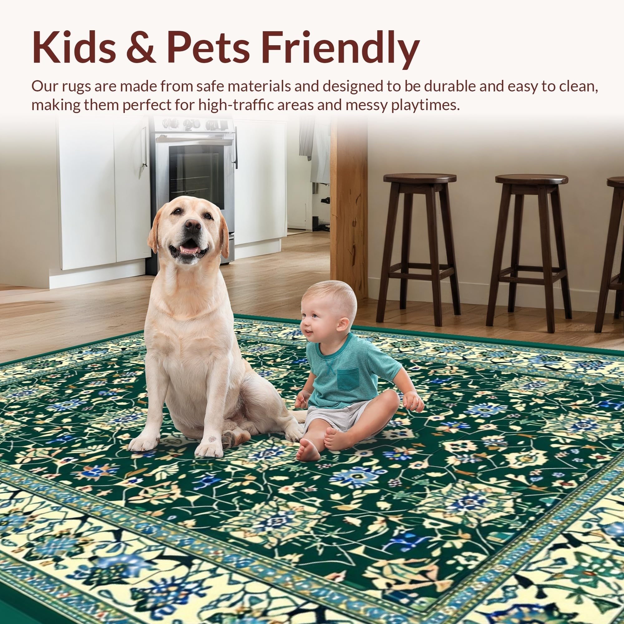 Ultra Soft Area Rug, Non Slip, Stain Resistant, Washable Area Rugs for Living Room, Bedroom, Vibrant Modern Geometric Elements(Green) Overview: