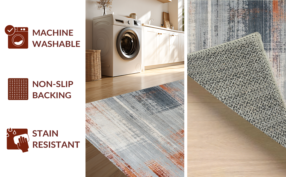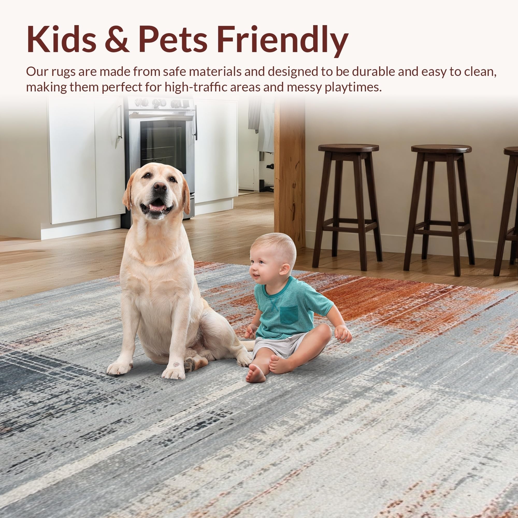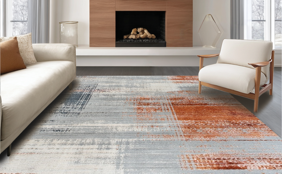 Ultra Soft Area Rug, Non Slip, Stain Resistant, Washable Area Rugs for Living Room, Bedroom, Vibrant Modern Texture Fusion(Gray) Overview: