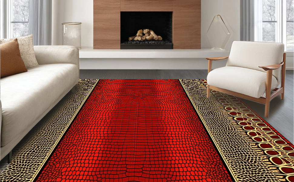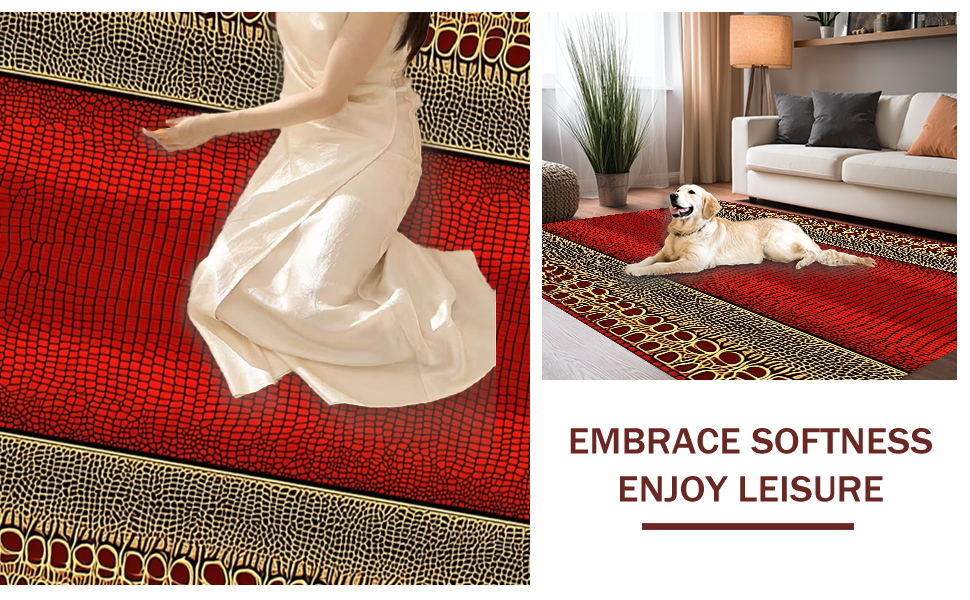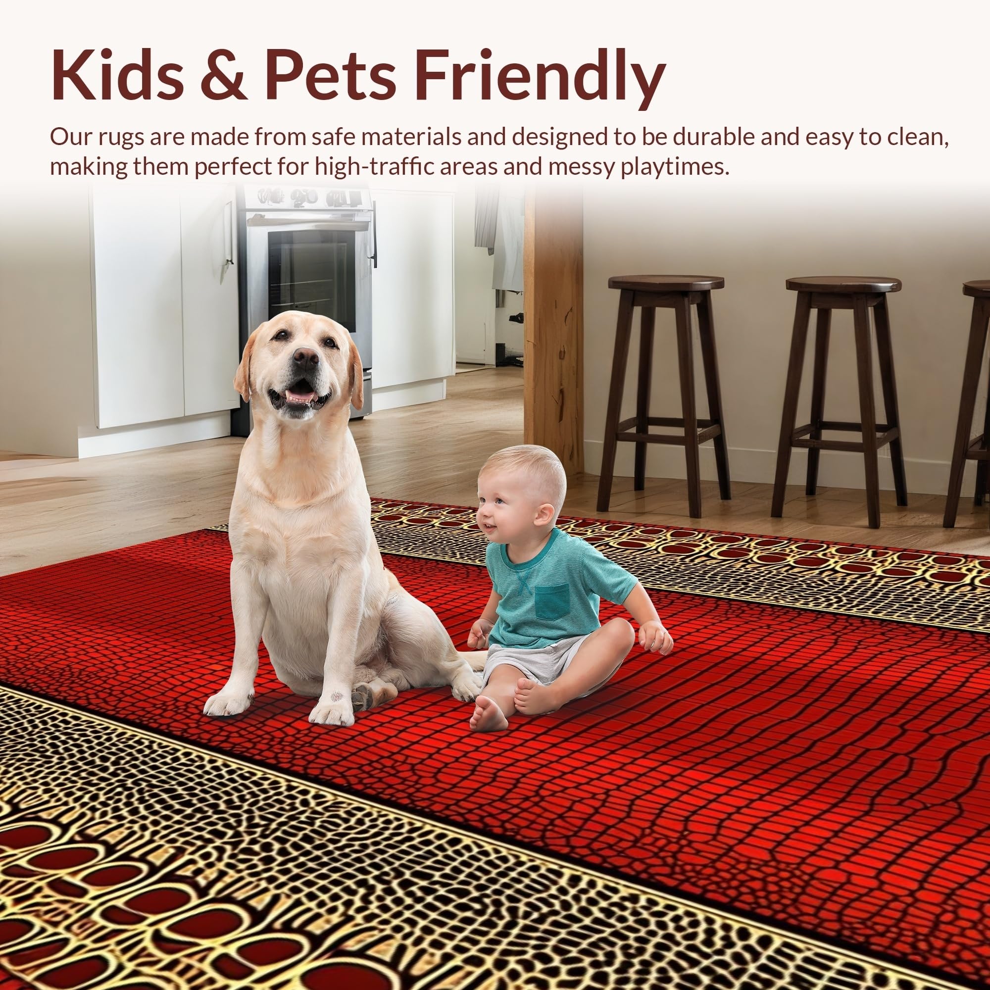 Ultra Soft Area Rug, Non Slip, Stain Resistant, Washable Area Rugs for Living Room, Bedroom, Vibrant Multi-Color Abstract Style(Red) Overview: