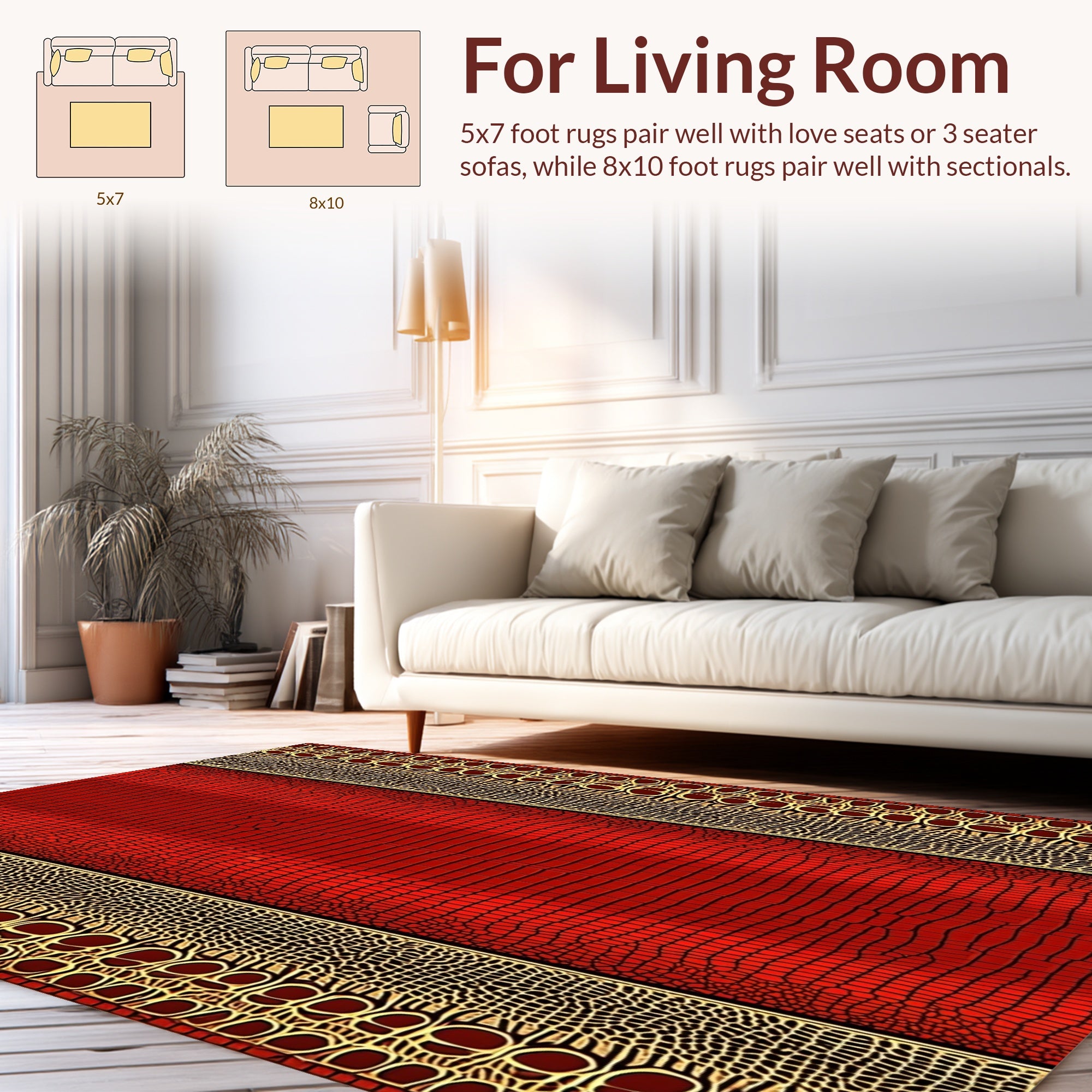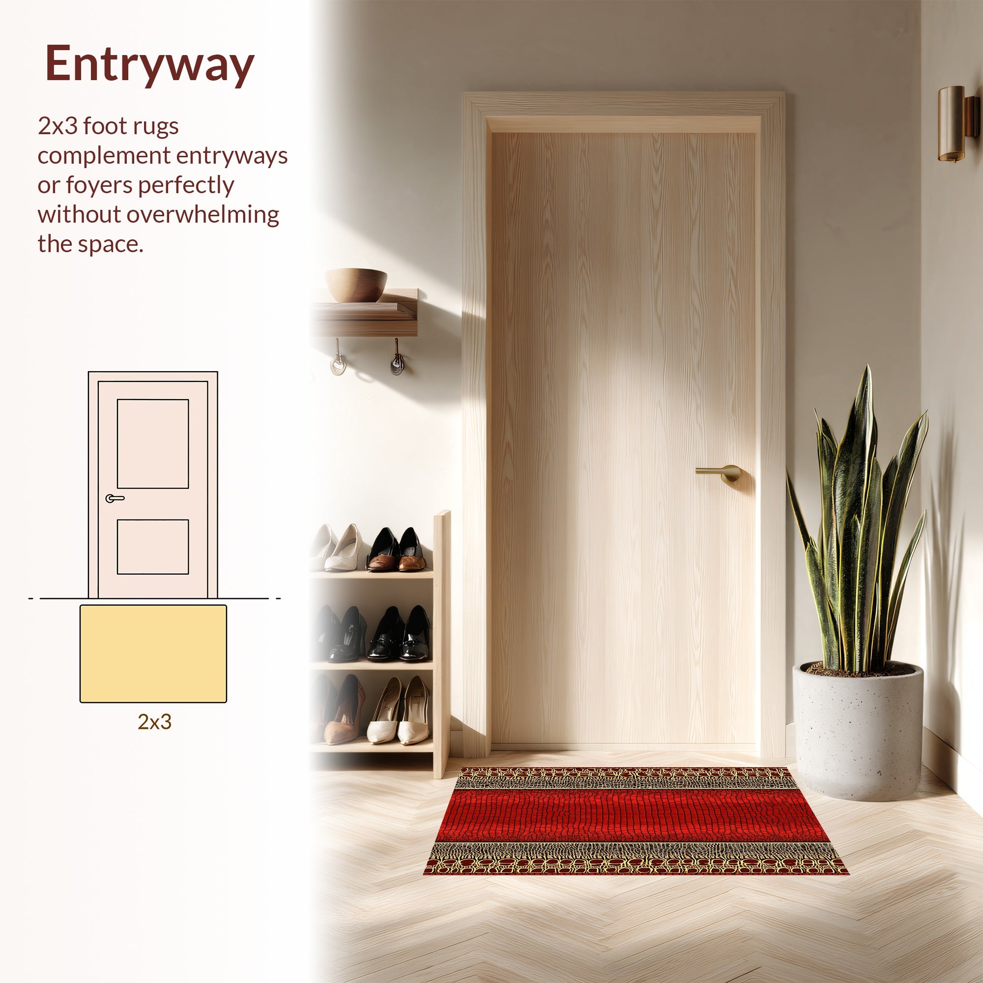 Flatwoven High Traffic Area Rug, Vibrant Multi Color Abstract Style, Non Slip, Stain Resistant, Washable Area Rugs for Living Room, Bedroom (Red) Overview: