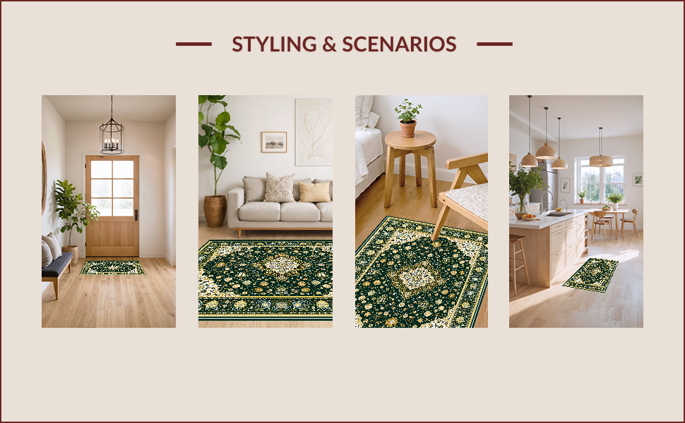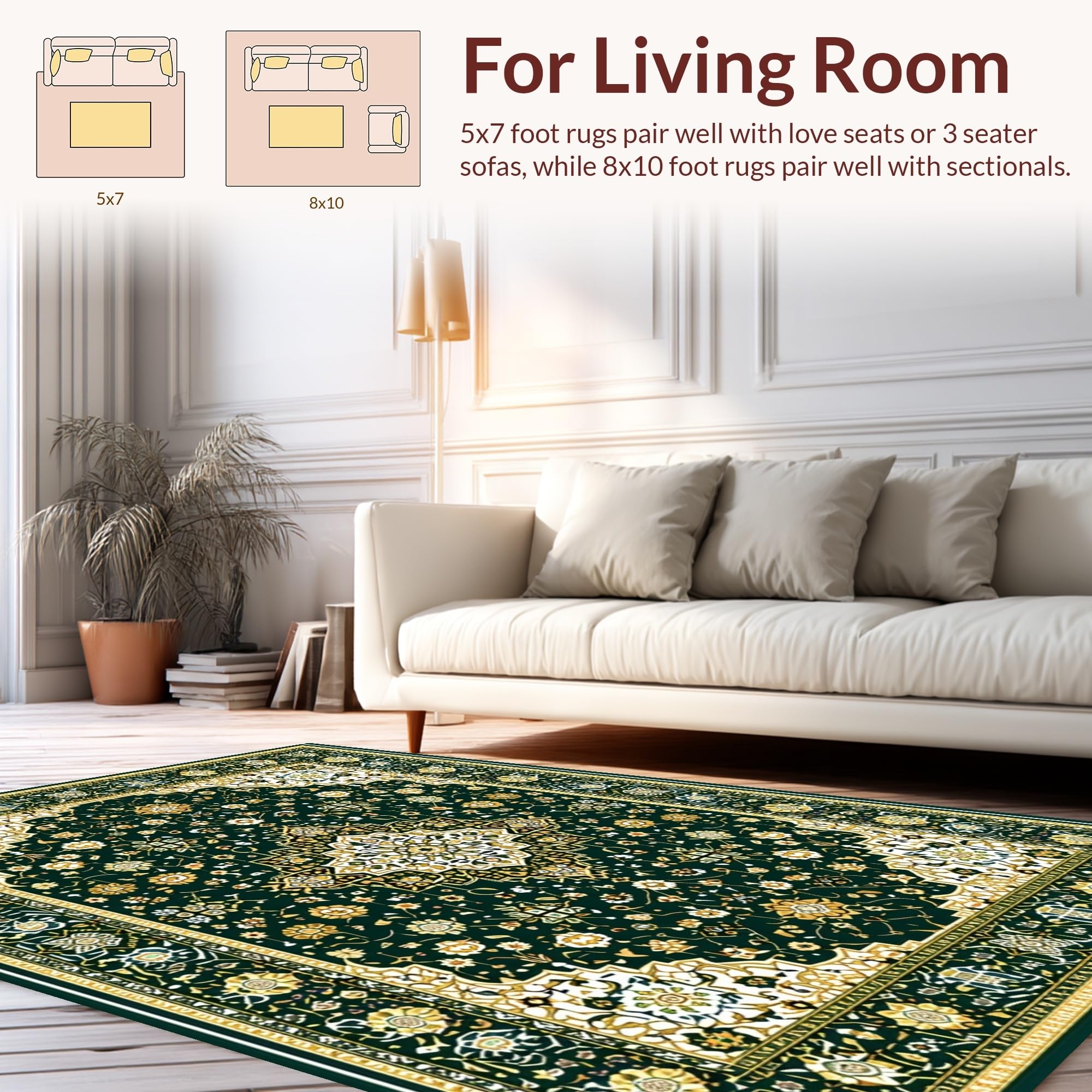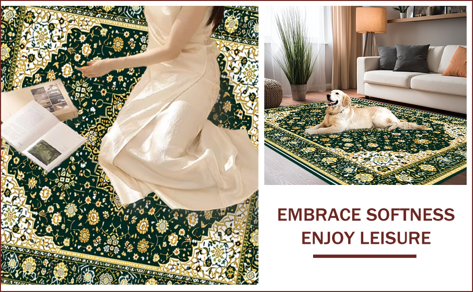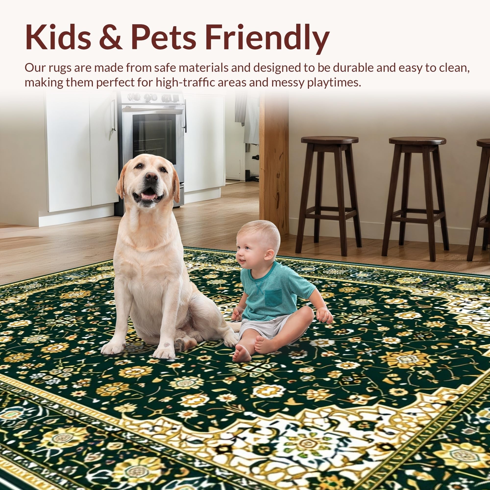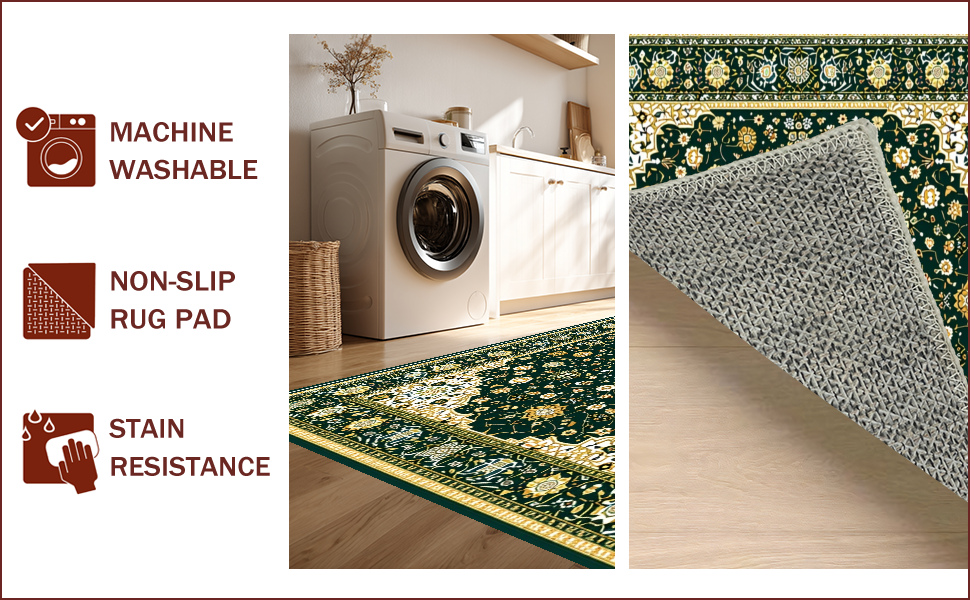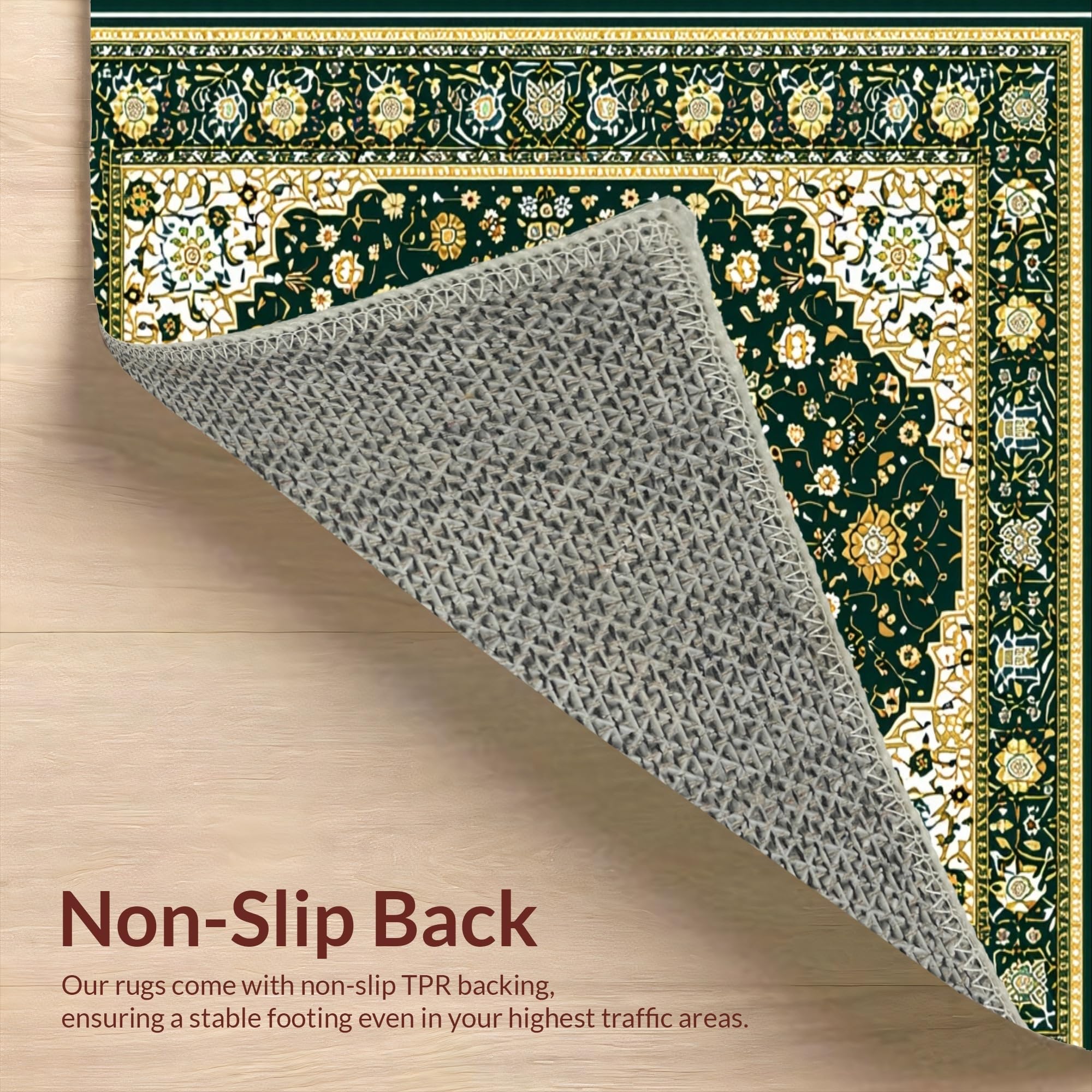 Ultra Soft Area Rug, Non Slip, Stain Resistant, Washable Area Rugs for Living Room, Bedroom, Vibrant Multi-User Prayer Aesthetic(Green) Overview: