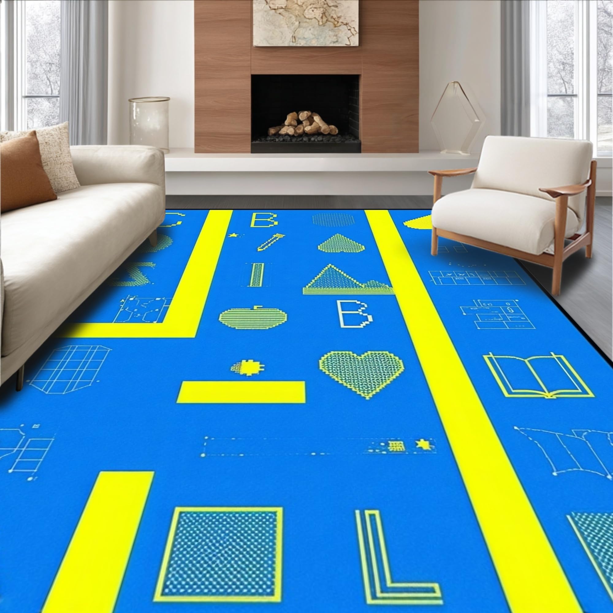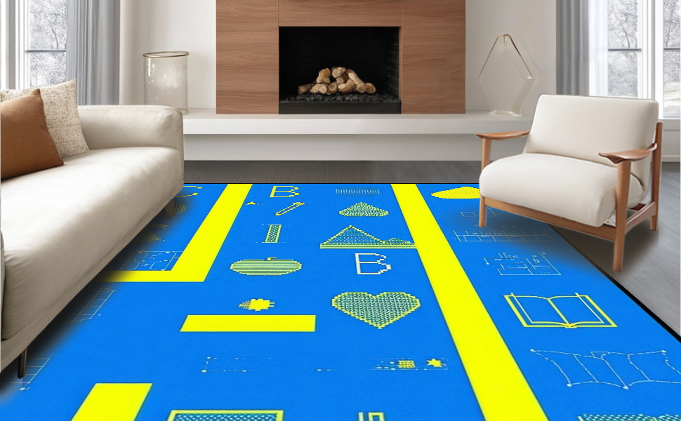 Ultra Soft Area Rug, Non Slip, Stain Resistant, Washable Area Rugs for Living Room, Bedroom, Vibrant Multicolor Alphabetical Arrangement(Blue) Overview: