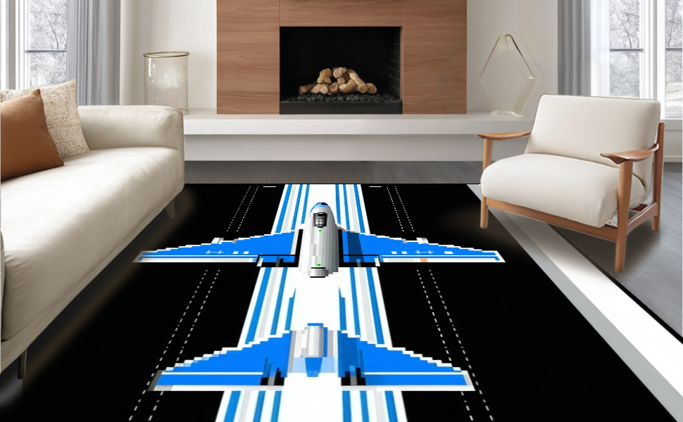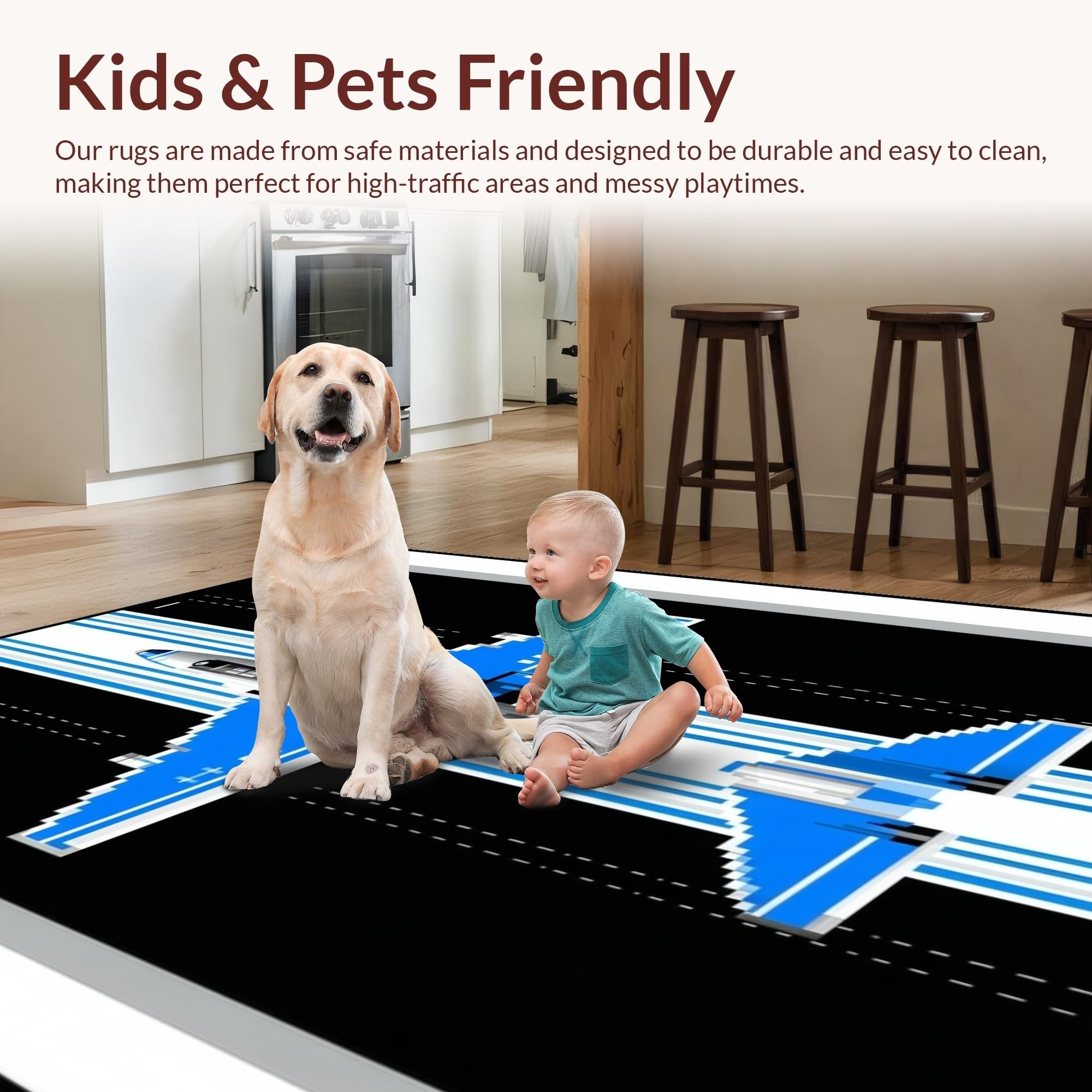 Ultra Soft Area Rug, Non Slip, Stain Resistant, Washable Area Rugs for Living Room, Bedroom, Vibrant Multicolored Jet Design(Blue) Overview: