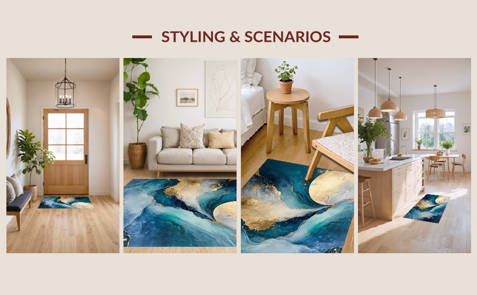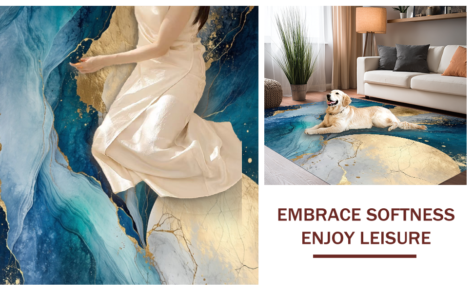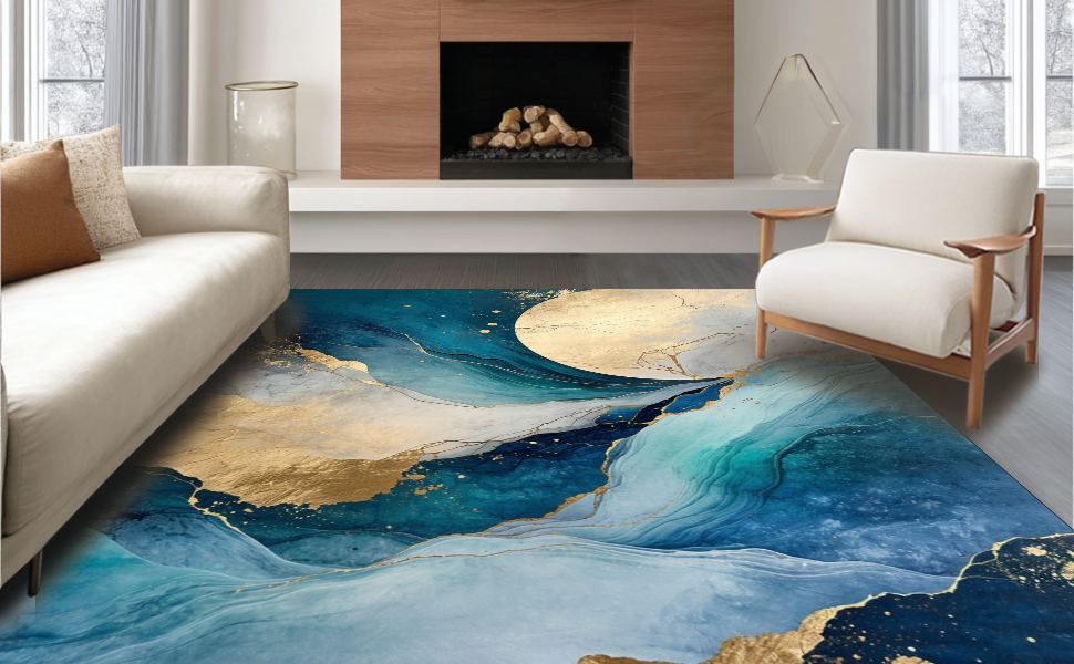 Ultra Soft Area Rug, Non Slip, Stain Resistant, Washable Area Rugs for Living Room, Bedroom, Vibrant Ocean-Inspired Swirl Design(Blue) Overview: