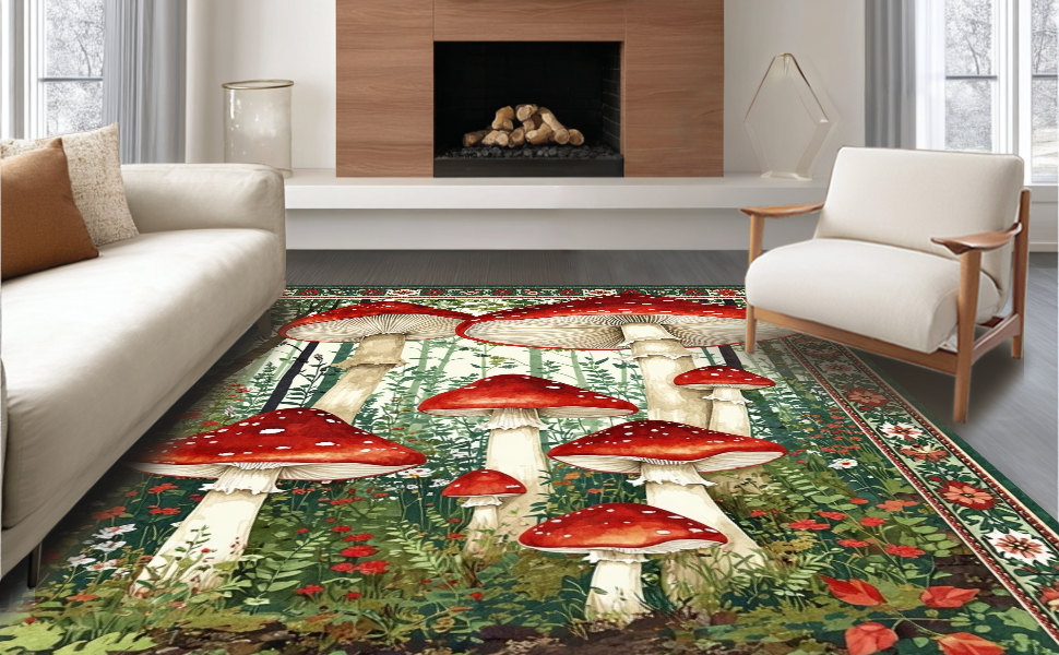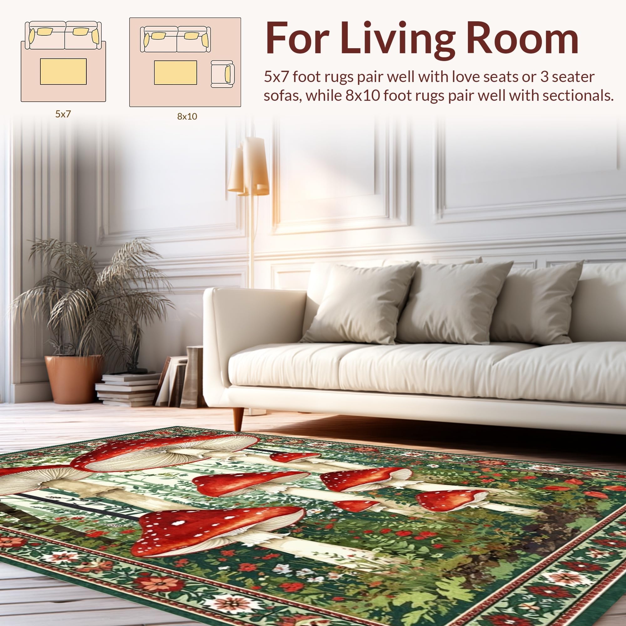 Ultra Soft Area Rug, Non Slip, Stain Resistant, Washable Area Rugs for Living Room, Bedroom, Vibrant Organic Nature Pattern(Red) Overview: