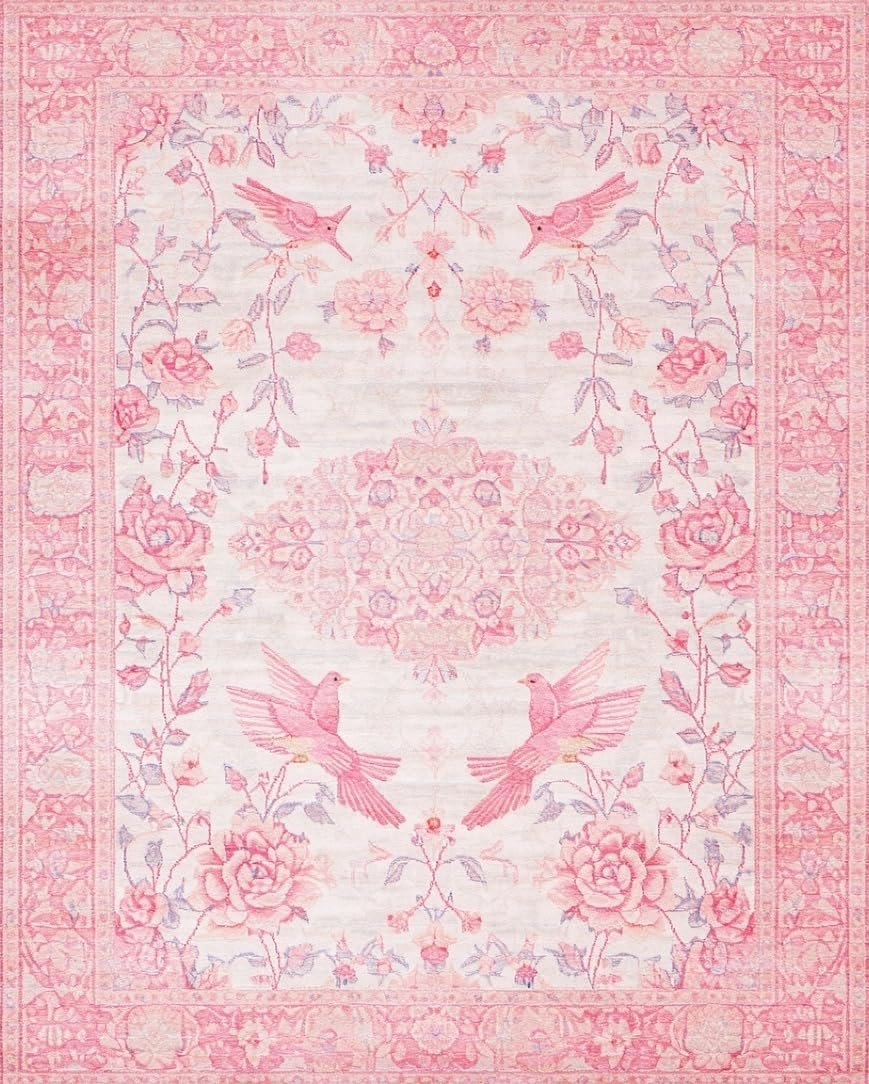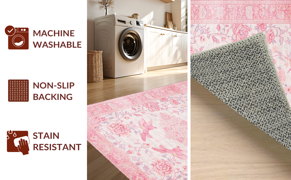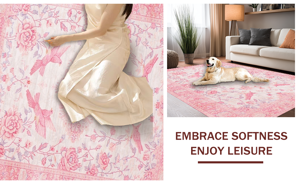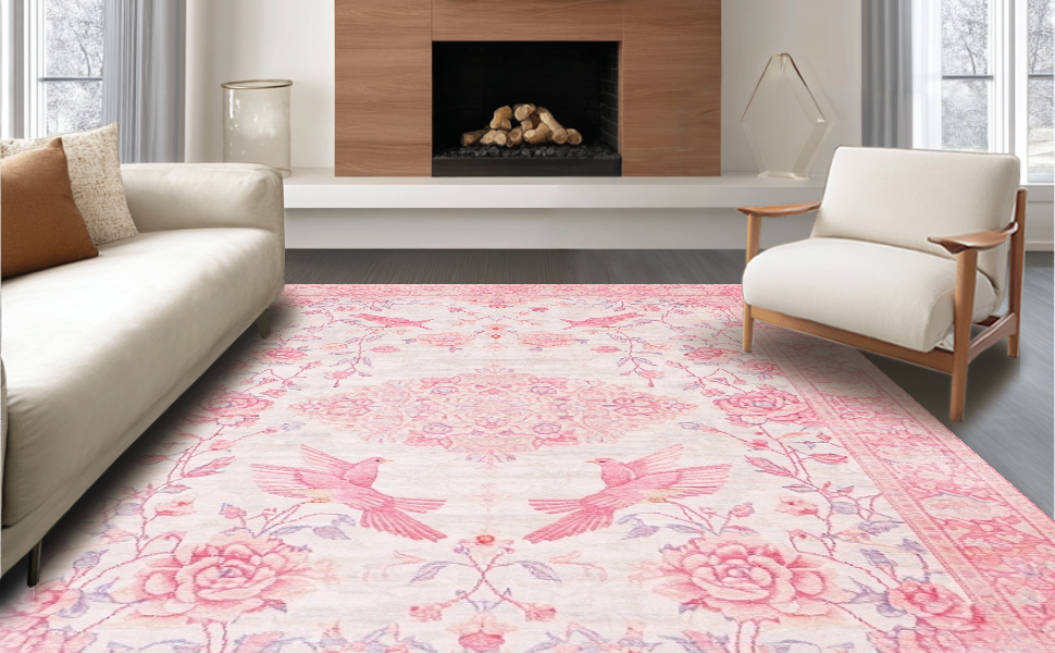 Ultra Soft Area Rug, Non Slip, Stain Resistant, Washable Area Rugs for Living Room, Bedroom, Vibrant Pastel Botanical Whimsy(Pink) Overview: