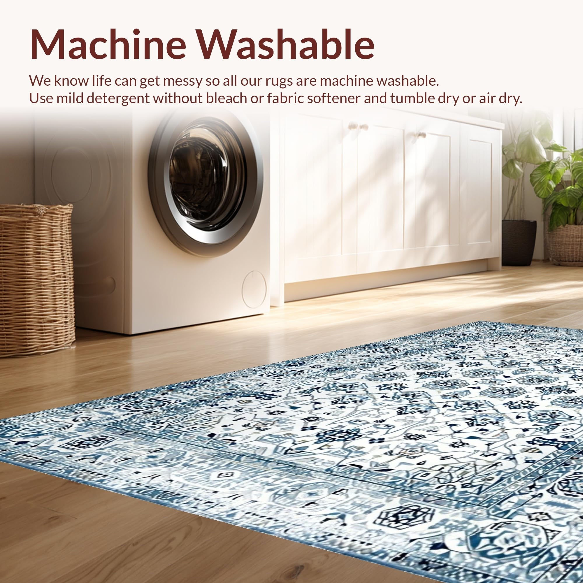- Machine Washable: Our rugs can be easily thrown in the wash machine.