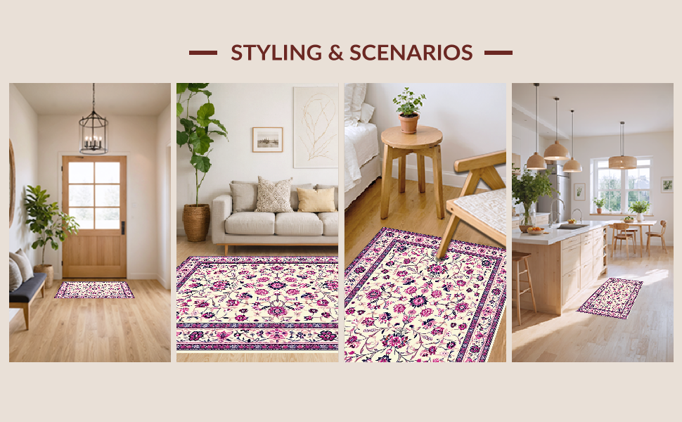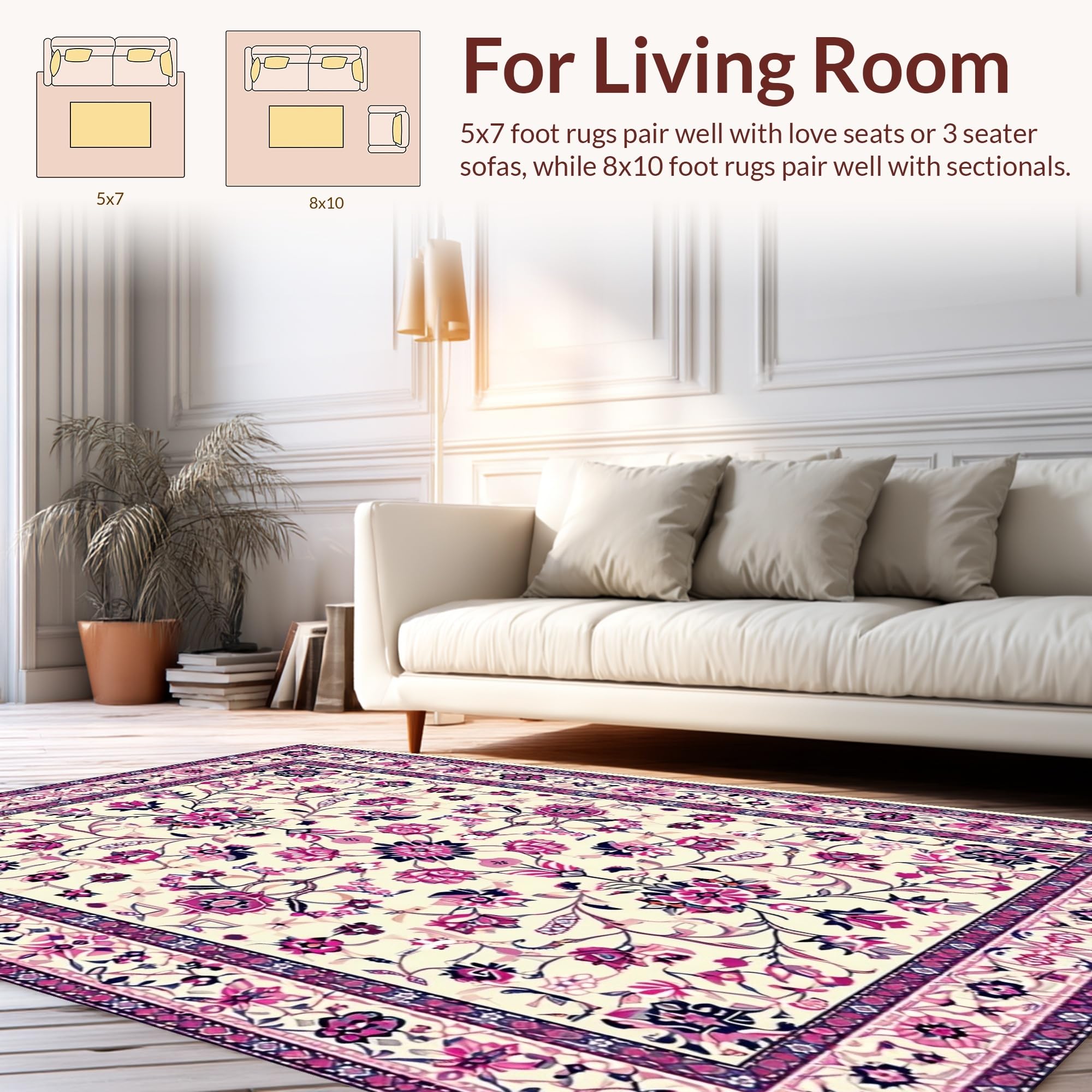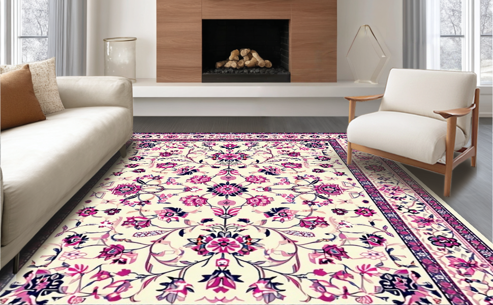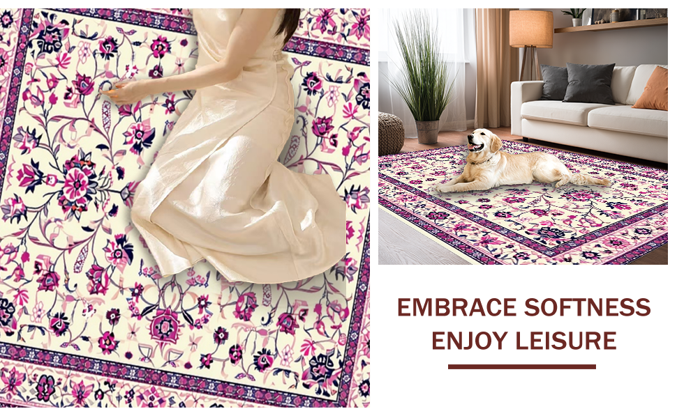 Ultra Soft Area Rug, Non Slip, Stain Resistant, Washable Area Rugs for Living Room, Bedroom, Vibrant Pastel Floral Embellishments(Beige) Overview: