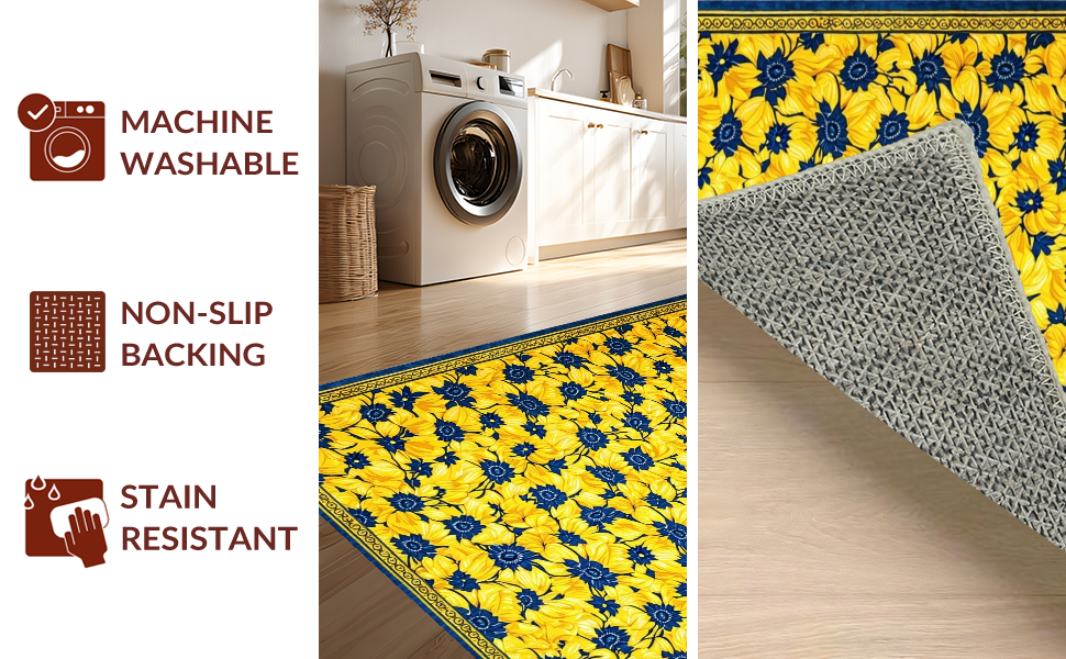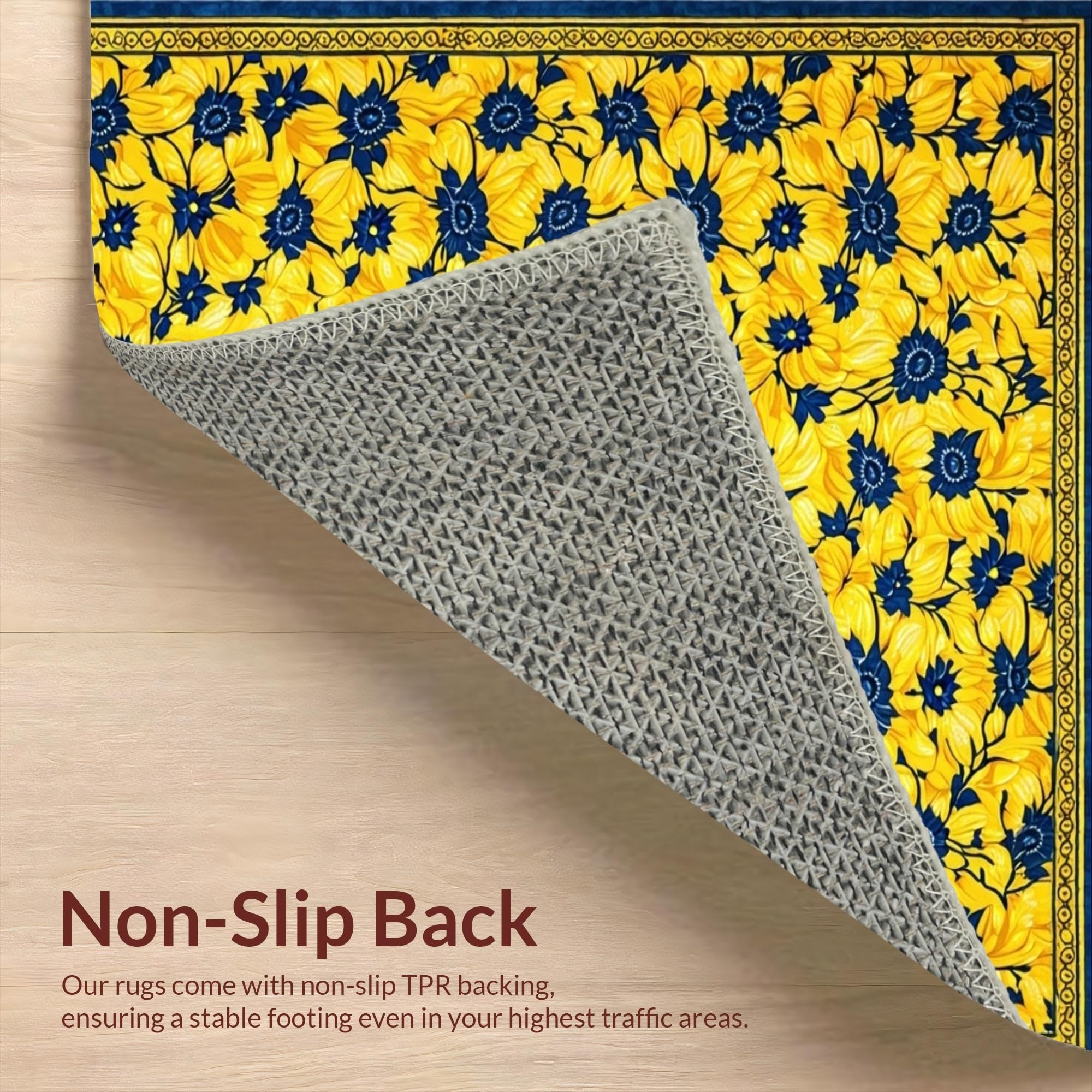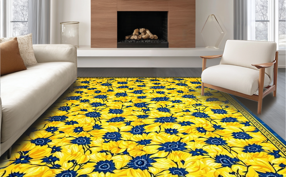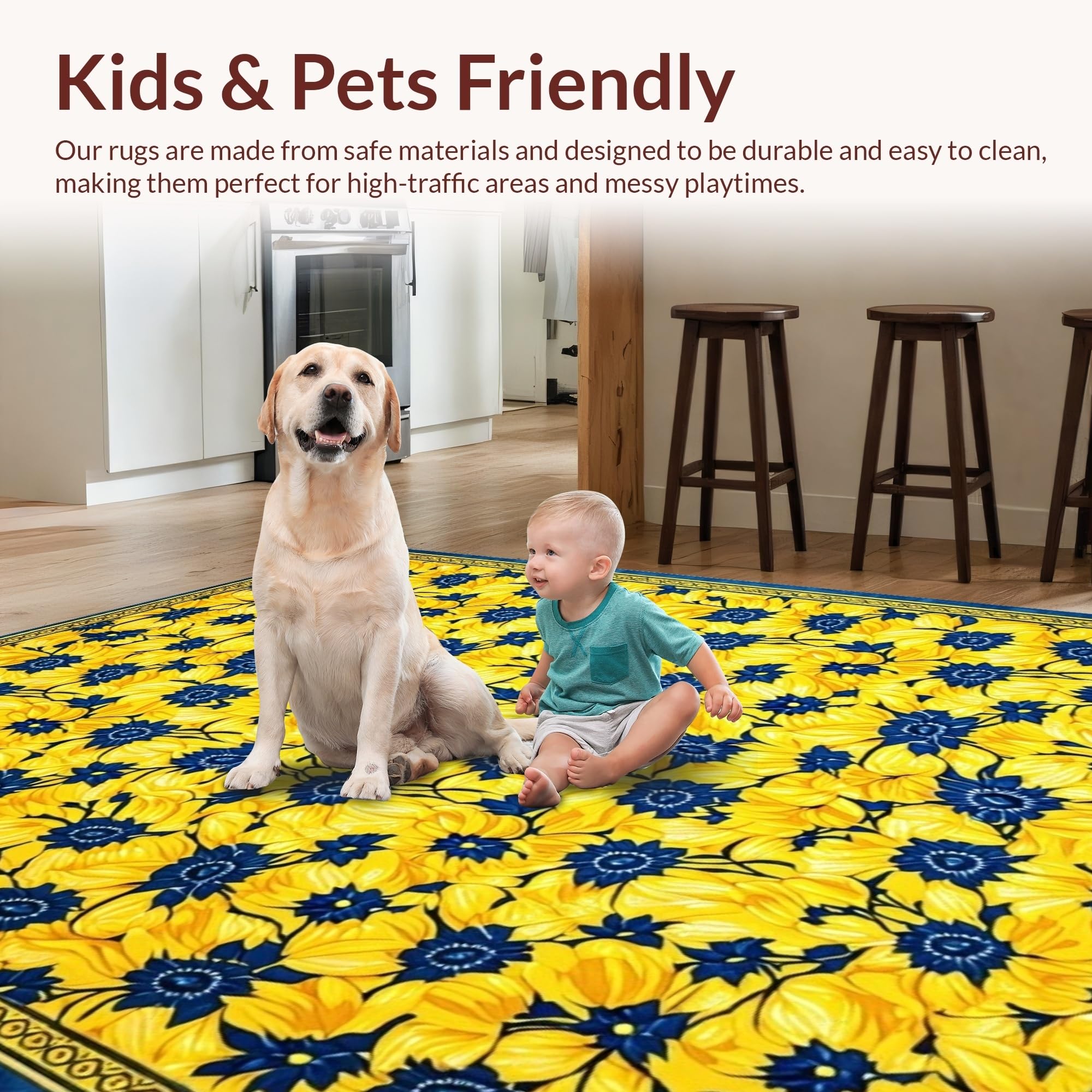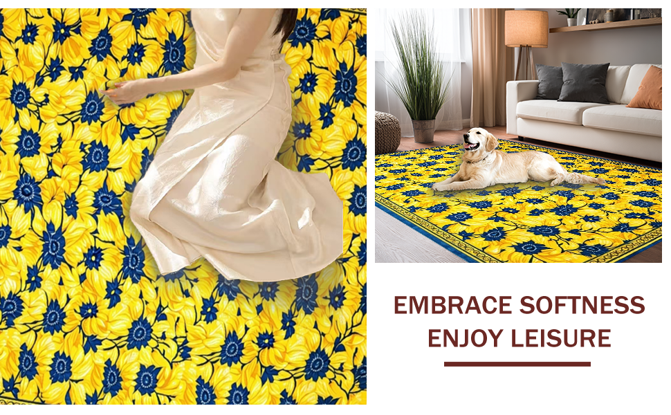 Ultra Soft Area Rug, Non Slip, Stain Resistant, Washable Area Rugs for Living Room, Bedroom, Vibrant Petal Patterned Visual(Yellow) Overview: