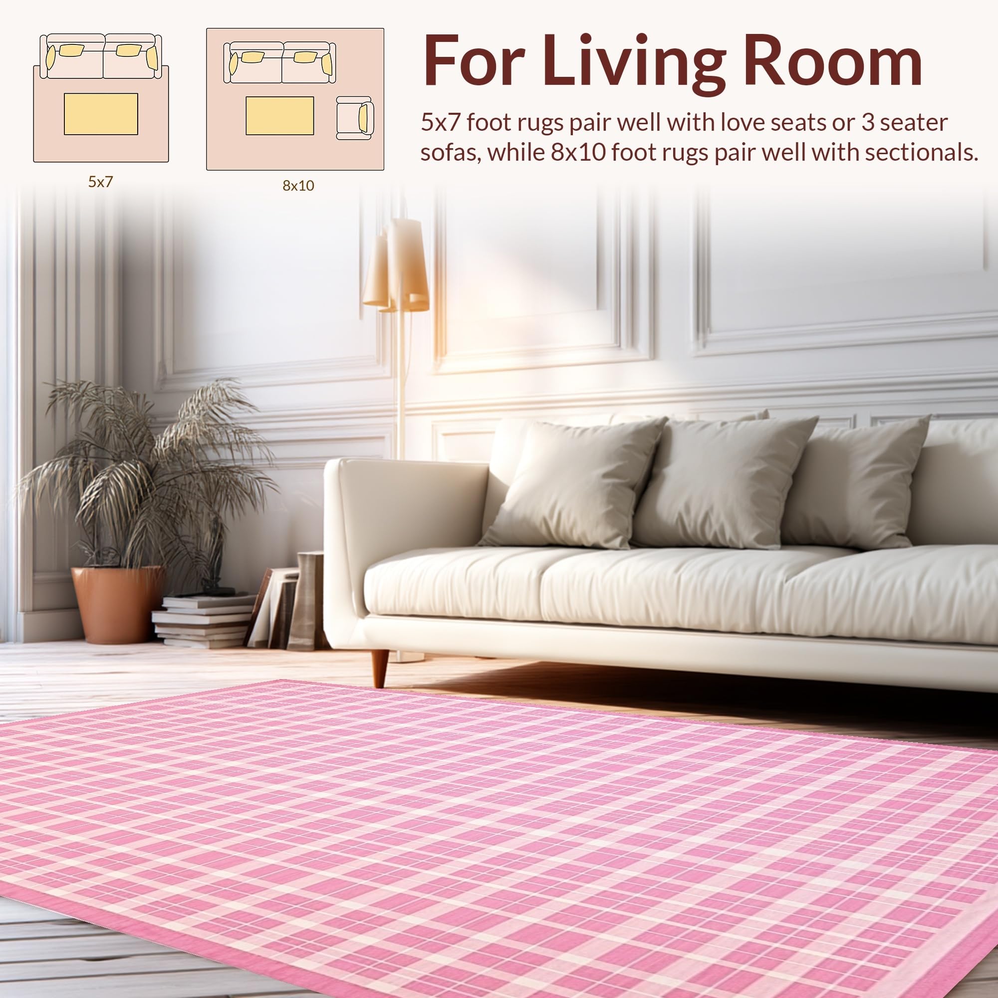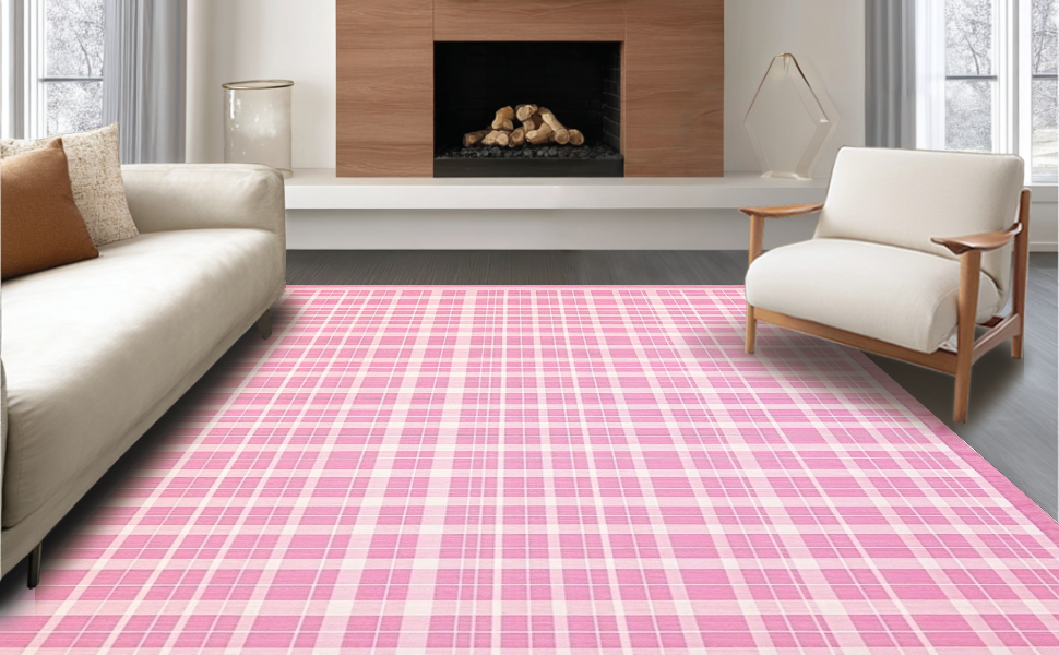 Ultra Soft Area Rug, Non Slip, Stain Resistant, Washable Area Rugs for Living Room, Bedroom, Vibrant Pink and White Symmetry(Pink) Overview: