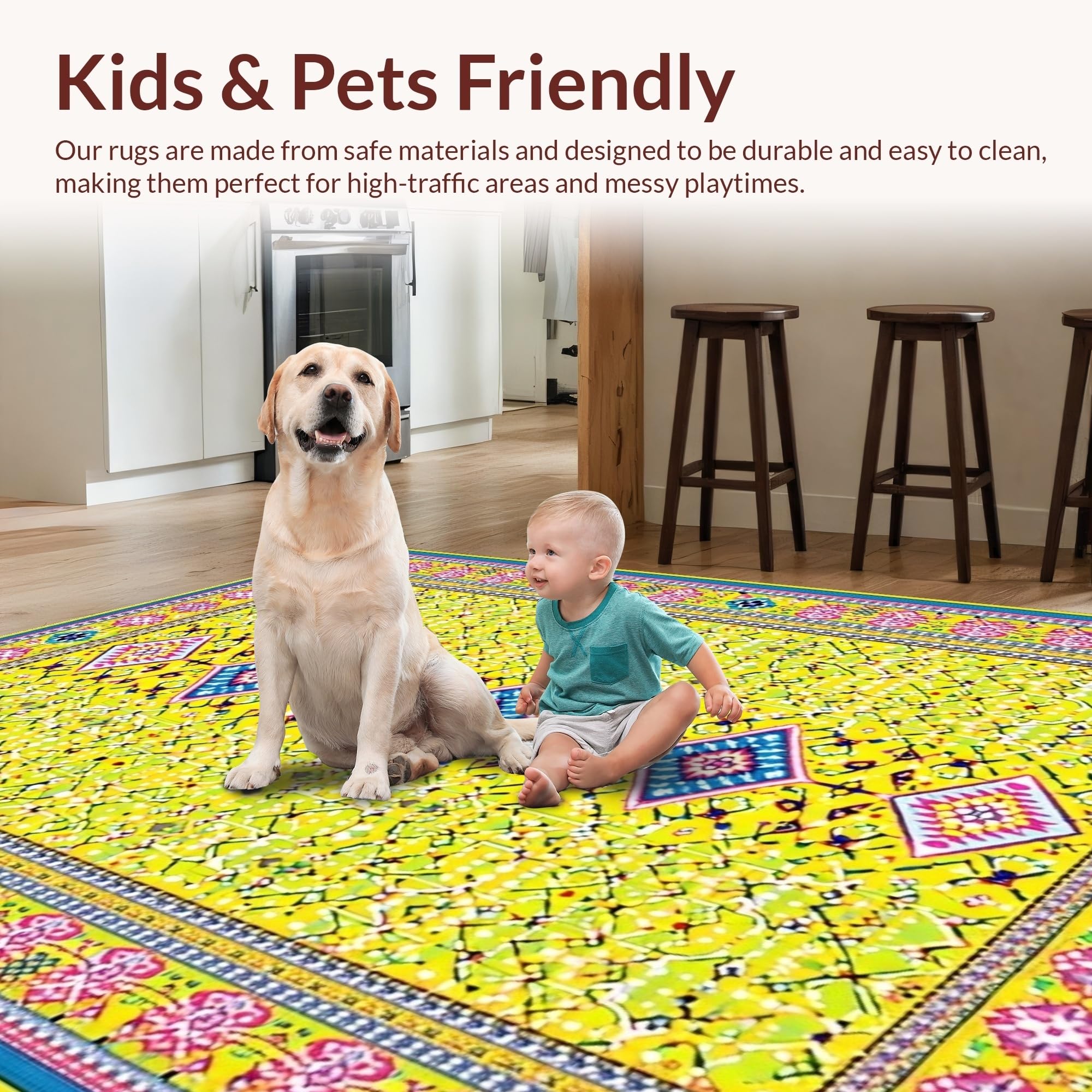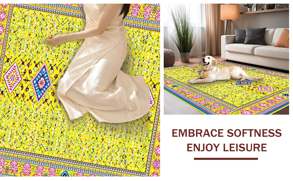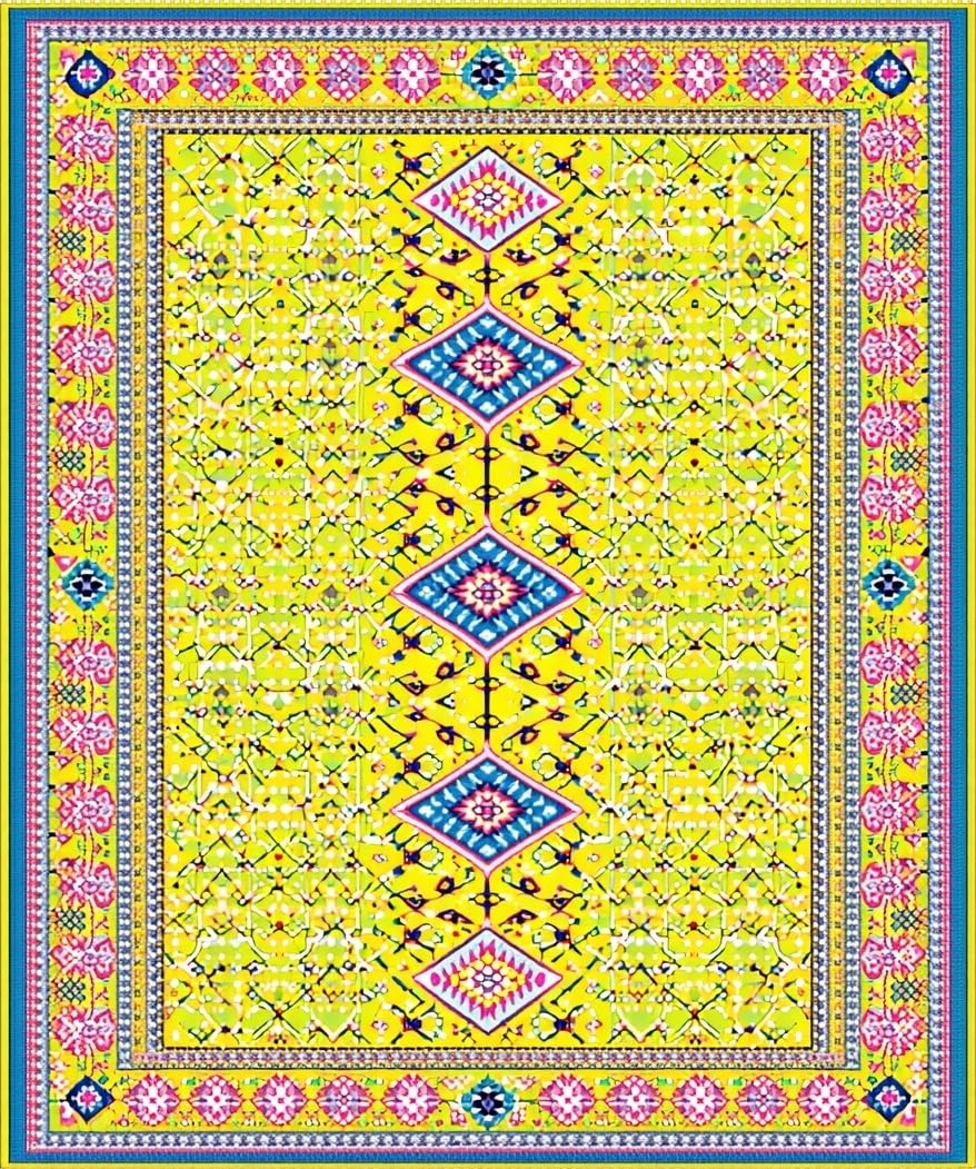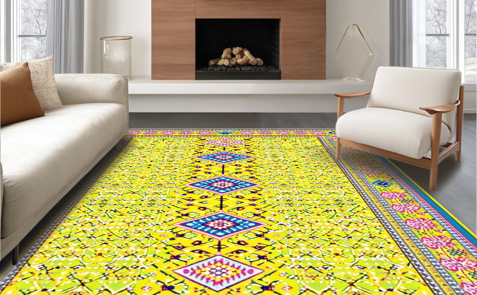Ultra Soft Area Rug, Non Slip, Stain Resistant, Washable Area Rugs for Living Room, Bedroom, Vibrant Playful Geometric Mosaic(Yellow) Overview: