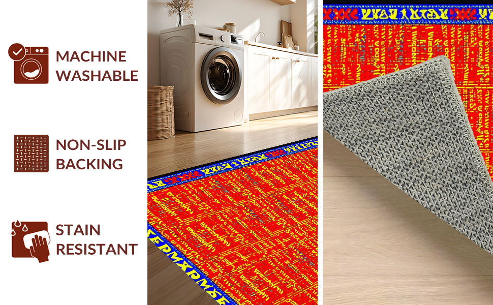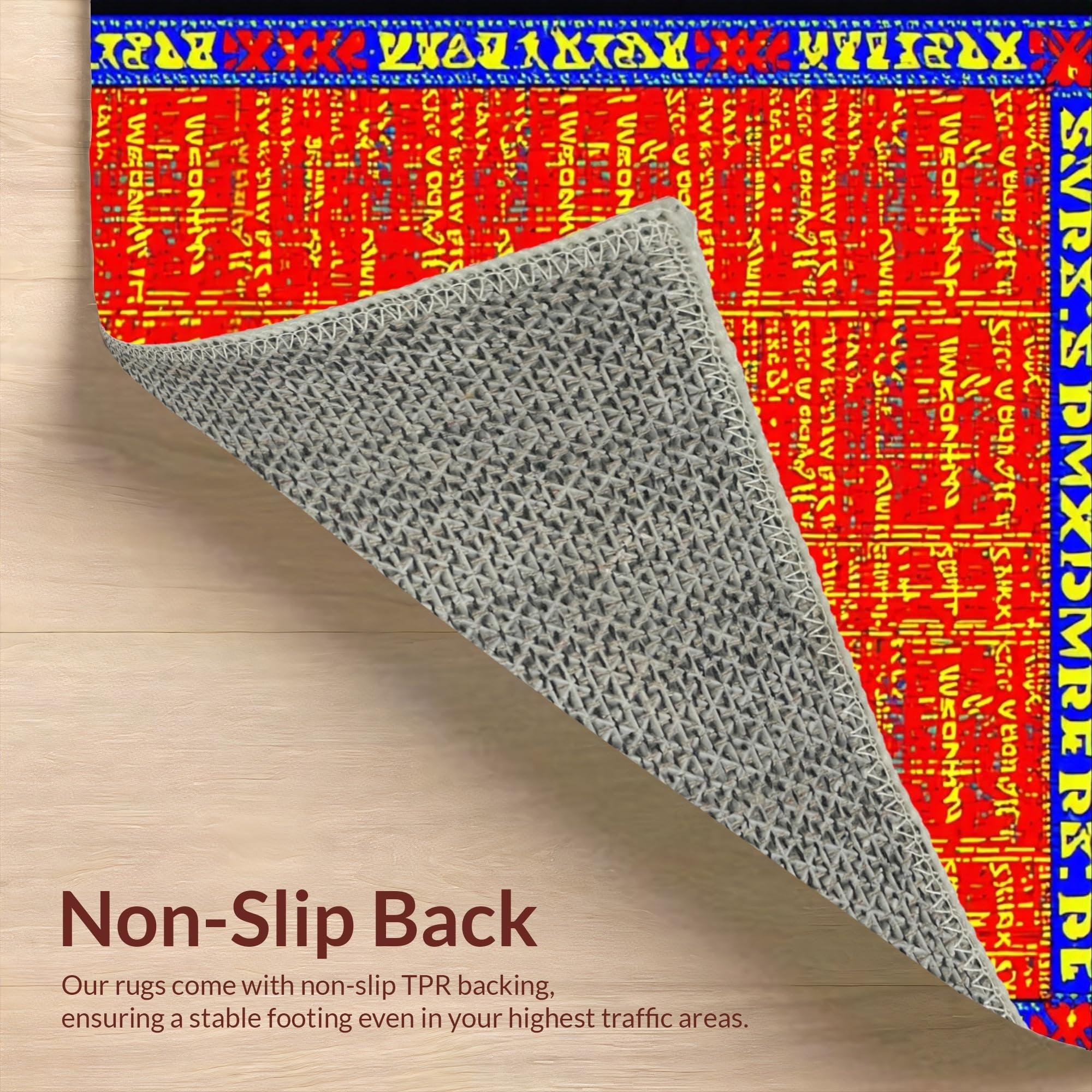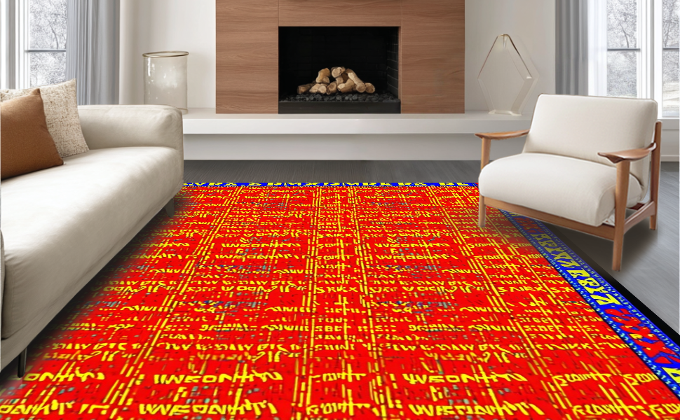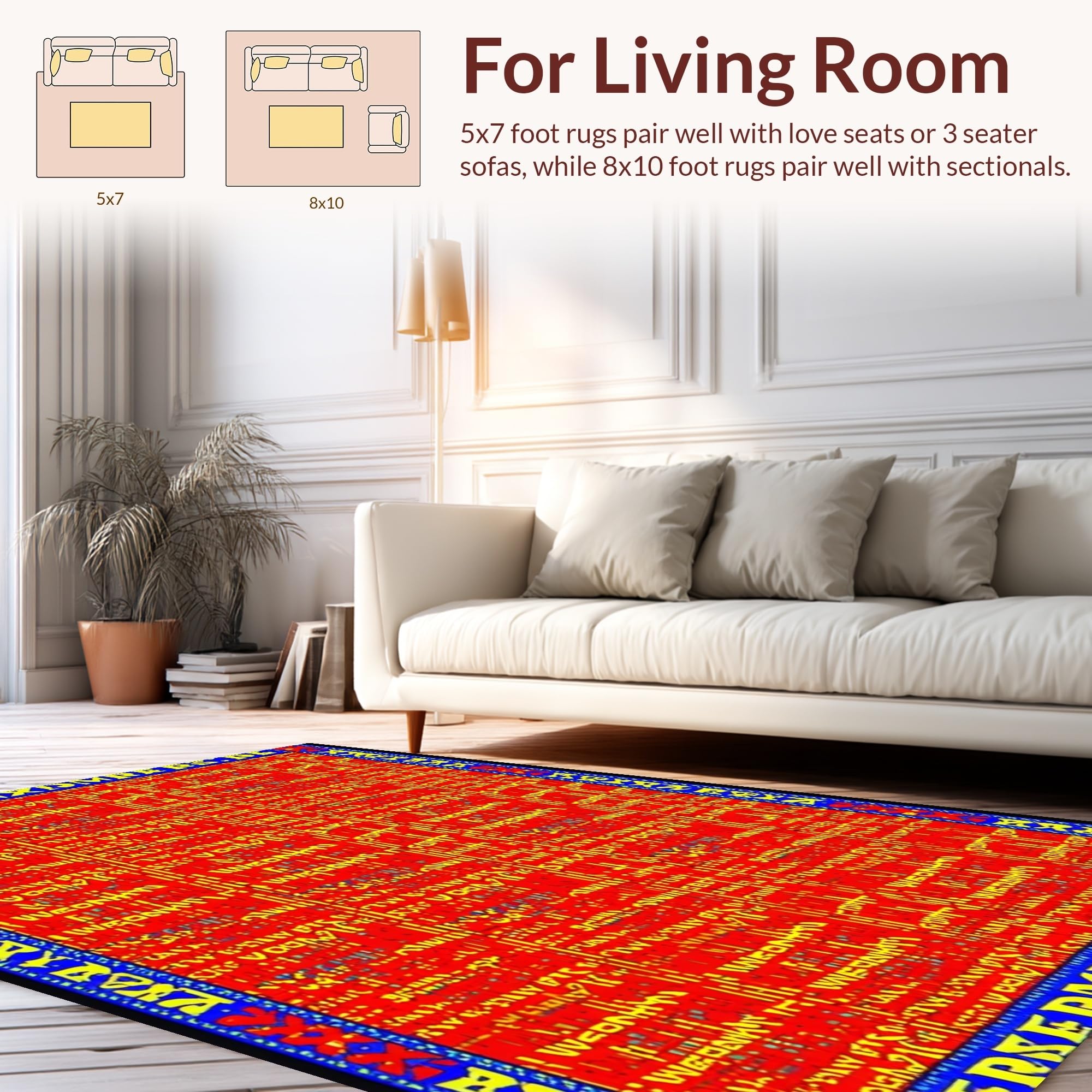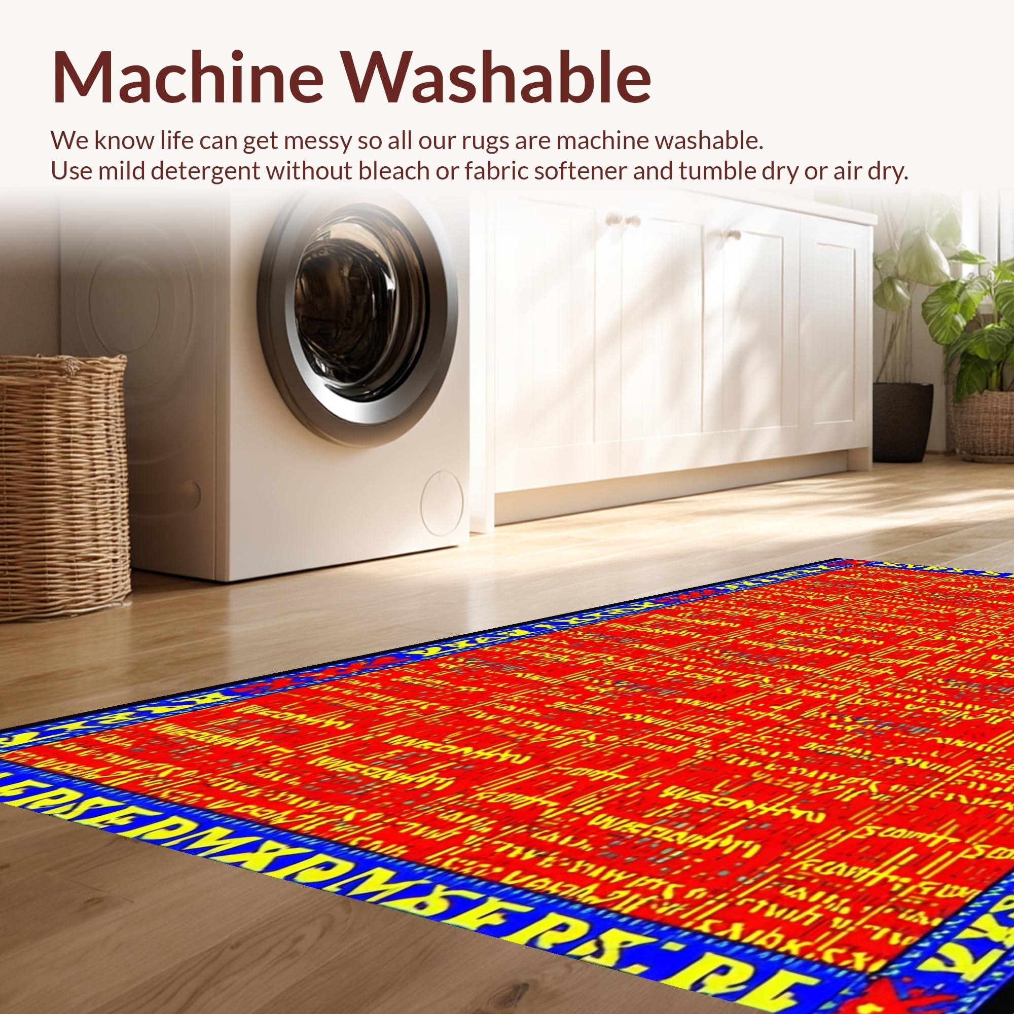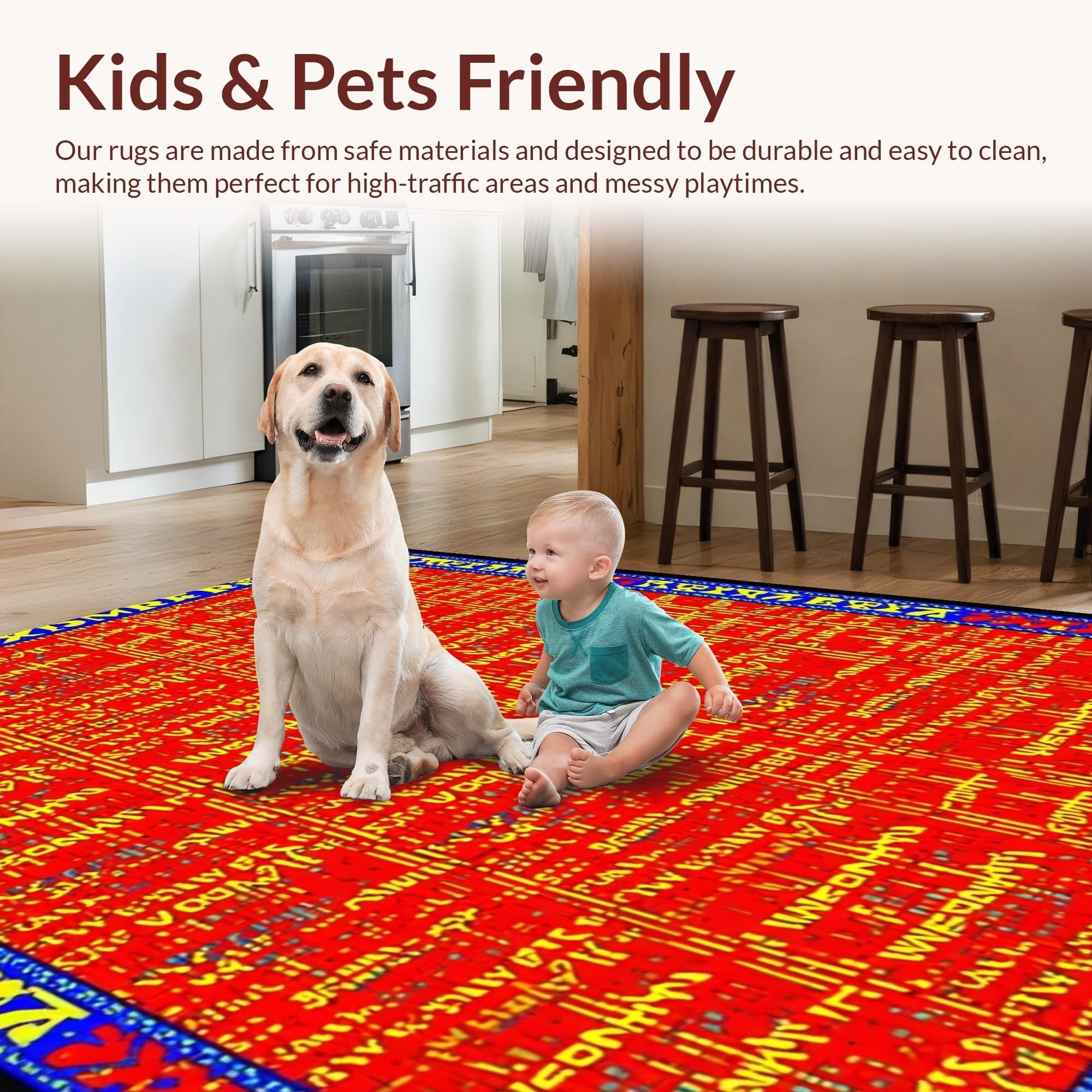 Ultra Soft Area Rug, Non Slip, Stain Resistant, Washable Area Rugs for Living Room, Bedroom, Vibrant Playful Word Art Creation(Red) Overview: