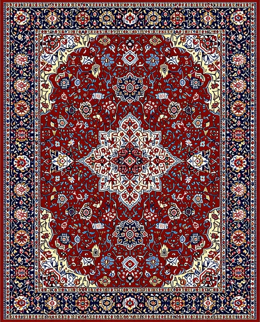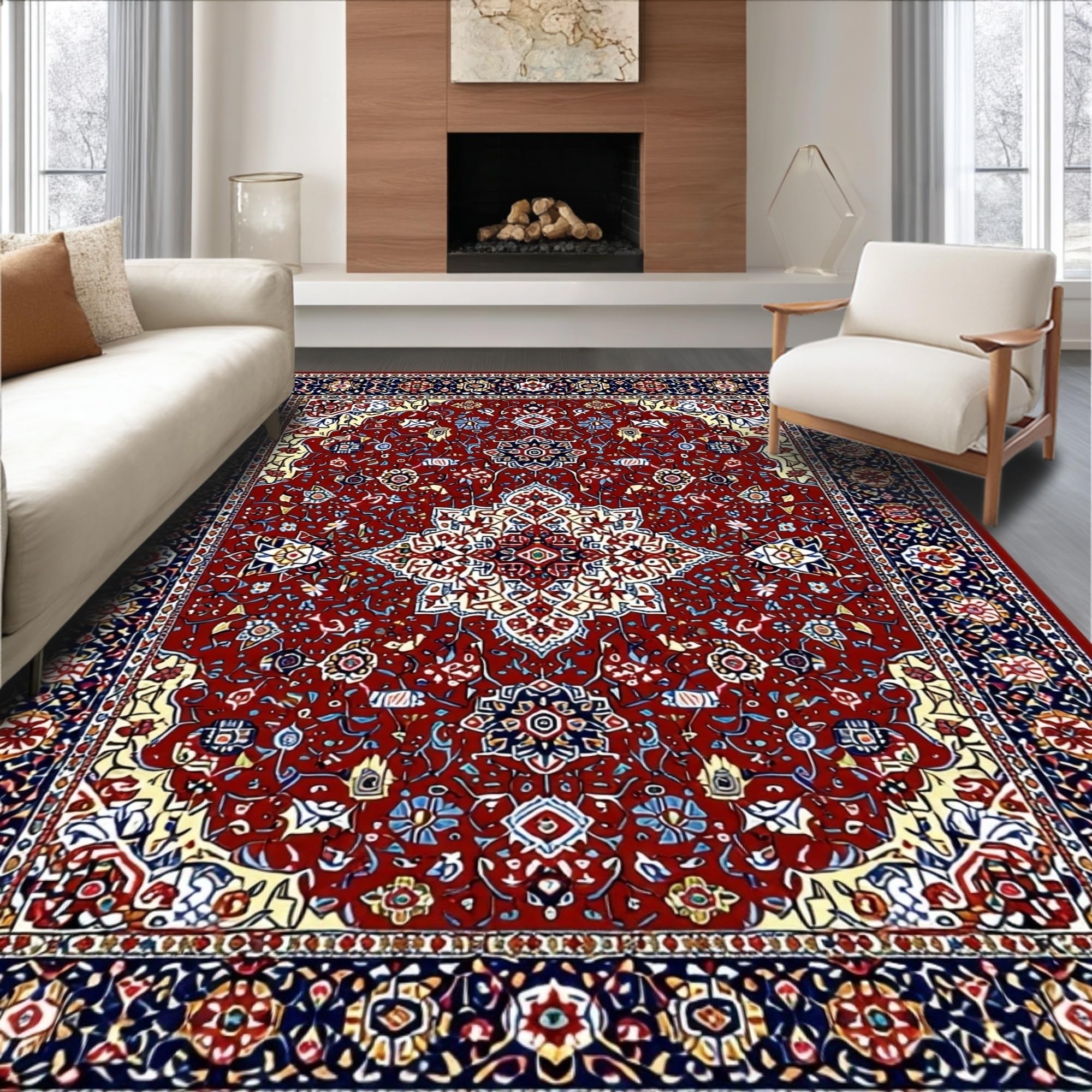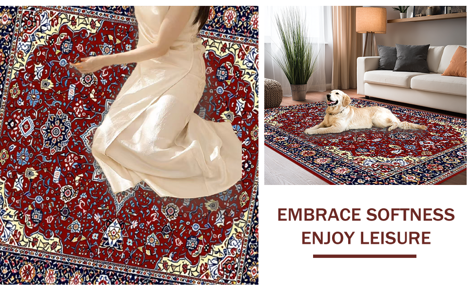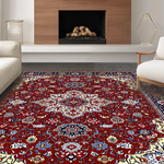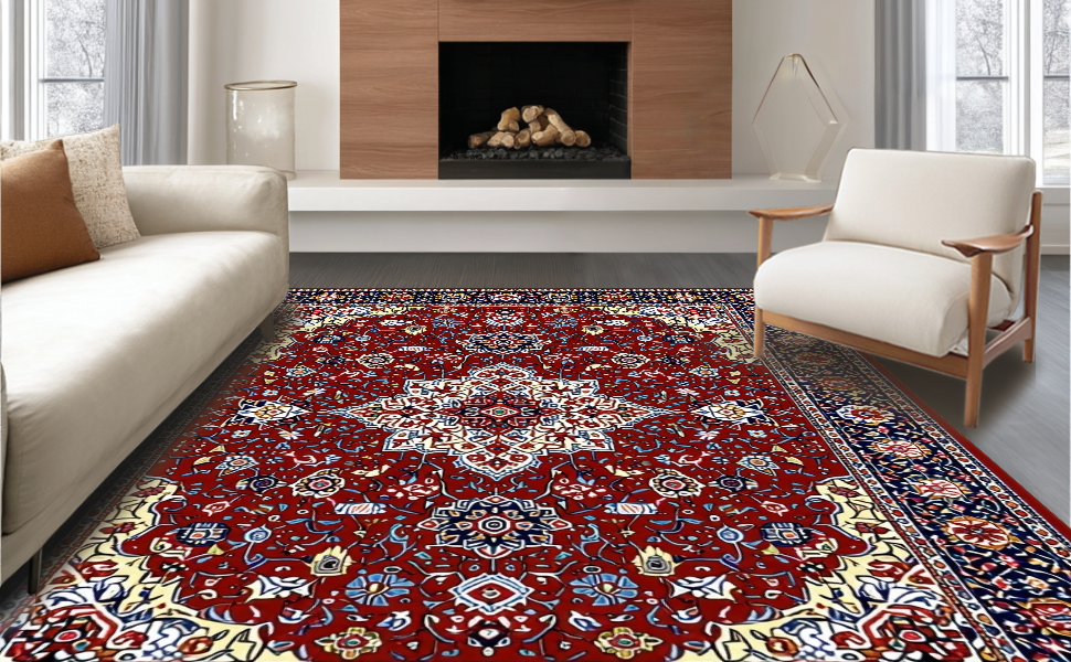 Ultra Soft Area Rug, Non Slip, Stain Resistant, Washable Area Rugs for Living Room, Bedroom, Vibrant Red Geometric Motif(Red) Overview: