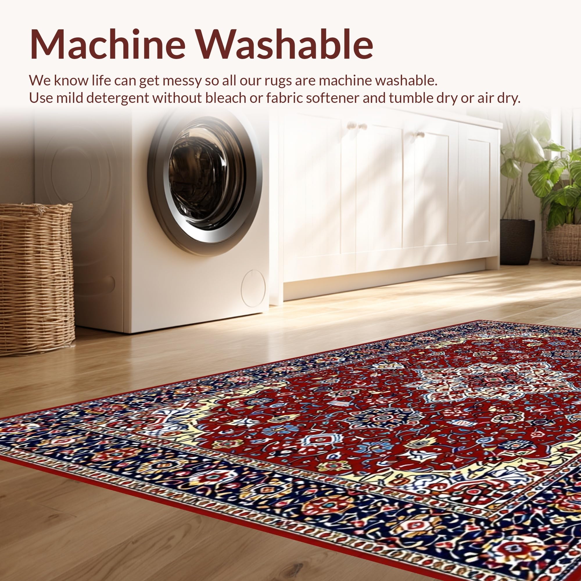 - Machine Washable: Our rugs can be easily thrown in the wash machine.