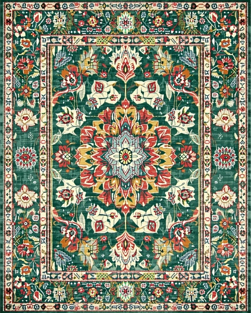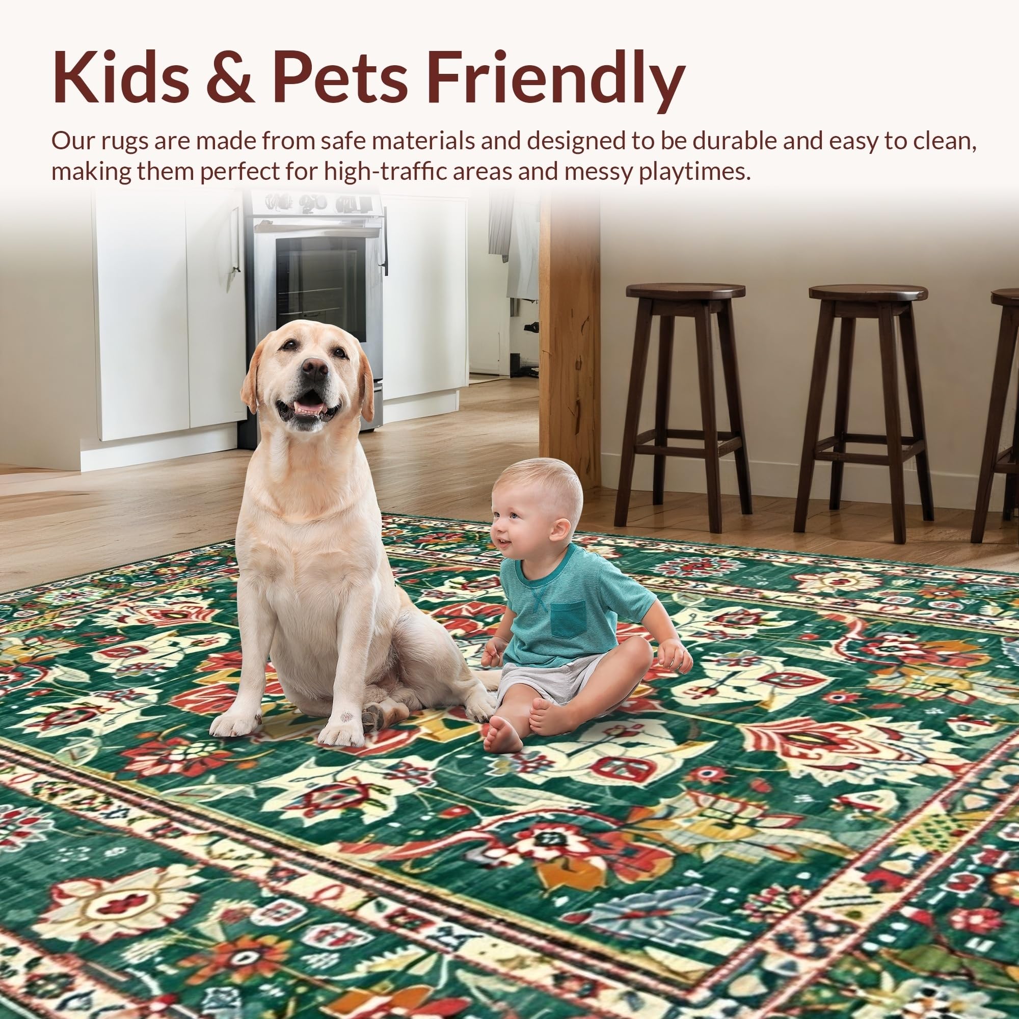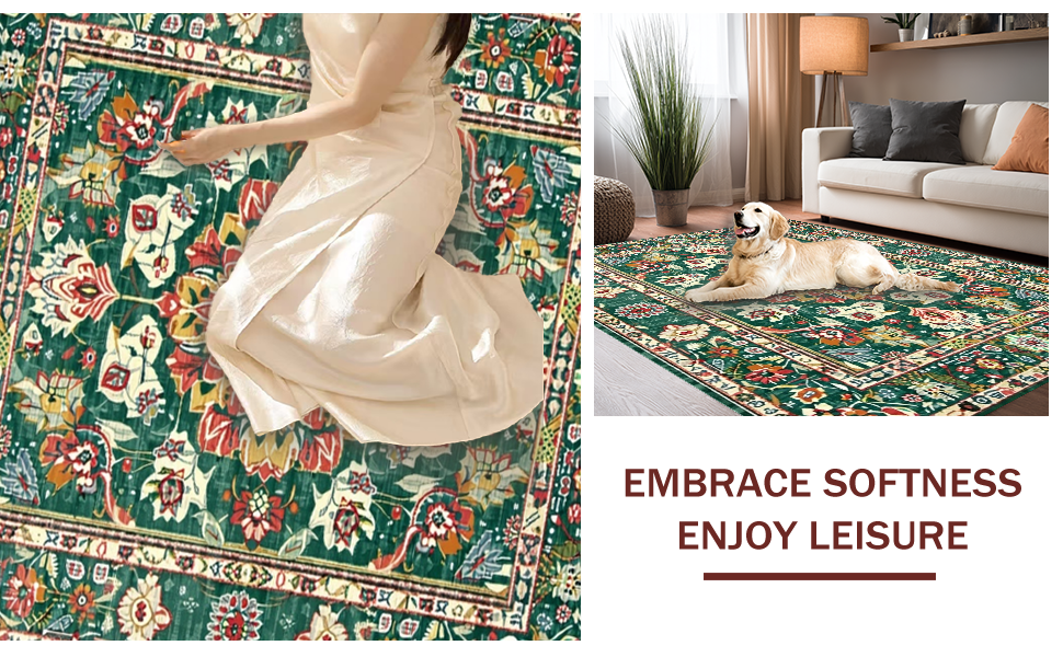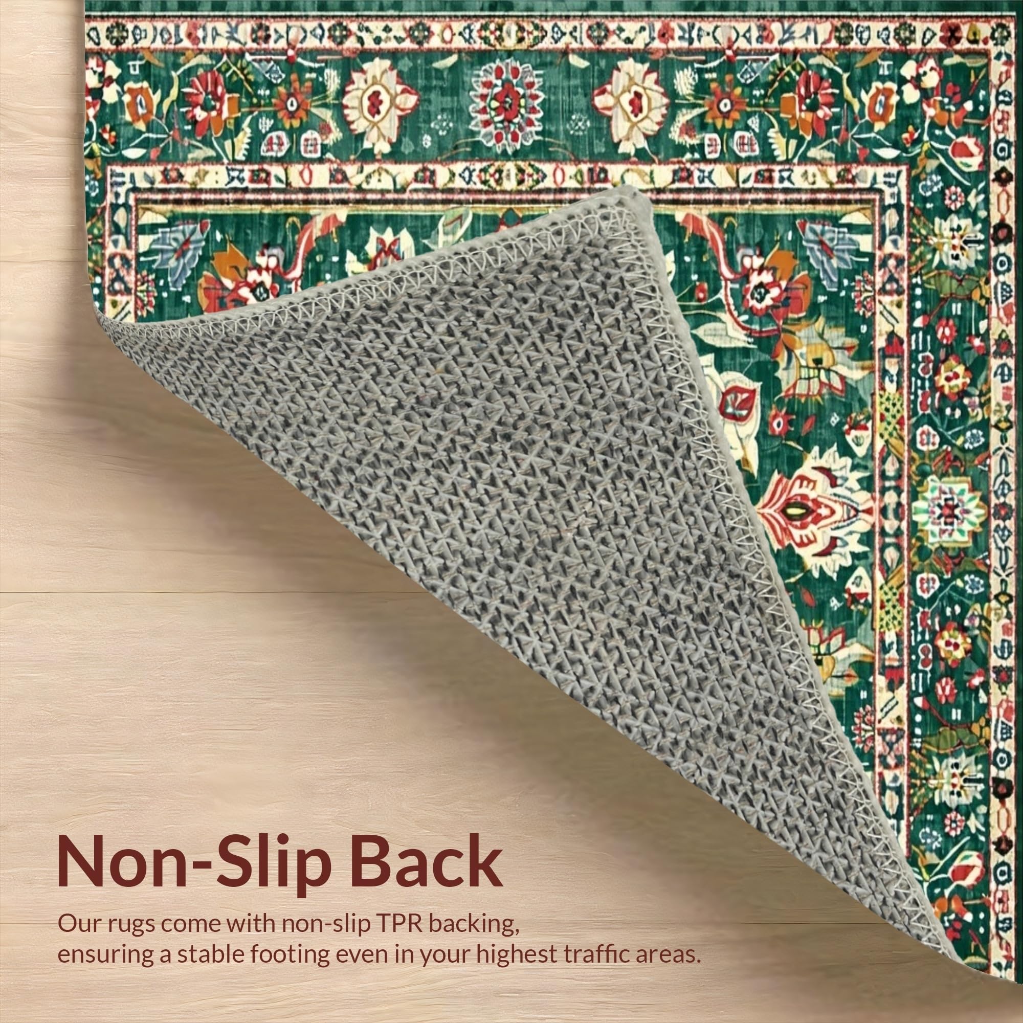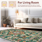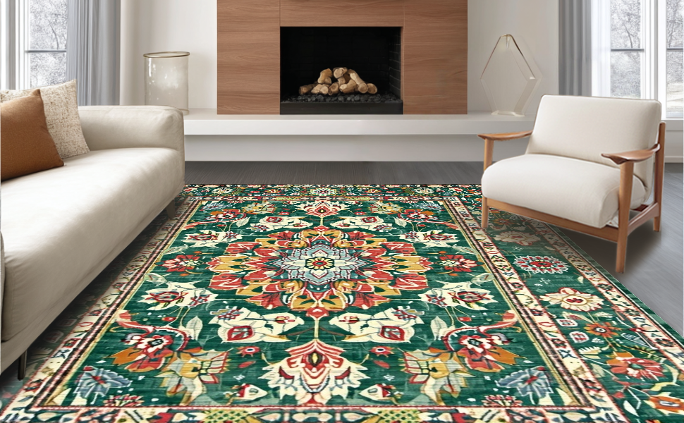 Ultra Soft Area Rug, Non Slip, Stain Resistant, Washable Area Rugs for Living Room, Bedroom, Vibrant Retro Garden Design(Green) Overview:
