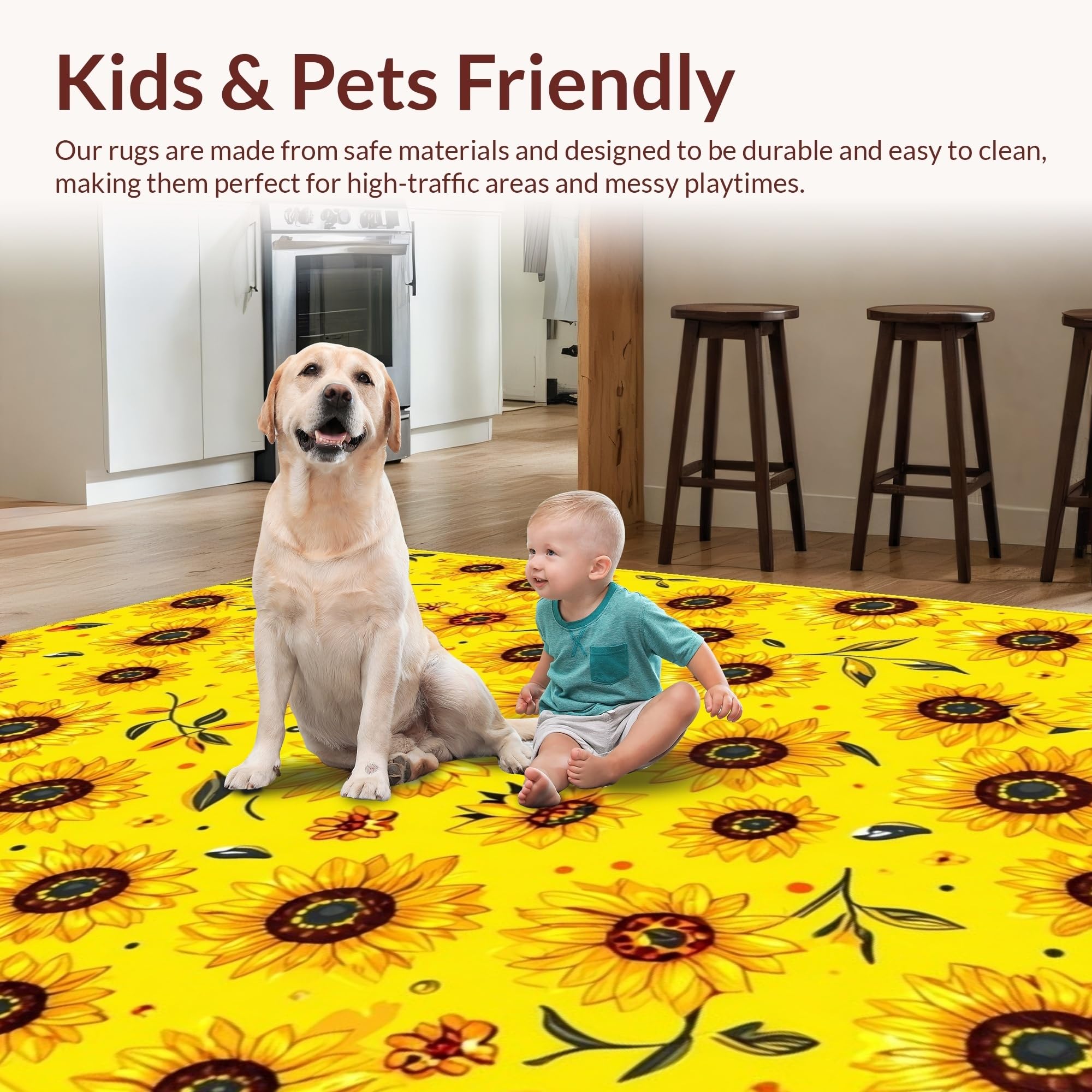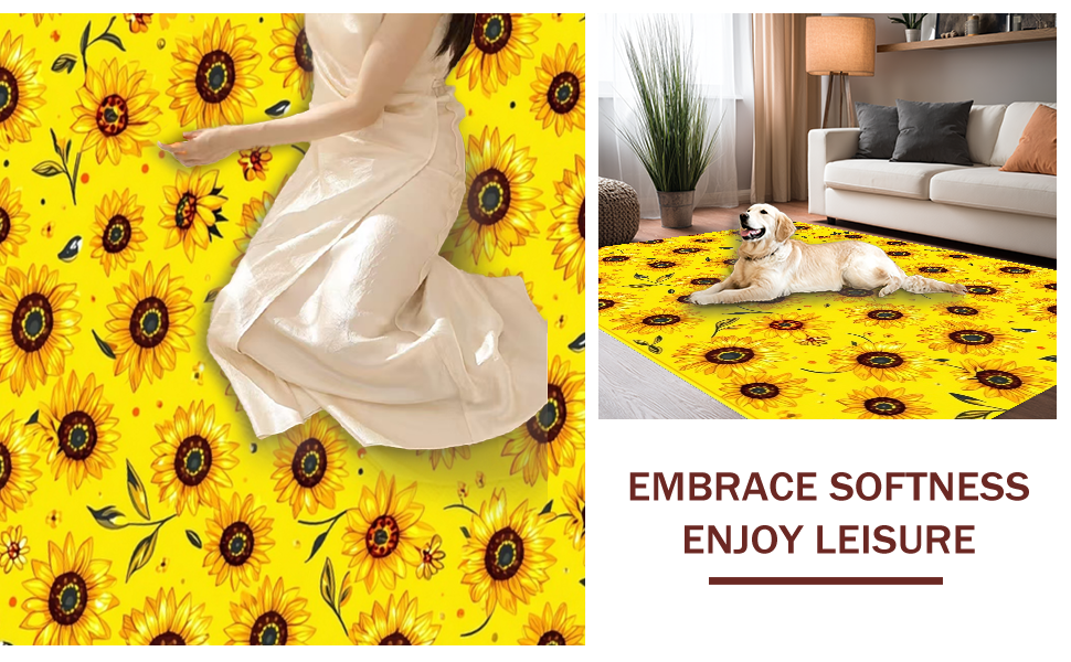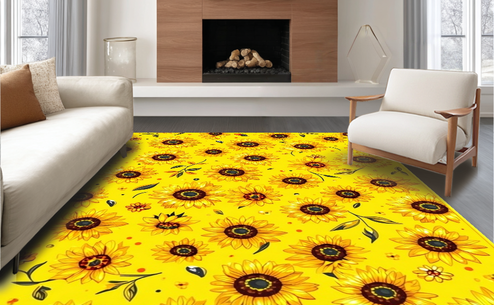 Ultra Soft Area Rug, Non Slip, Stain Resistant, Washable Area Rugs for Living Room, Bedroom, Vibrant Rustic Botanical Design(Yellow) Overview: