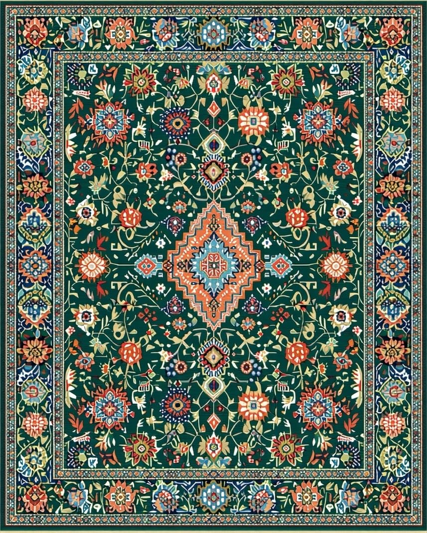 Ultra Soft Area Rug, Non Slip, Stain Resistant, Washable Area Rugs for Living Room, Bedroom, Vibrant Rustic Flower Accents(Green) Overview: