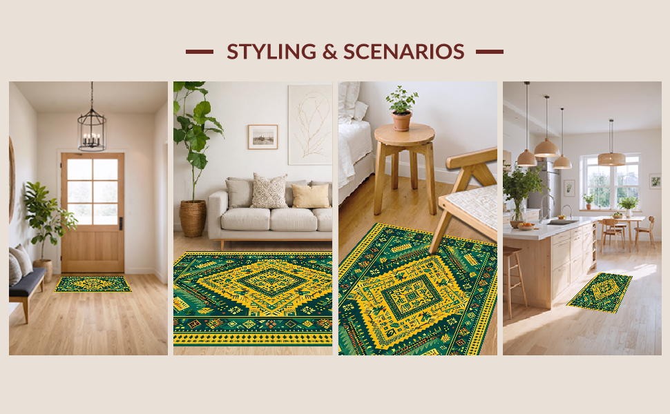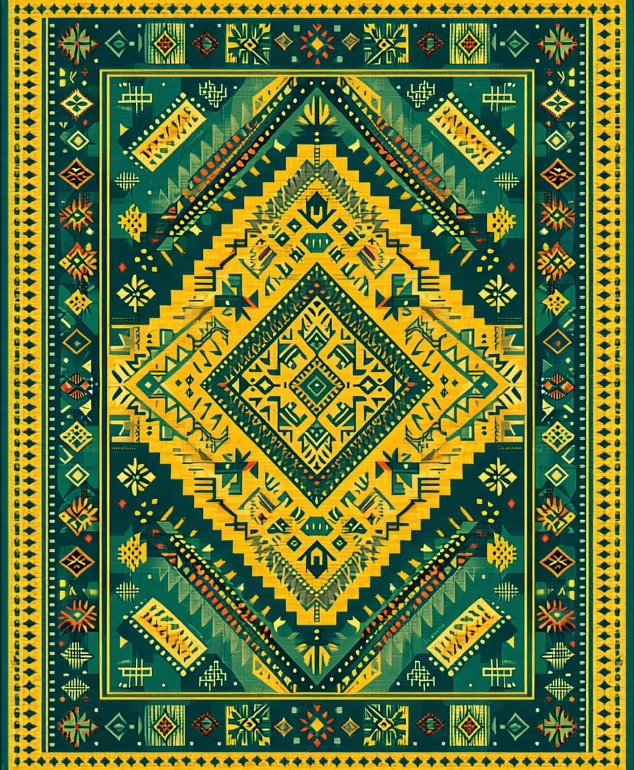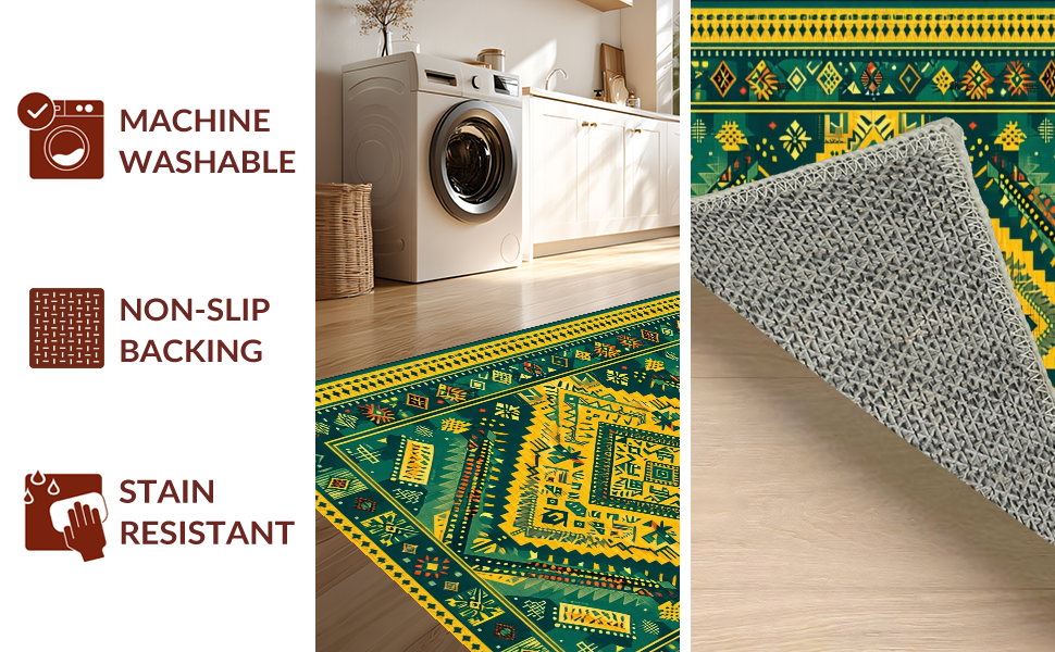 Ultra Soft Area Rug, Non Slip, Stain Resistant, Washable Area Rugs for Living Room, Bedroom, Vibrant Rustic Geometric Touch(Green) Overview: