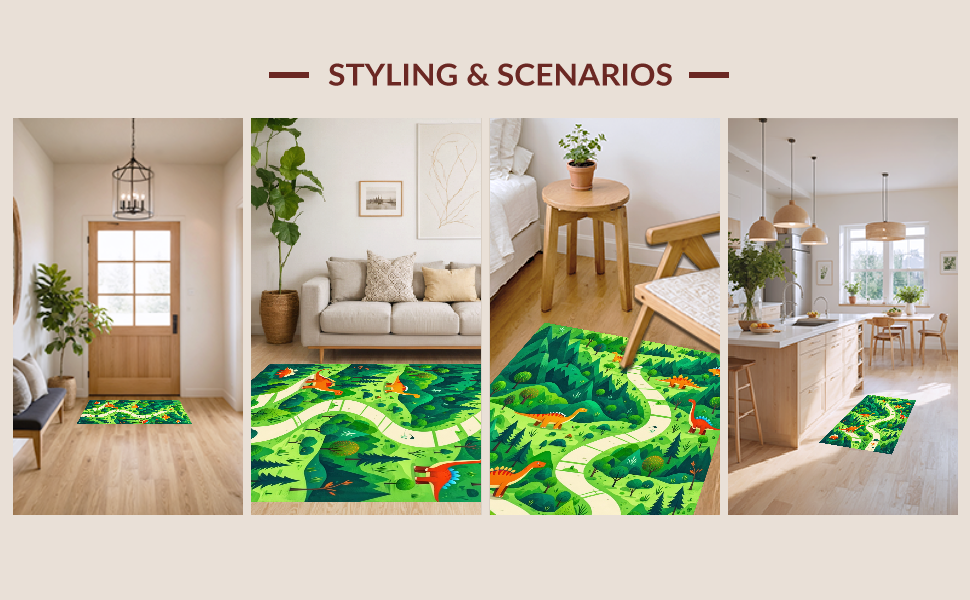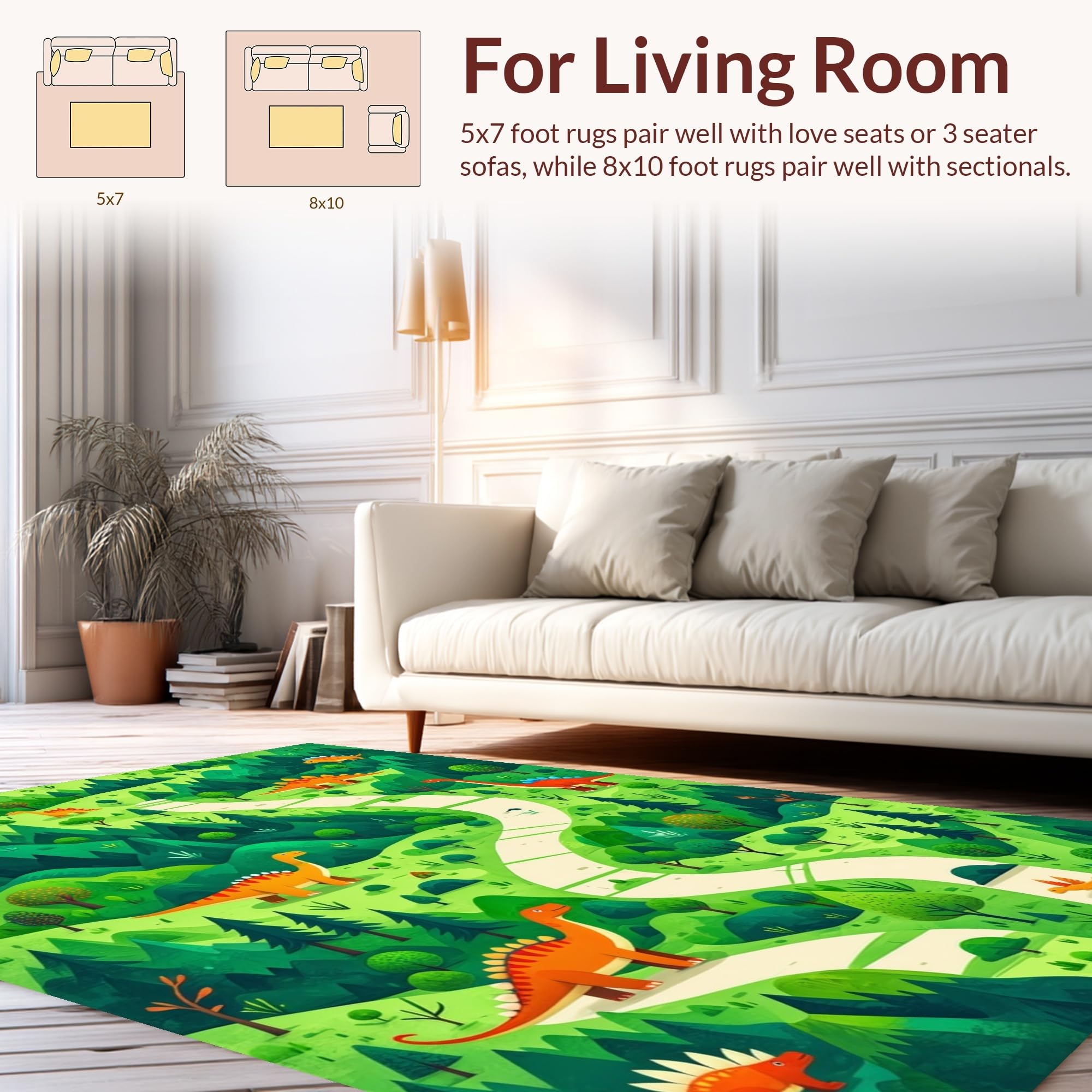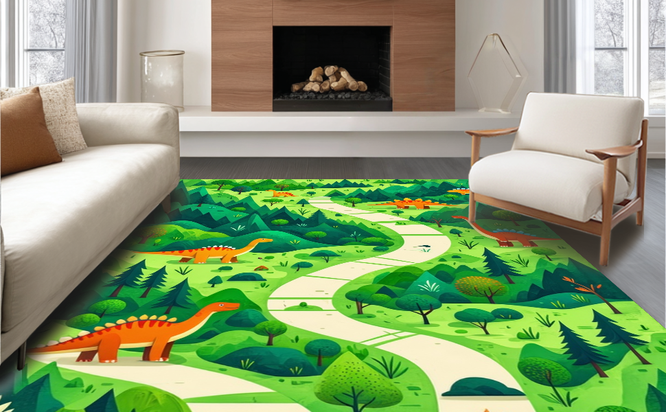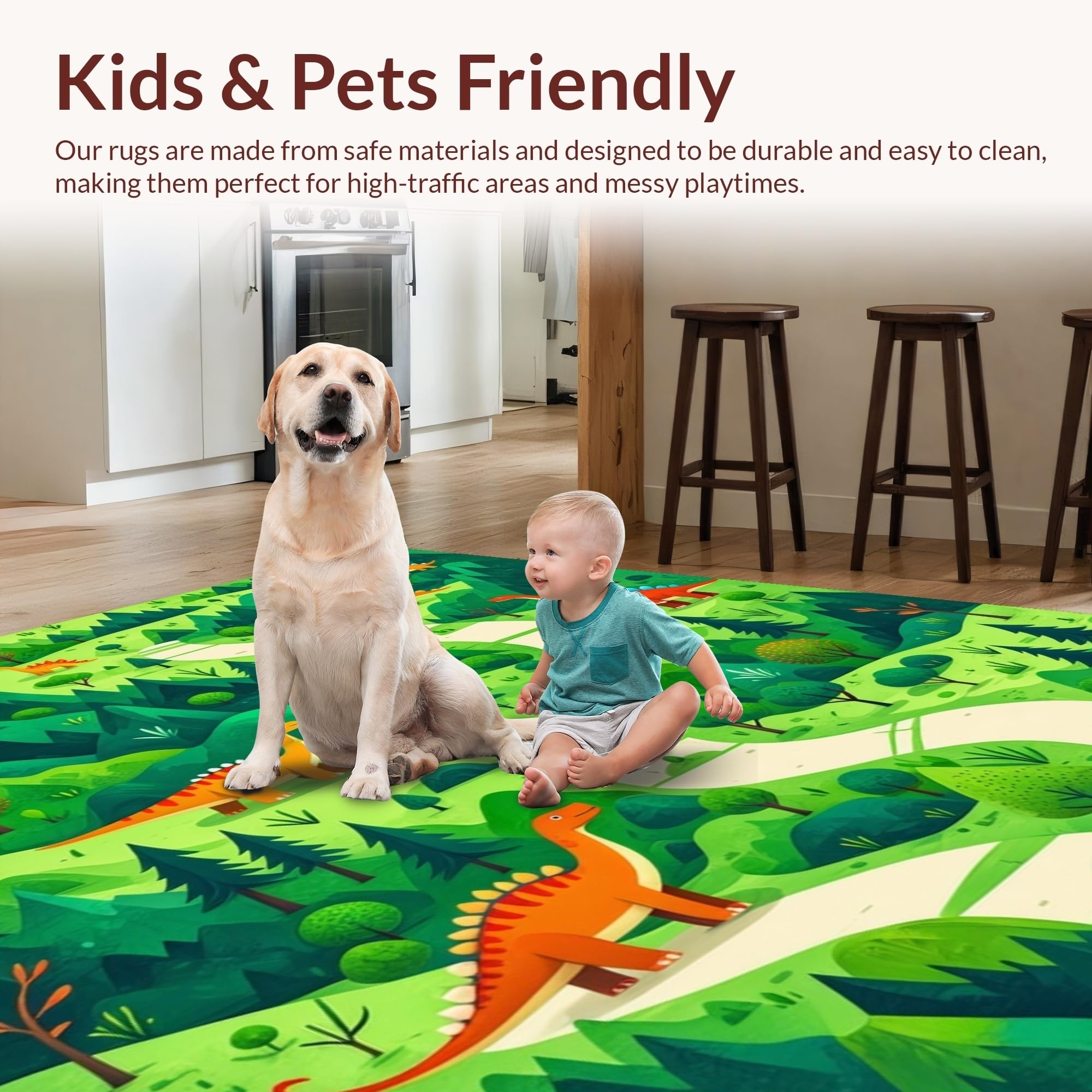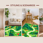 Ultra Soft Area Rug, Non Slip, Stain Resistant, Washable Area Rugs for Living Room, Bedroom, Vibrant Safari Road Map Design(Green) Overview: