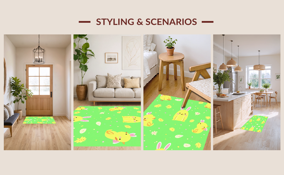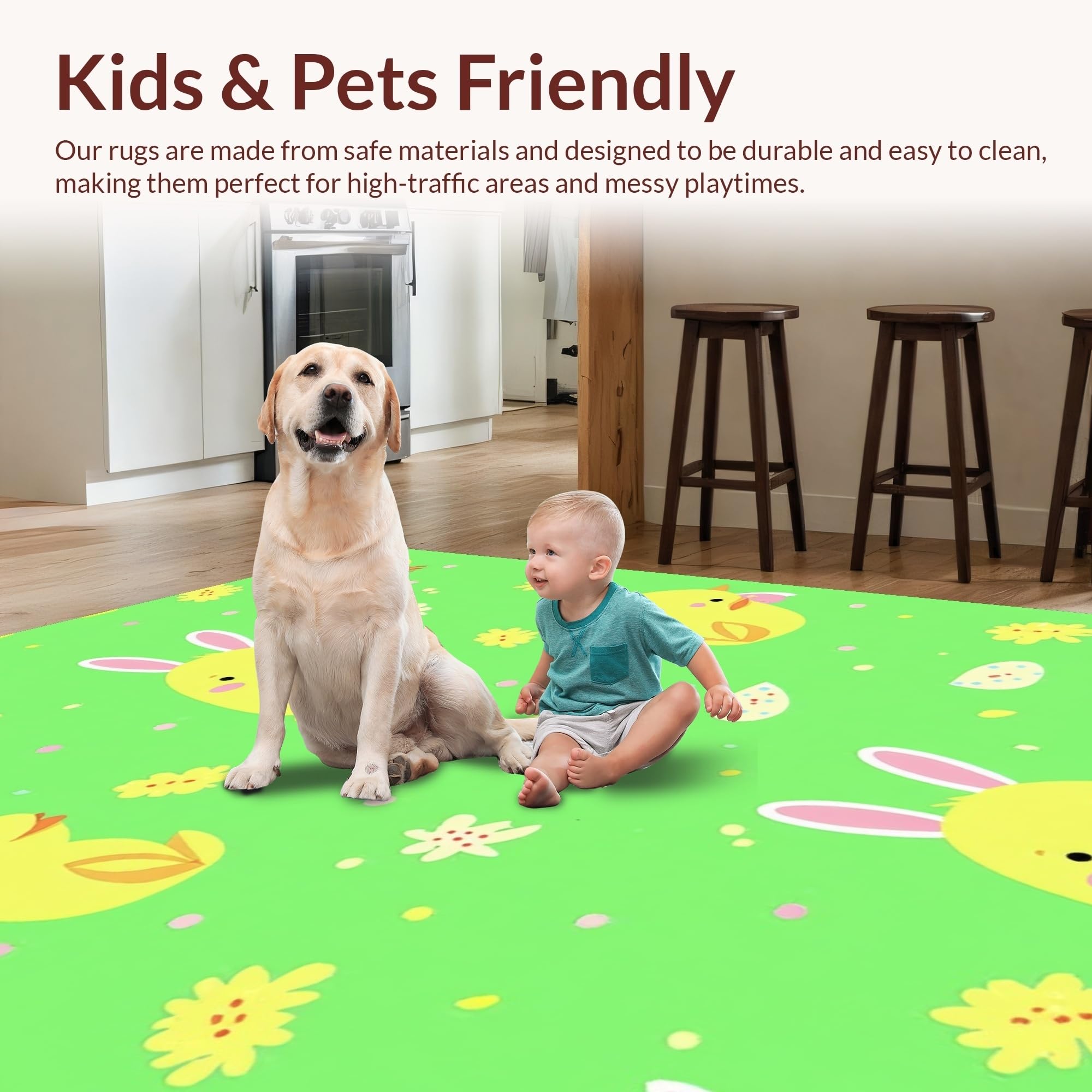 Ultra Soft Area Rug, Non Slip, Stain Resistant, Washable Area Rugs for Living Room, Bedroom, Vibrant Seasonal Floral Arrangement(Green) Overview: