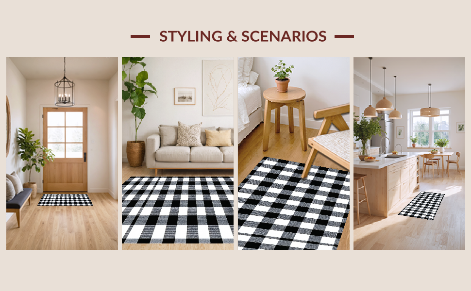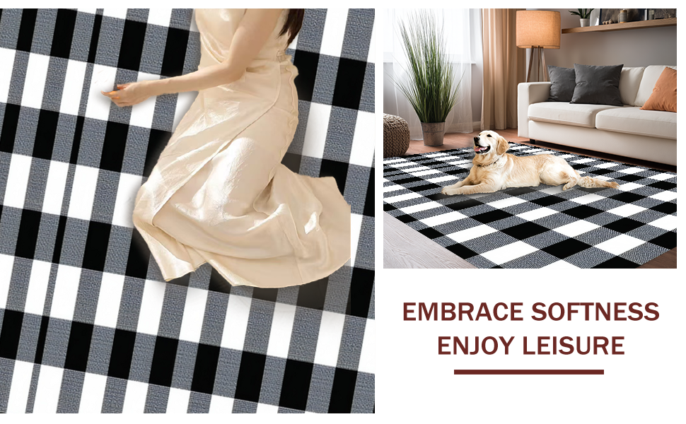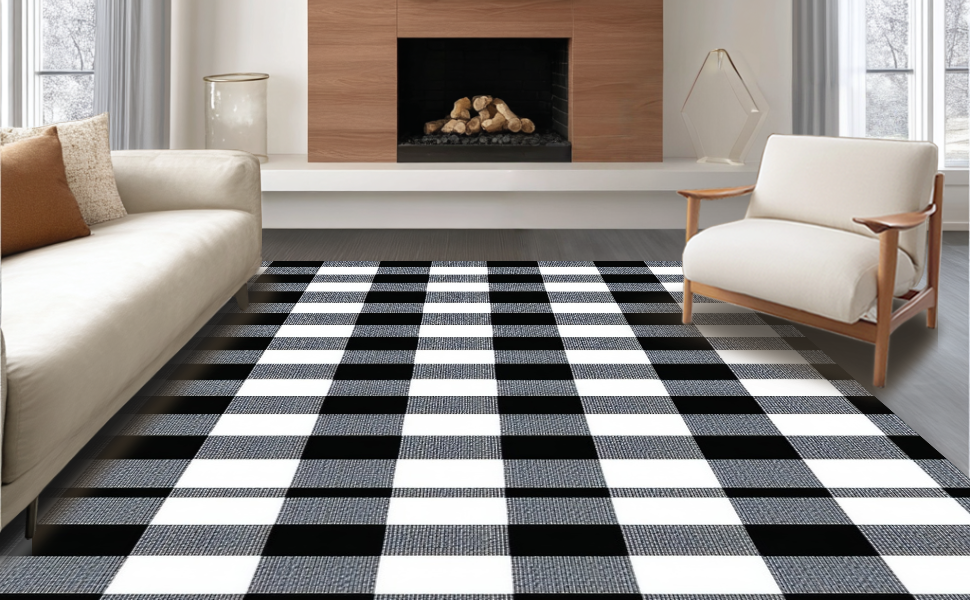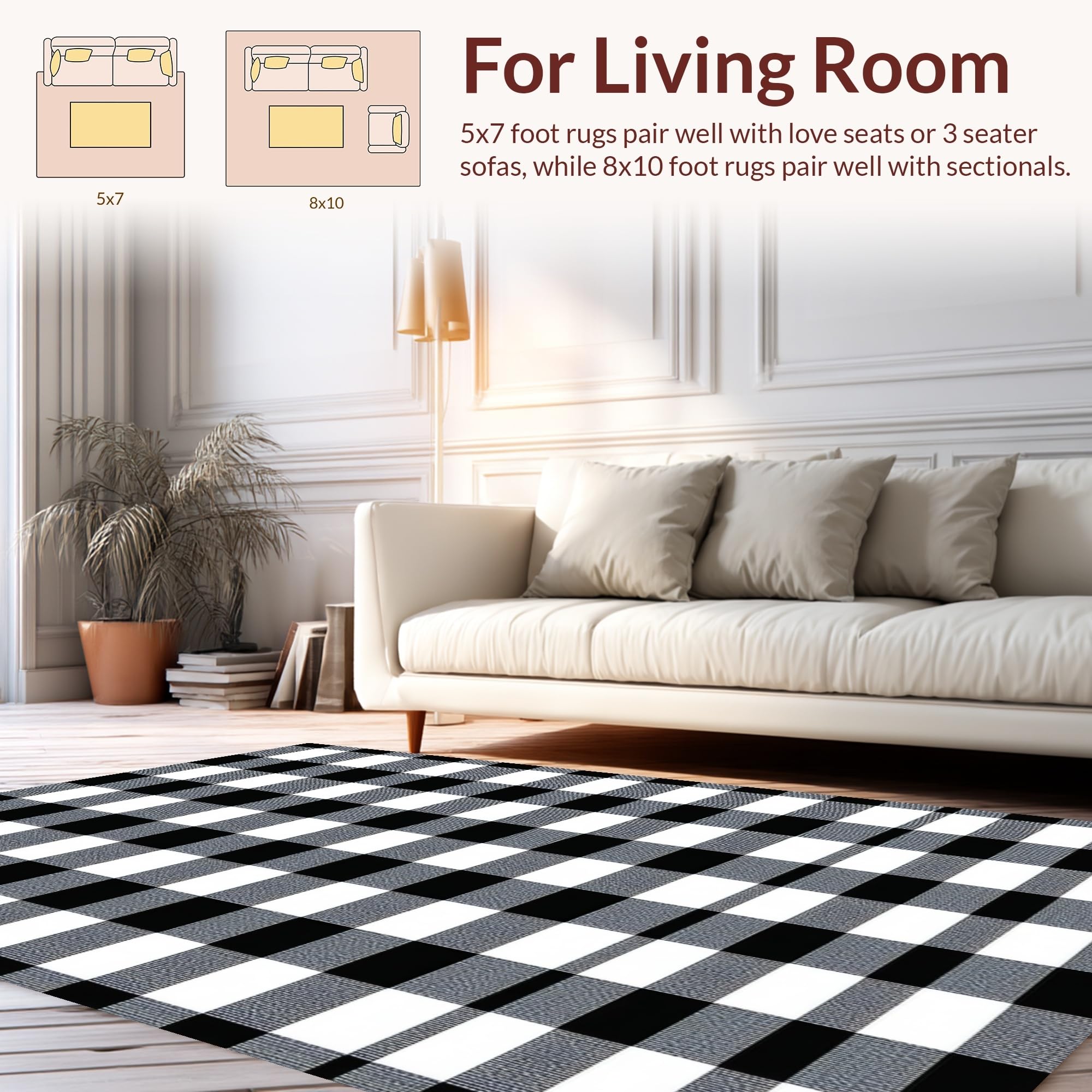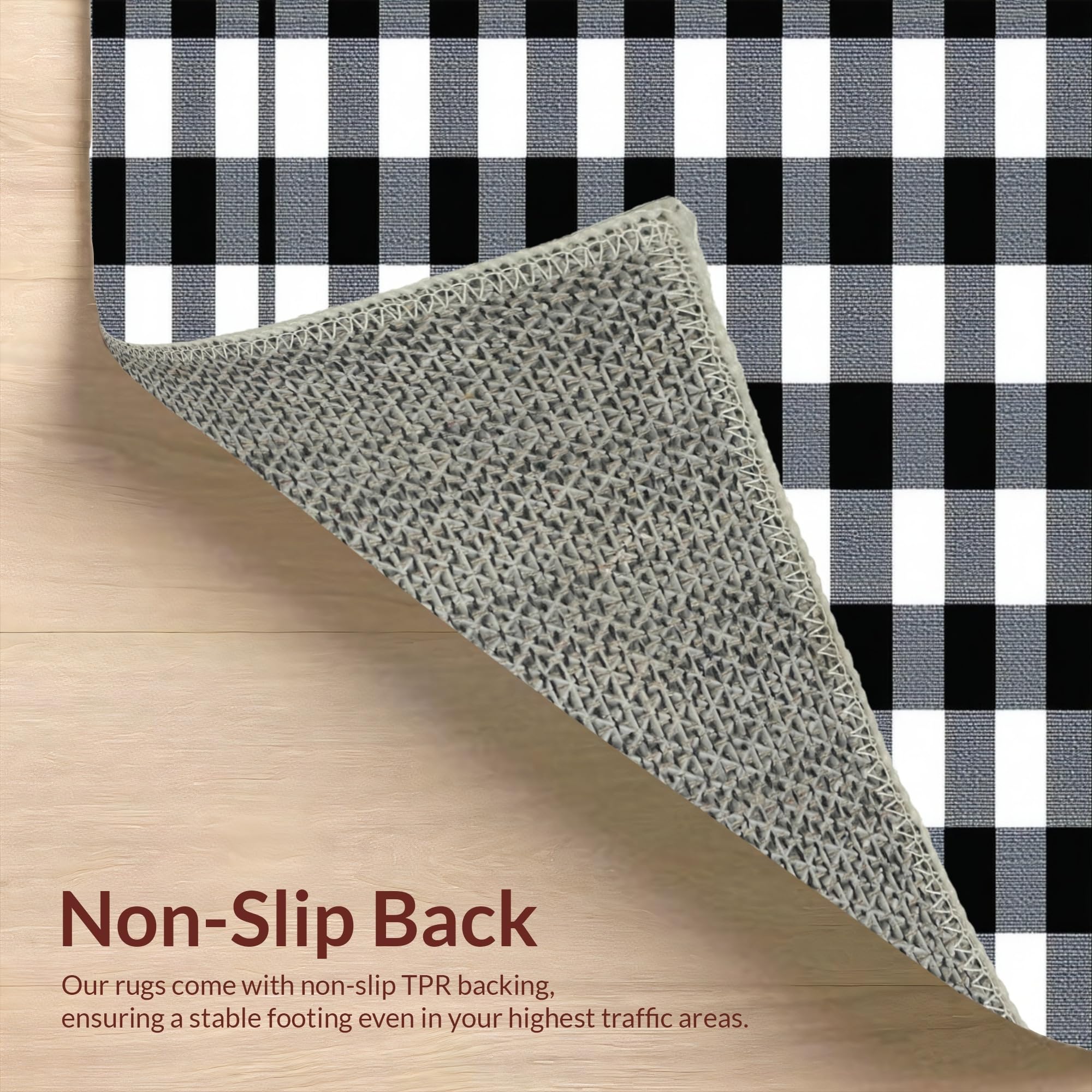 Ultra Soft Area Rug, Non Slip, Stain Resistant, Washable Area Rugs for Living Room, Bedroom, Vibrant Seasonal Plaid Design Element(Black) Overview: