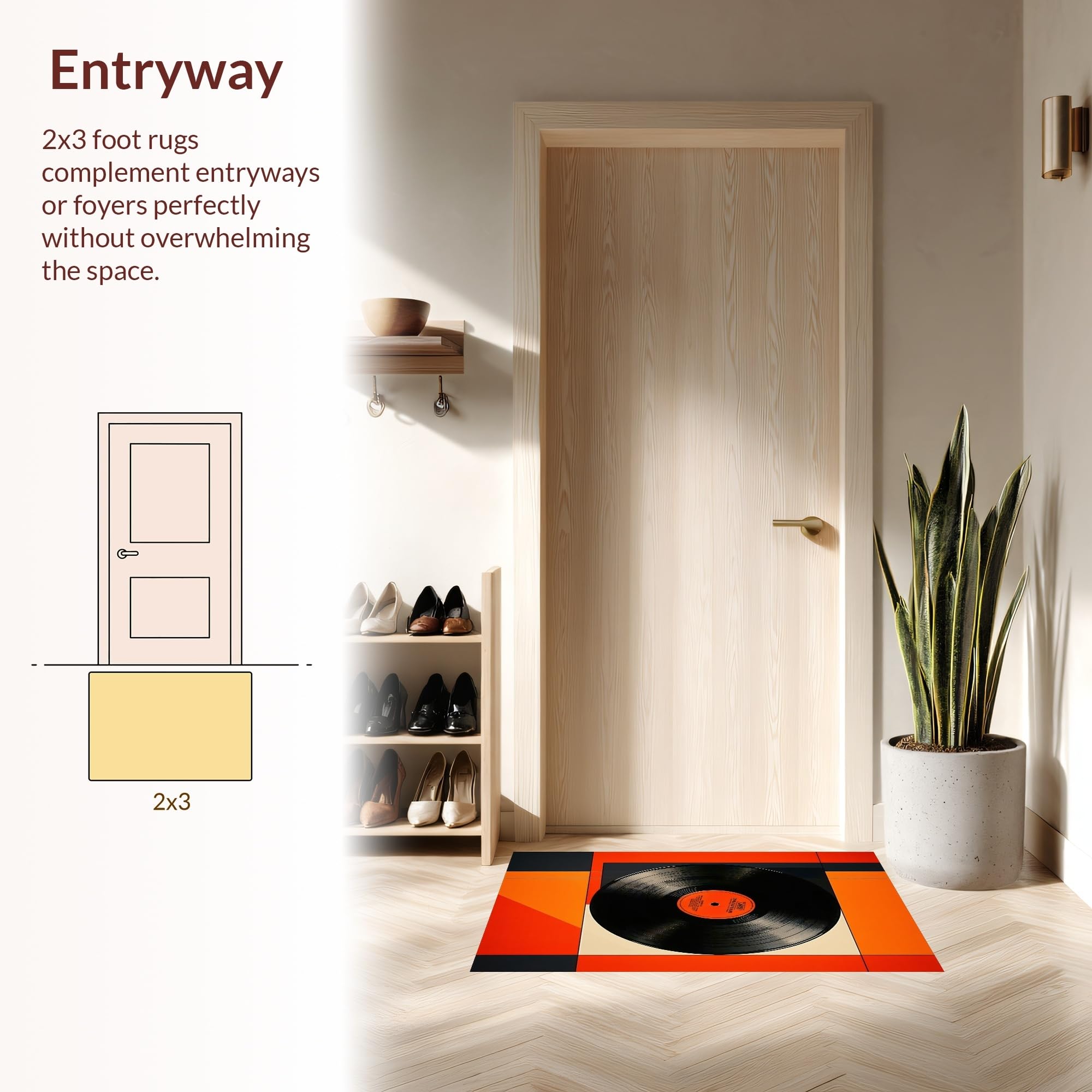 Ultra Soft Area Rug, Non Slip, Stain Resistant, Washable Area Rugs for Living Room, Bedroom, Vibrant Semi-Circle Record Design(Black) Overview: