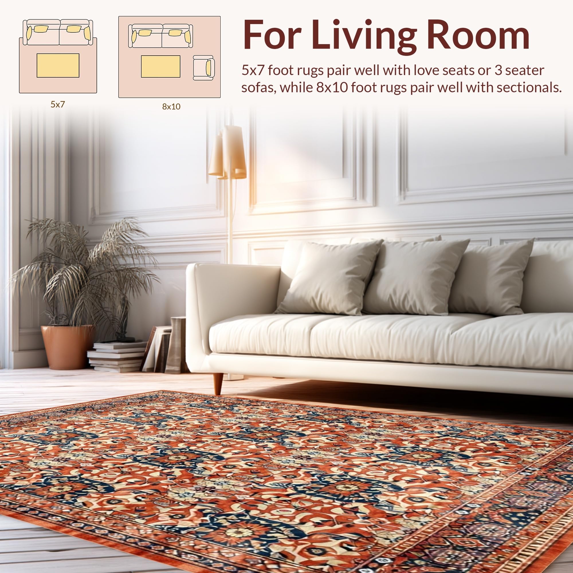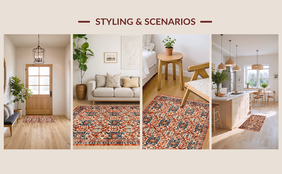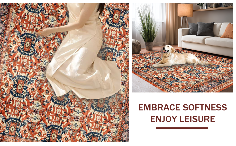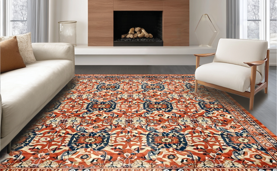 Ultra Soft Area Rug, Non Slip, Stain Resistant, Washable Area Rugs for Living Room, Bedroom, Vibrant Shabby Chic Textured Approach(Red) Overview: