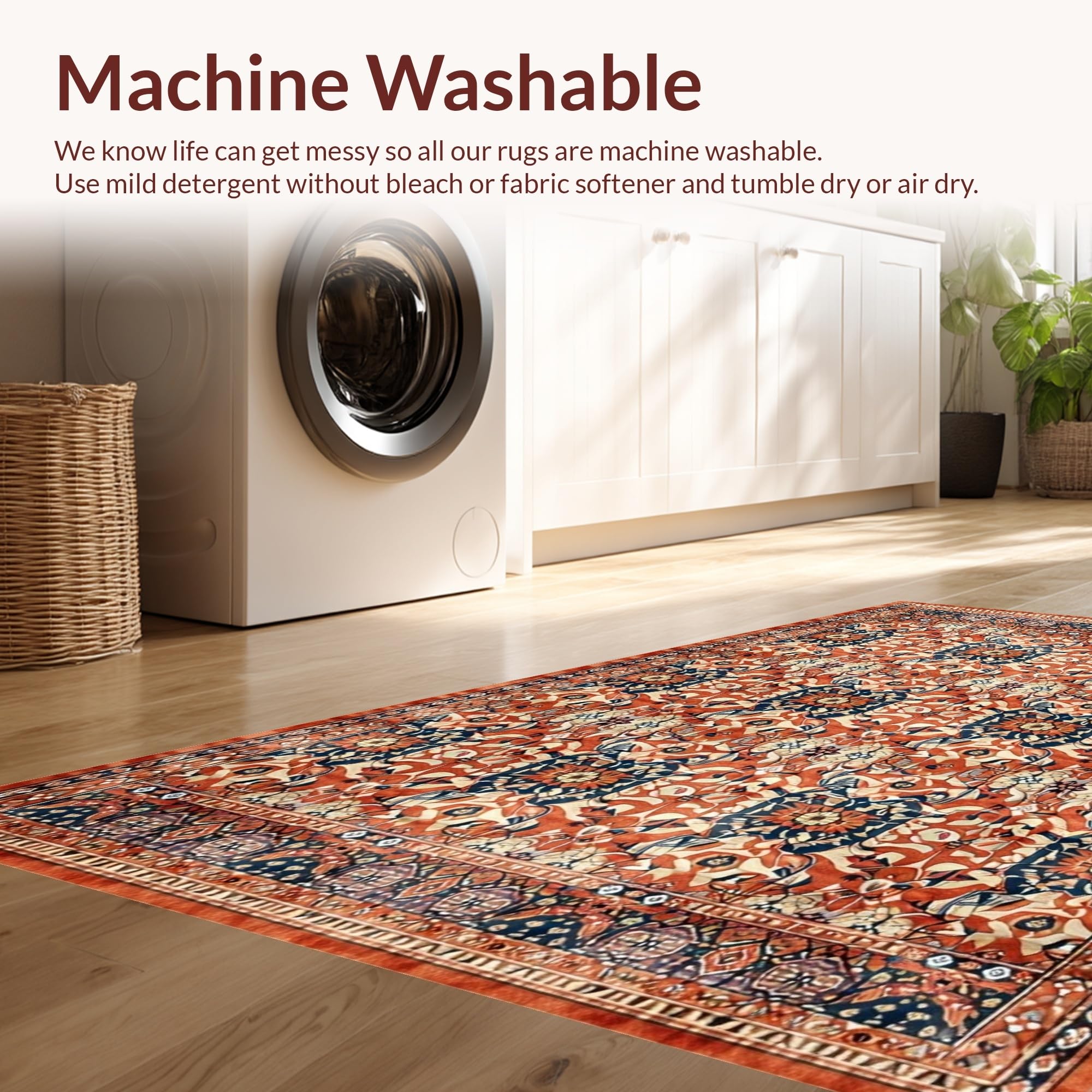 • Machine Washable: Our rugs can be easily thrown in the wash machine.