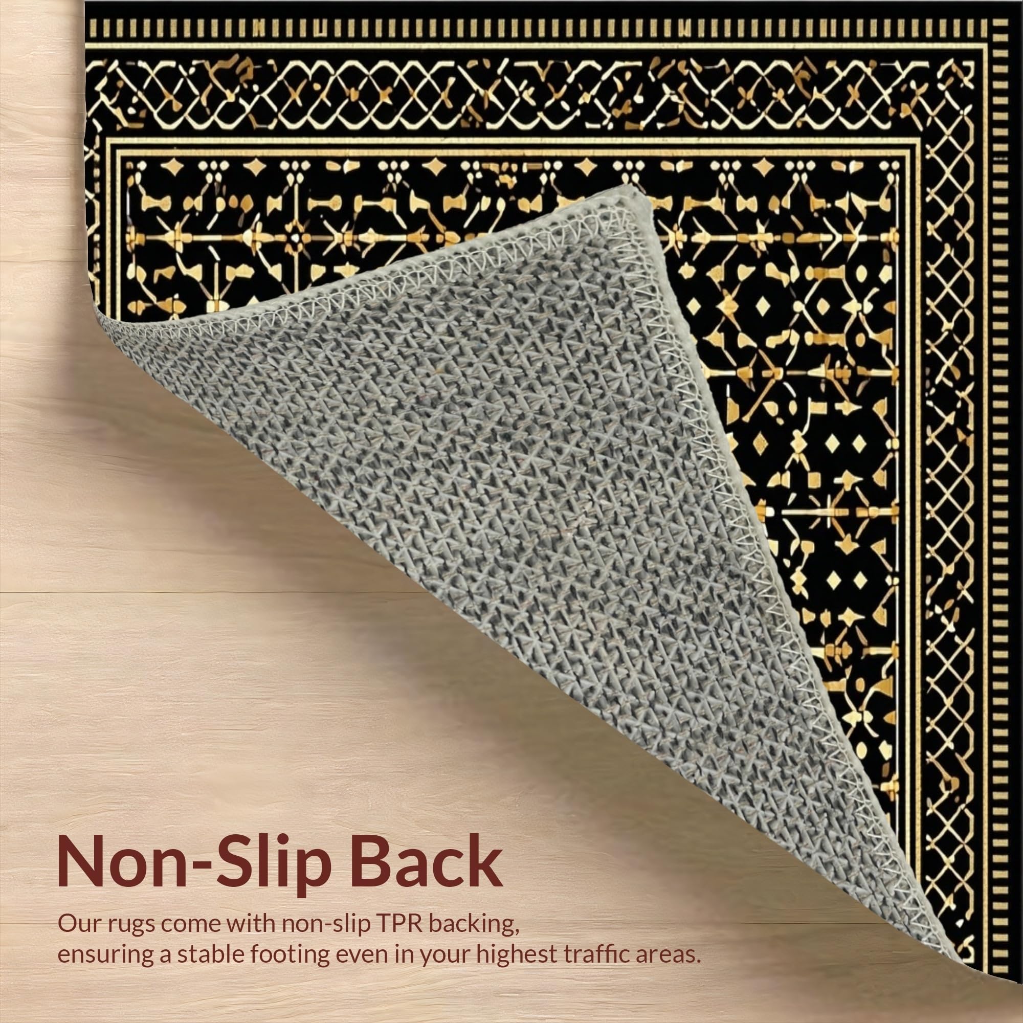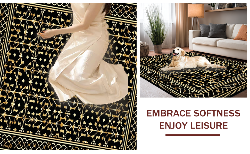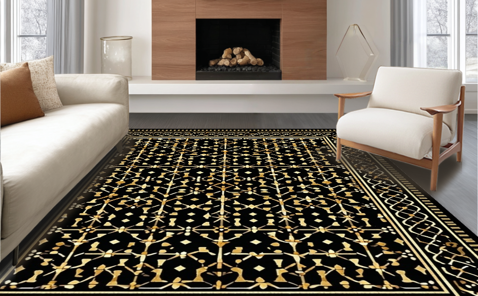 Ultra Soft Area Rug, Non Slip, Stain Resistant, Washable Area Rugs for Living Room, Bedroom, Vibrant Shaggy Trellis Motif(Black) Overview: