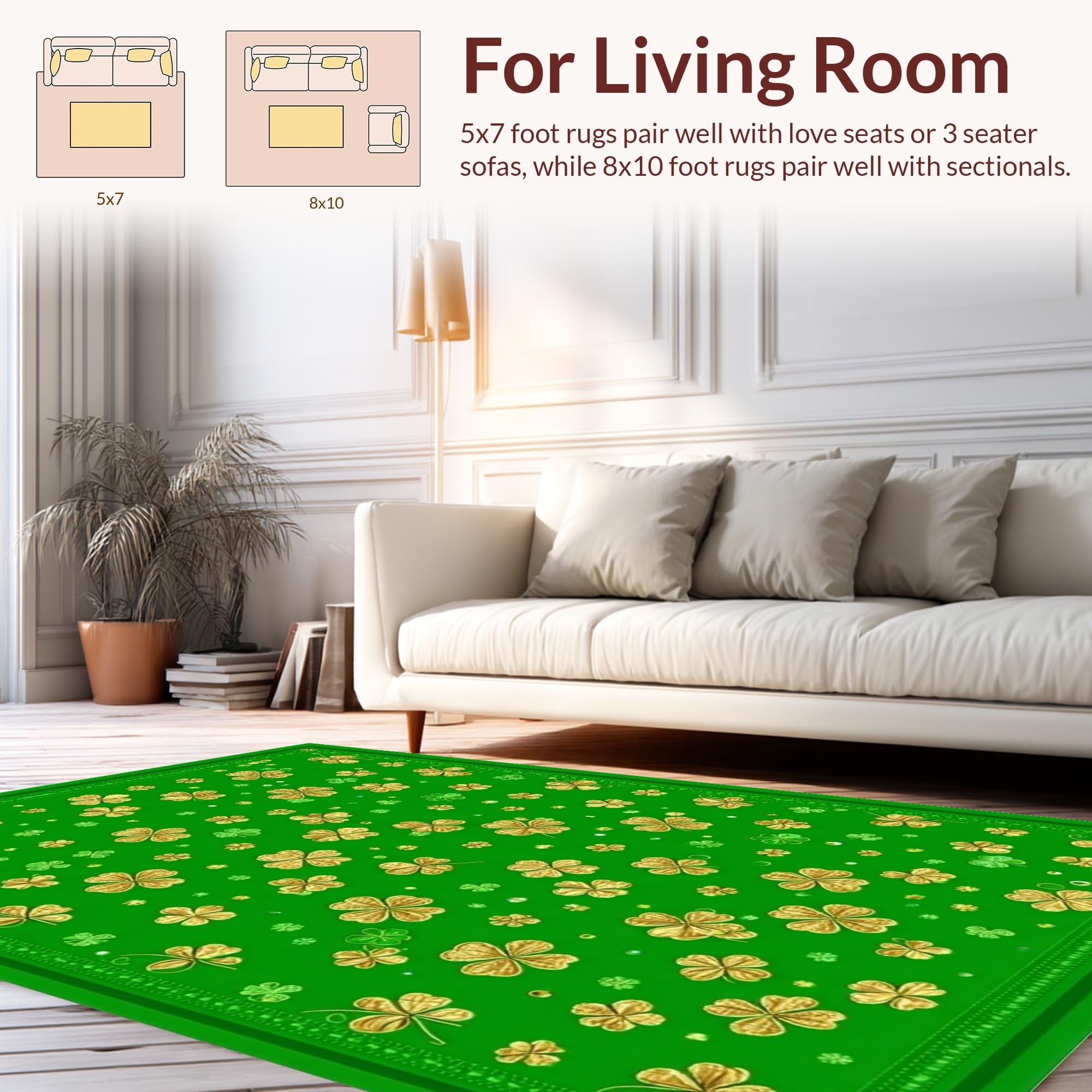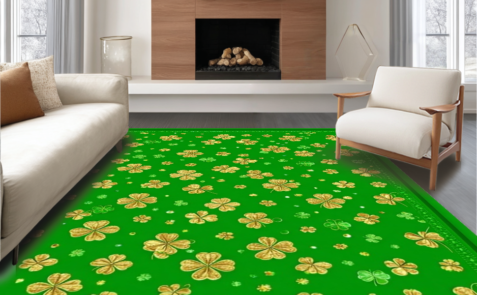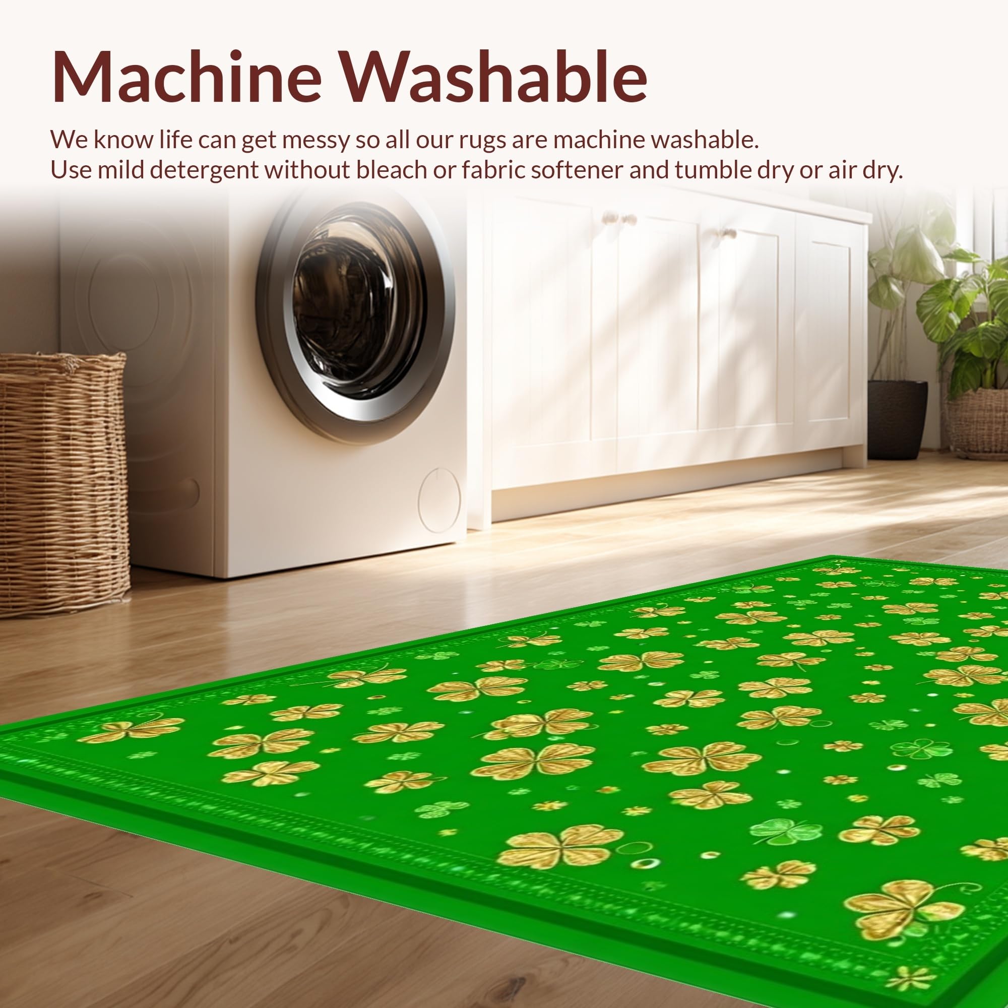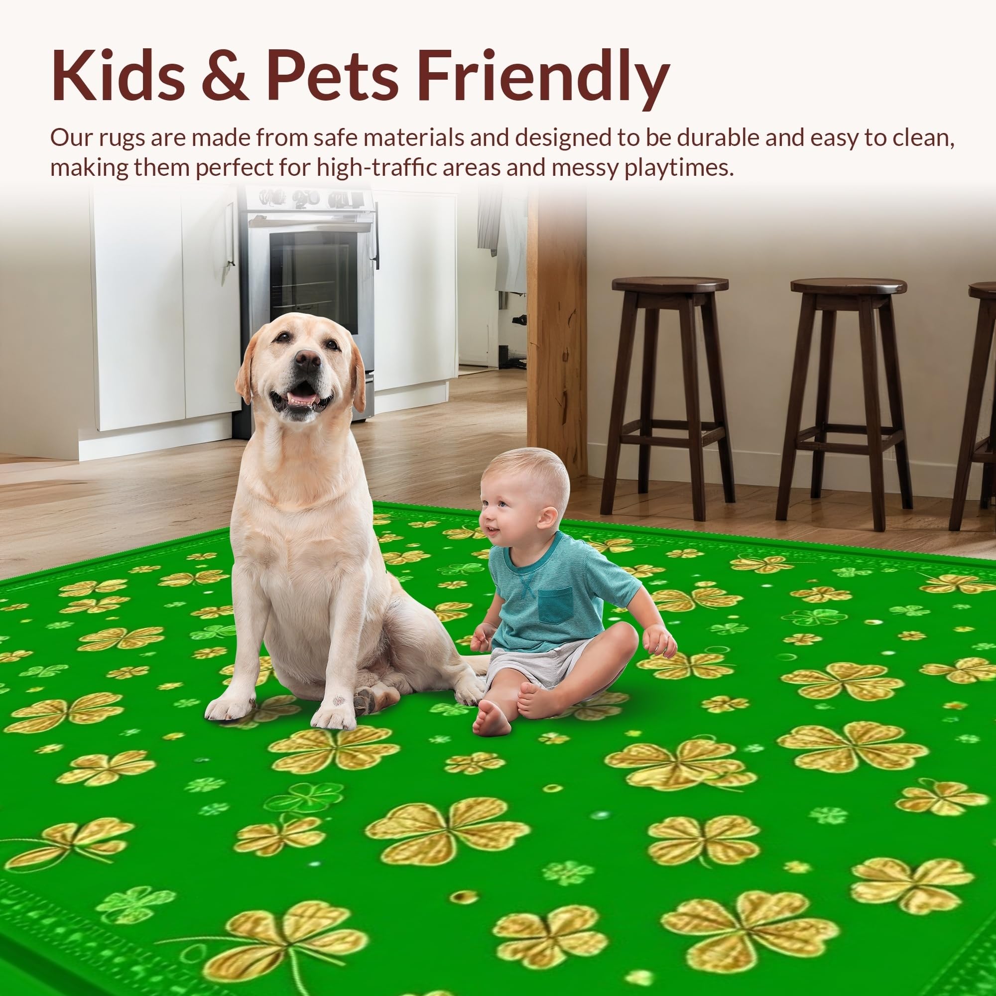 Ultra Soft Area Rug, Non Slip, Stain Resistant, Washable Area Rugs for Living Room, Bedroom, Vibrant Shamrock Medallion Arrangement(Green) Overview: