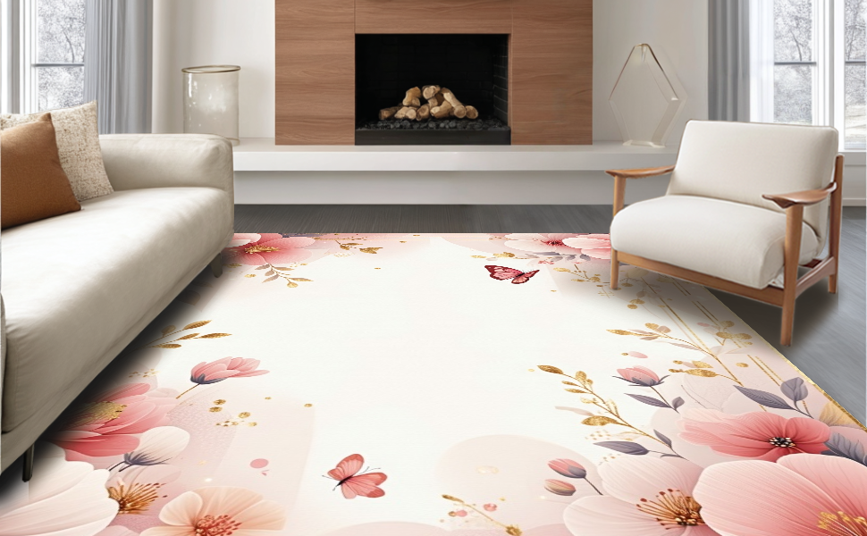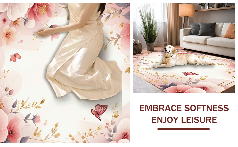 Ultra Soft Area Rug, Non Slip, Stain Resistant, Washable Area Rugs for Living Room, Bedroom, Vibrant Soft Petal Motif(Pink) Overview: