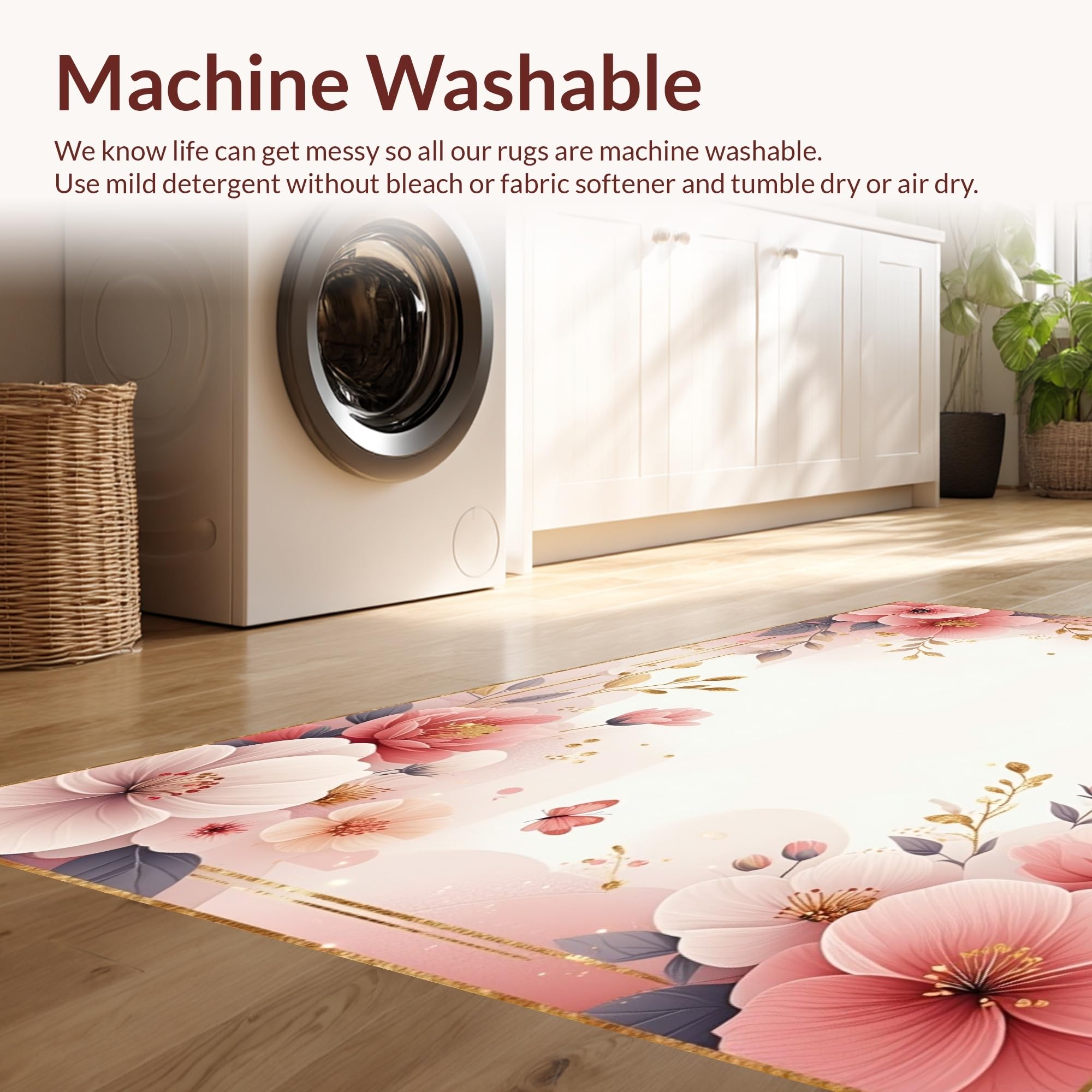 - Machine Washable: Our rugs can be easily thrown in the wash machine.