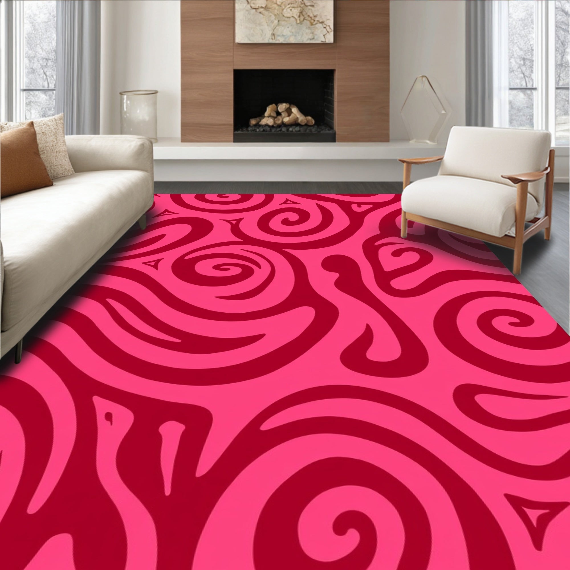 Vibrant Spiral Swirl Design with Dynamic Curves and Flowing Motifs(Pink)