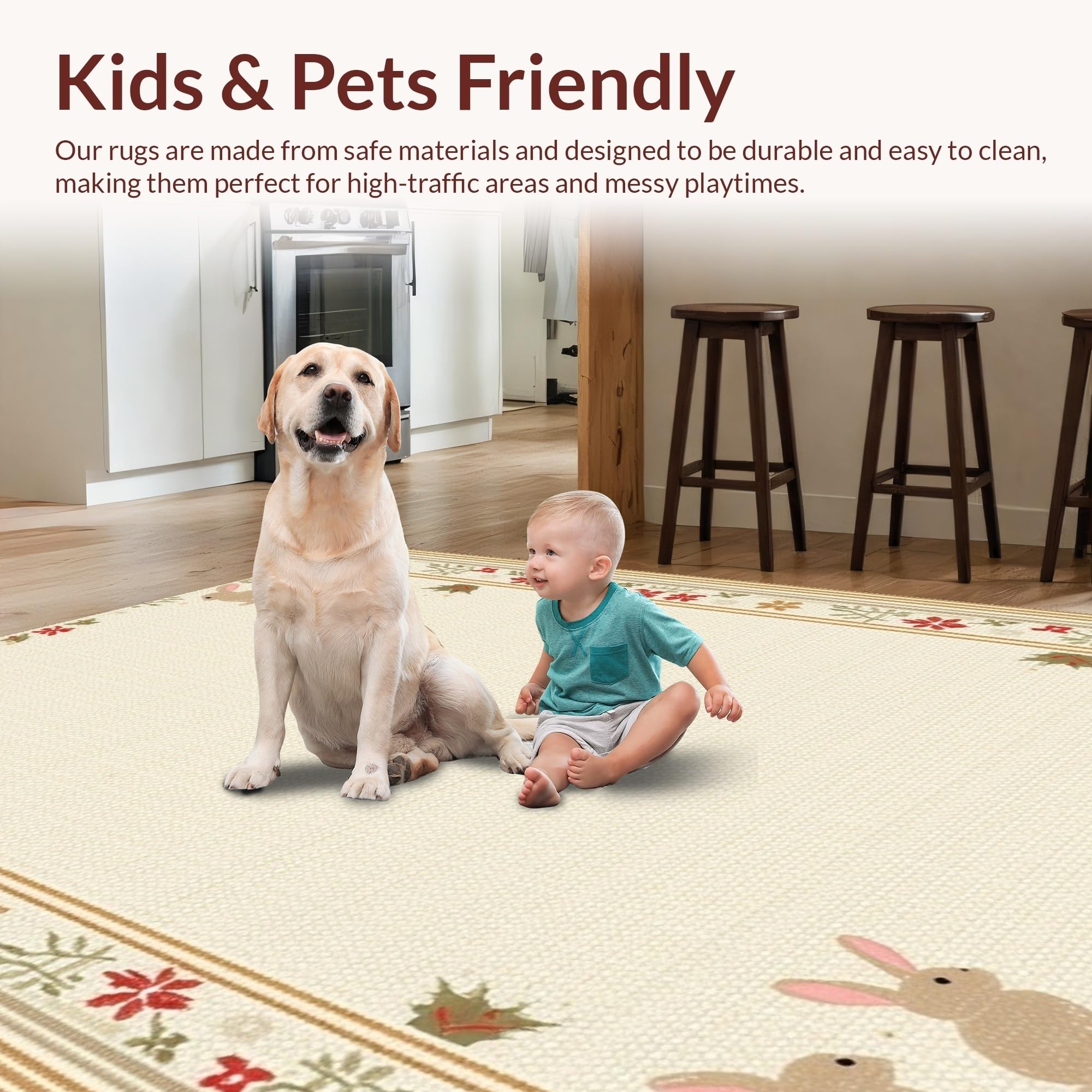 Ultra Soft Area Rug, Non Slip, Stain Resistant, Washable Area Rugs for Living Room, Bedroom, Vibrant Springtime Decorative Theme(Beige) Overview: