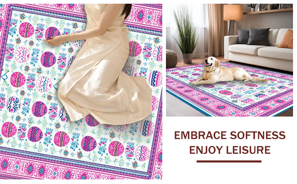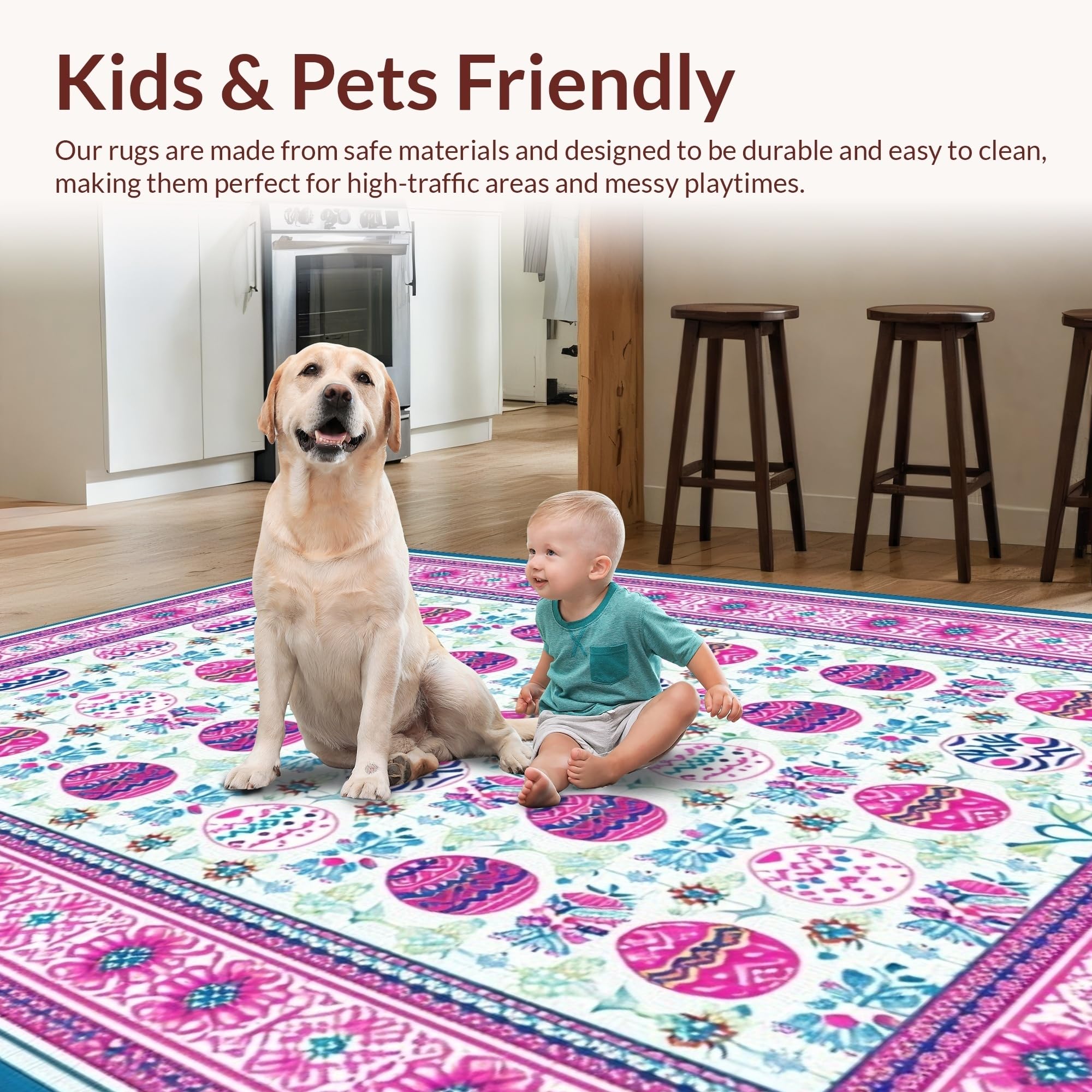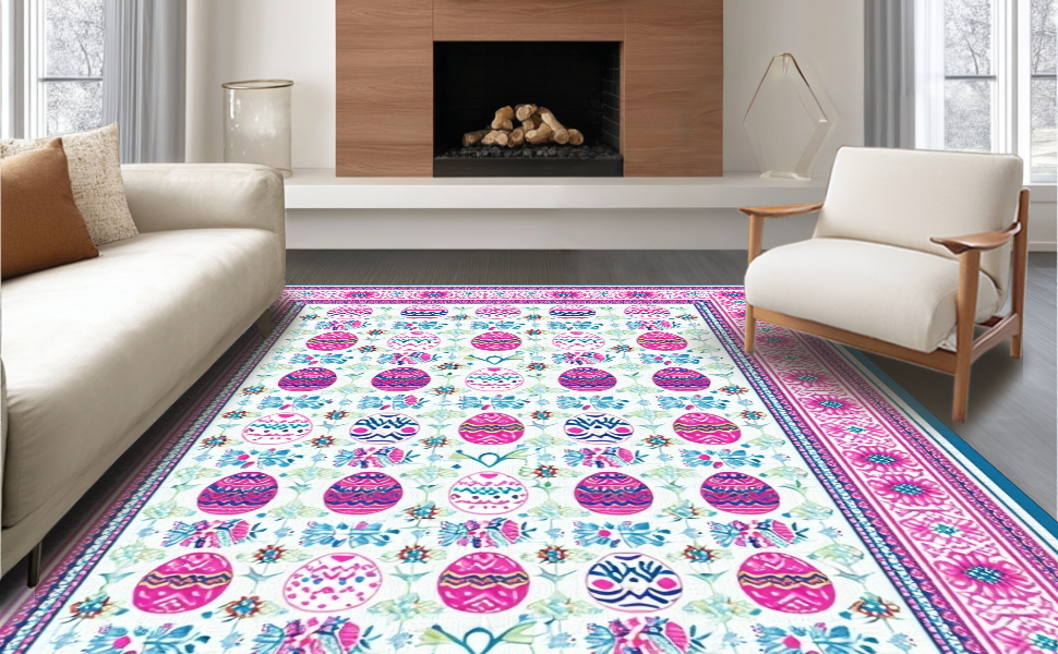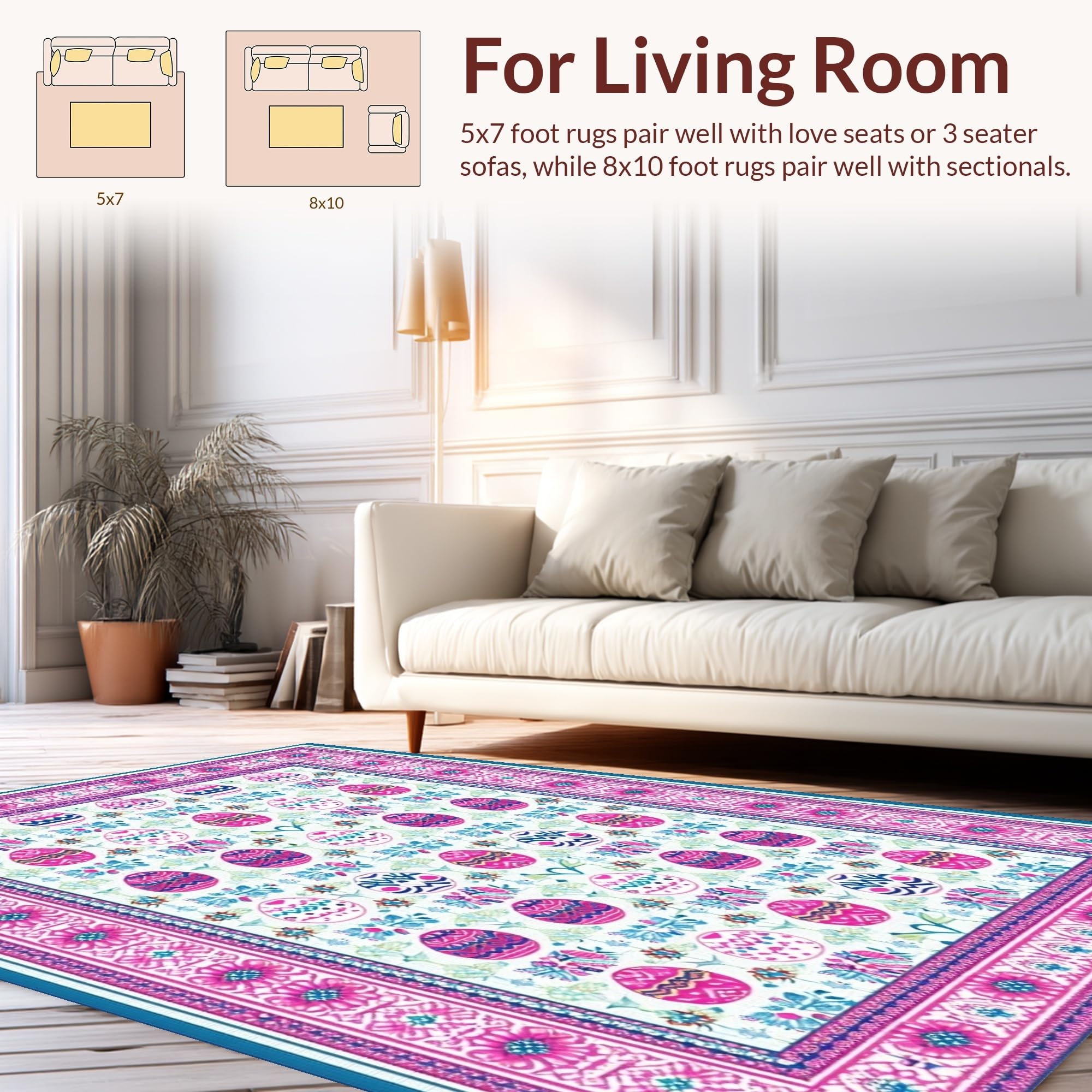 Ultra Soft Area Rug, Non Slip, Stain Resistant, Washable Area Rugs for Living Room, Bedroom, Vibrant Springtime Floral Fusion(White) Overview: