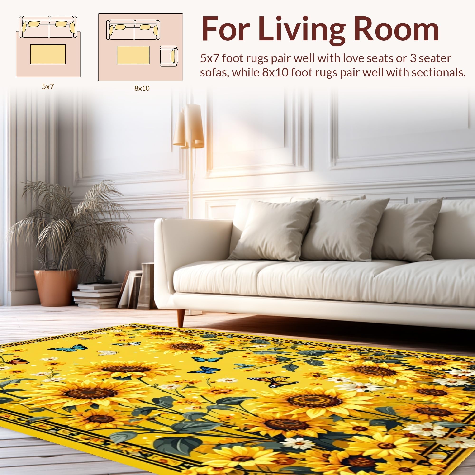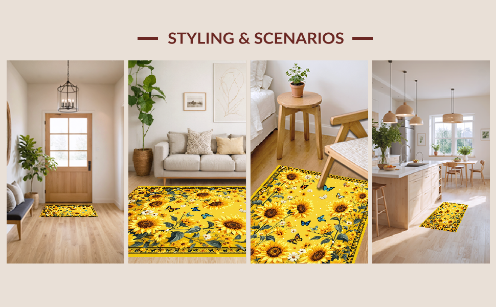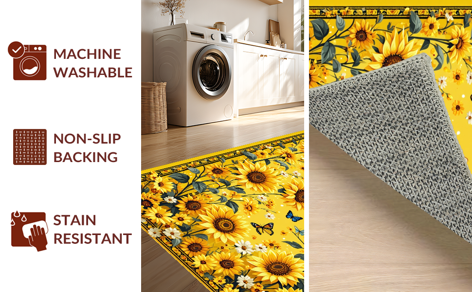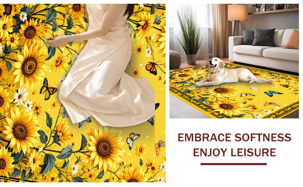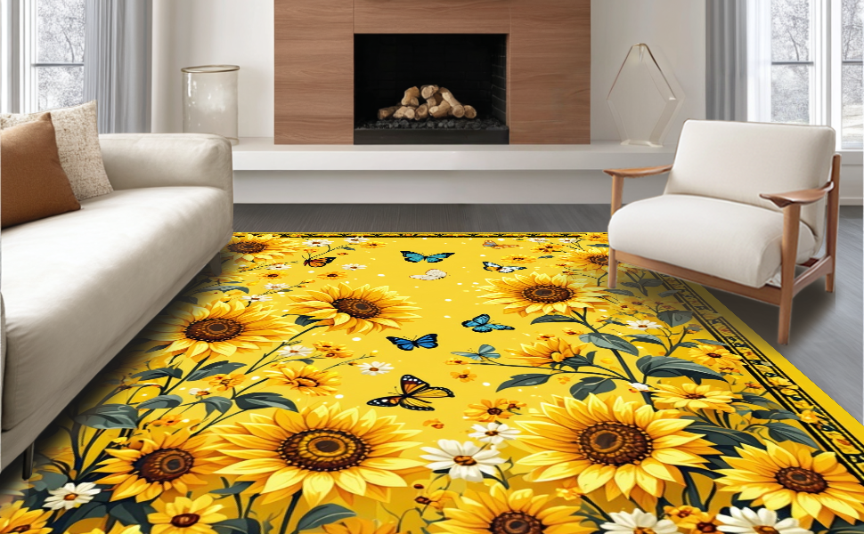 Ultra Soft Area Rug, Non Slip, Stain Resistant, Washable Area Rugs for Living Room, Bedroom, Vibrant Sunflower Circle Aesthetic(Yellow) Overview:
