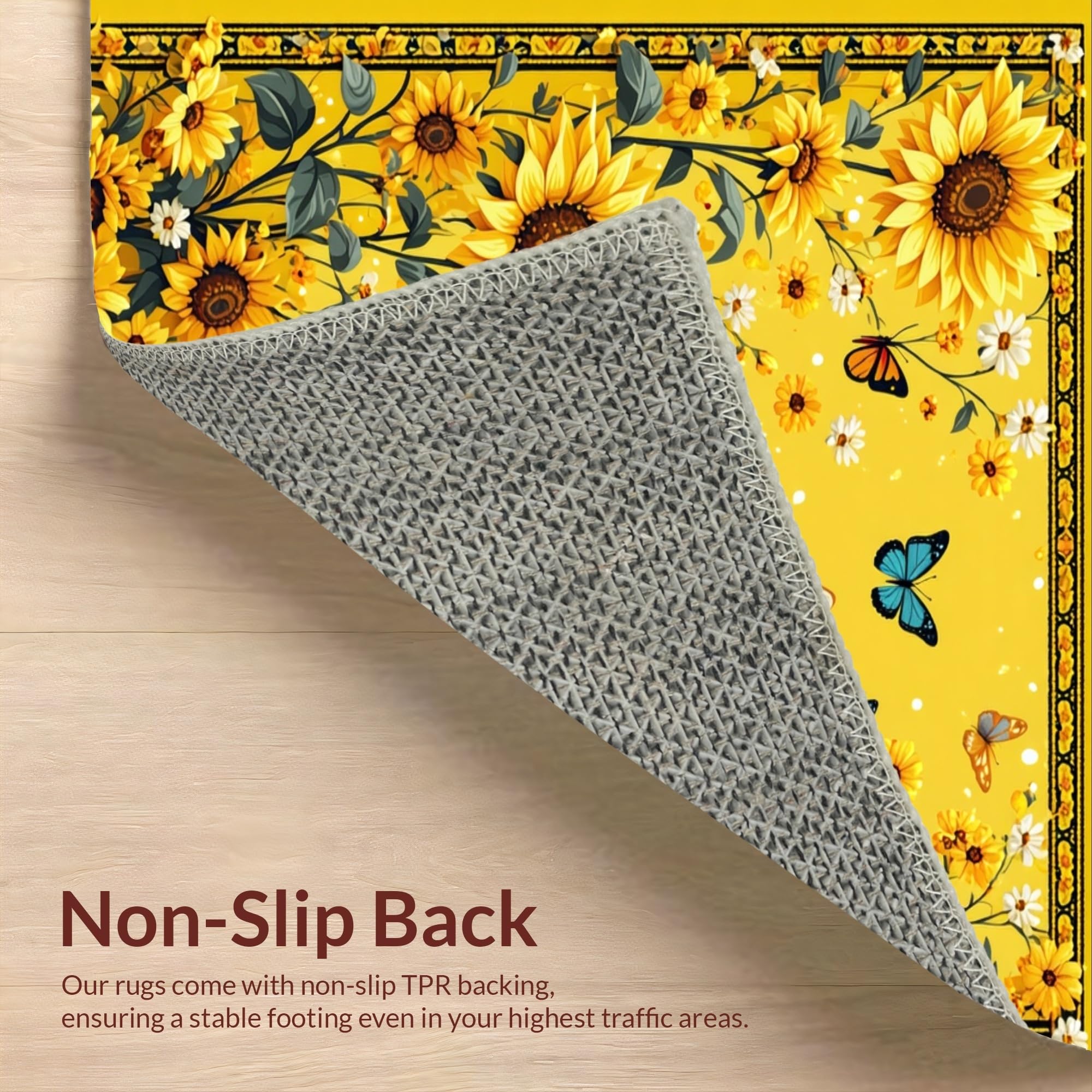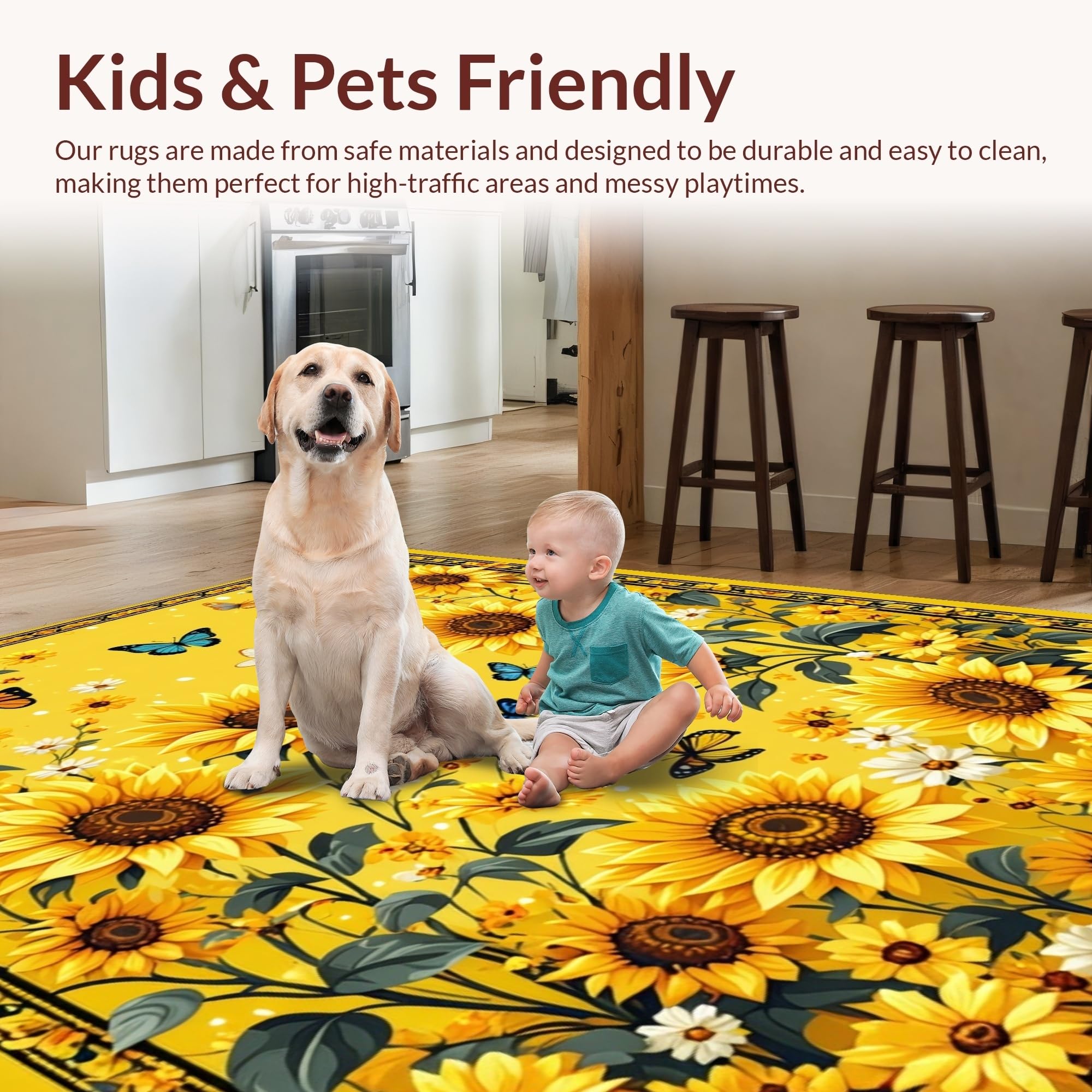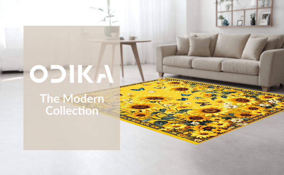 Ultra Soft Area Rug, Non Slip, Stain Resistant, Washable Area Rugs for Living Room, Bedroom, Vibrant Sunflower Circle Aesthetic(Yellow) Overview: