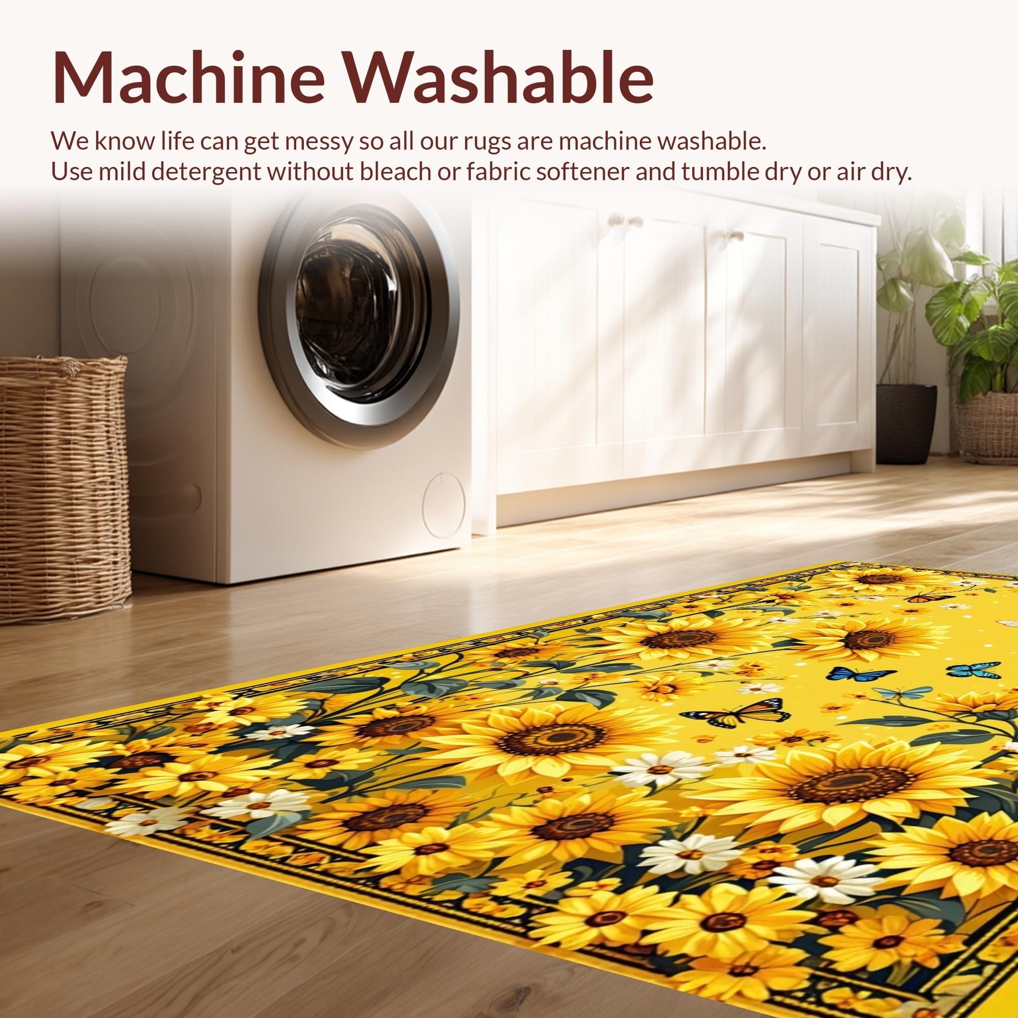 - Machine Washable: Our rugs can be easily thrown in the wash machine.
